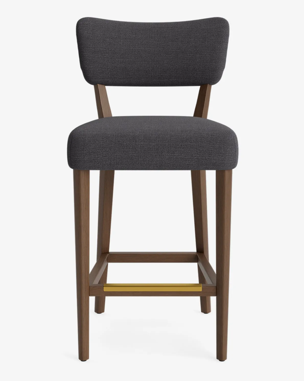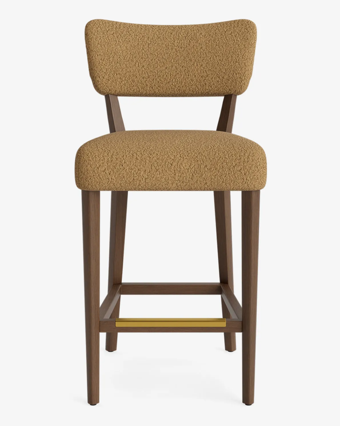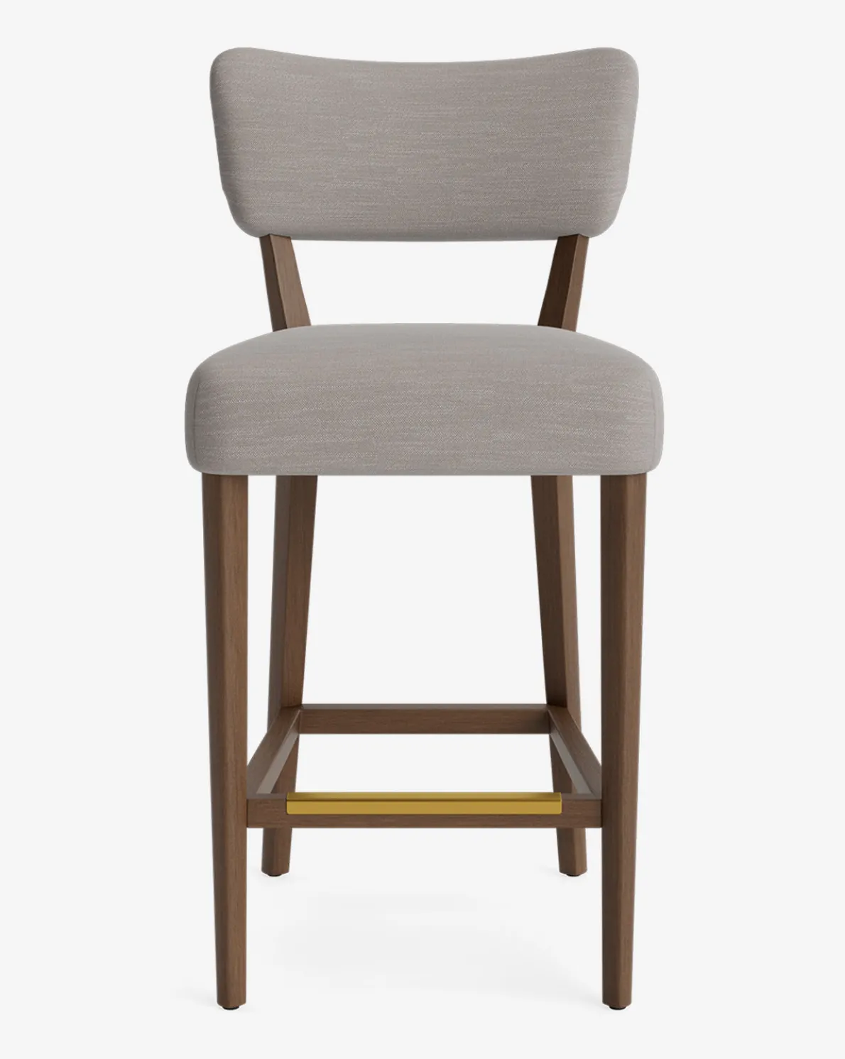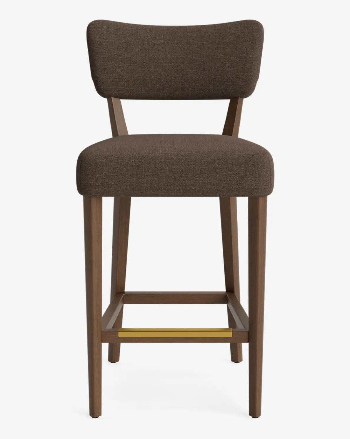 Vintage inspired and artfully designed, our Etienne Stool is a timeless staple for your kitchen styling. With a classic form, the stool features tapered square legs and a soft curve on the top and bottom edge of the back. The chestnut wood finish offers a rich warmth and the plush seat cushion caters to comfort. Customizable in a wide array of fabrics, you can make this made-to-order piece entirely your own.