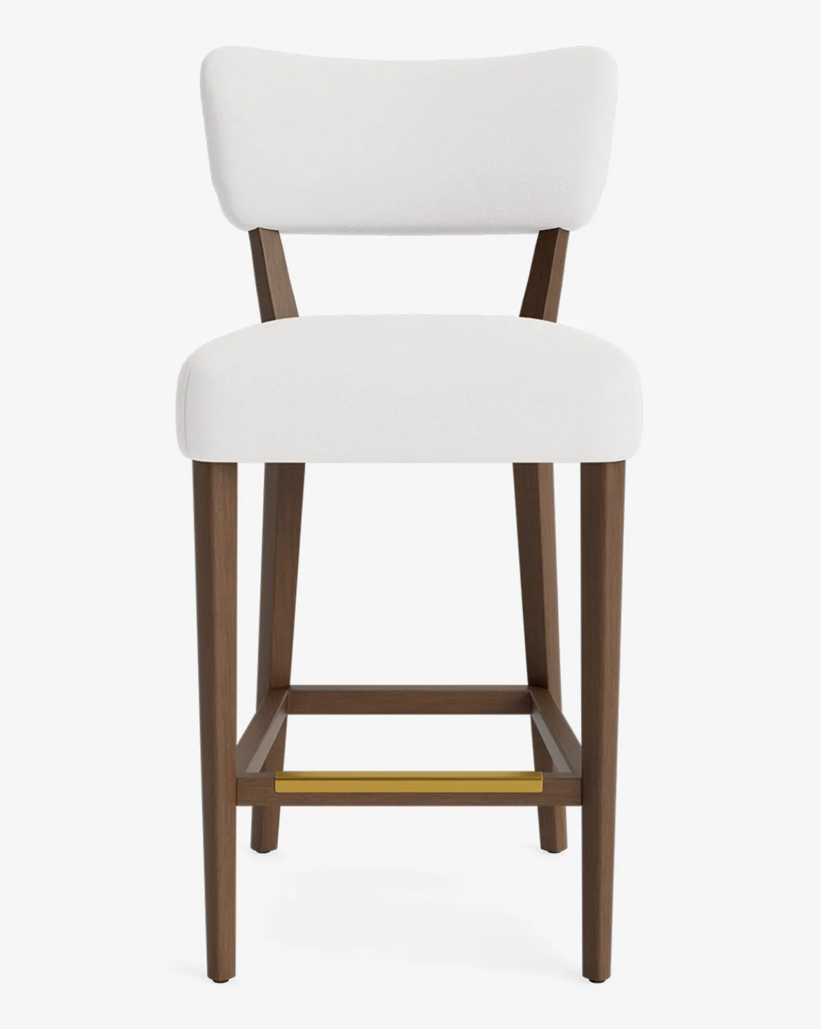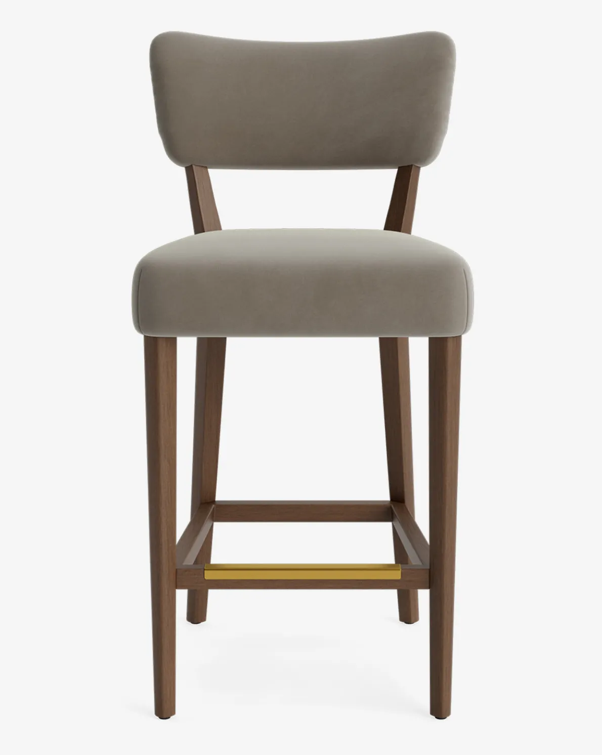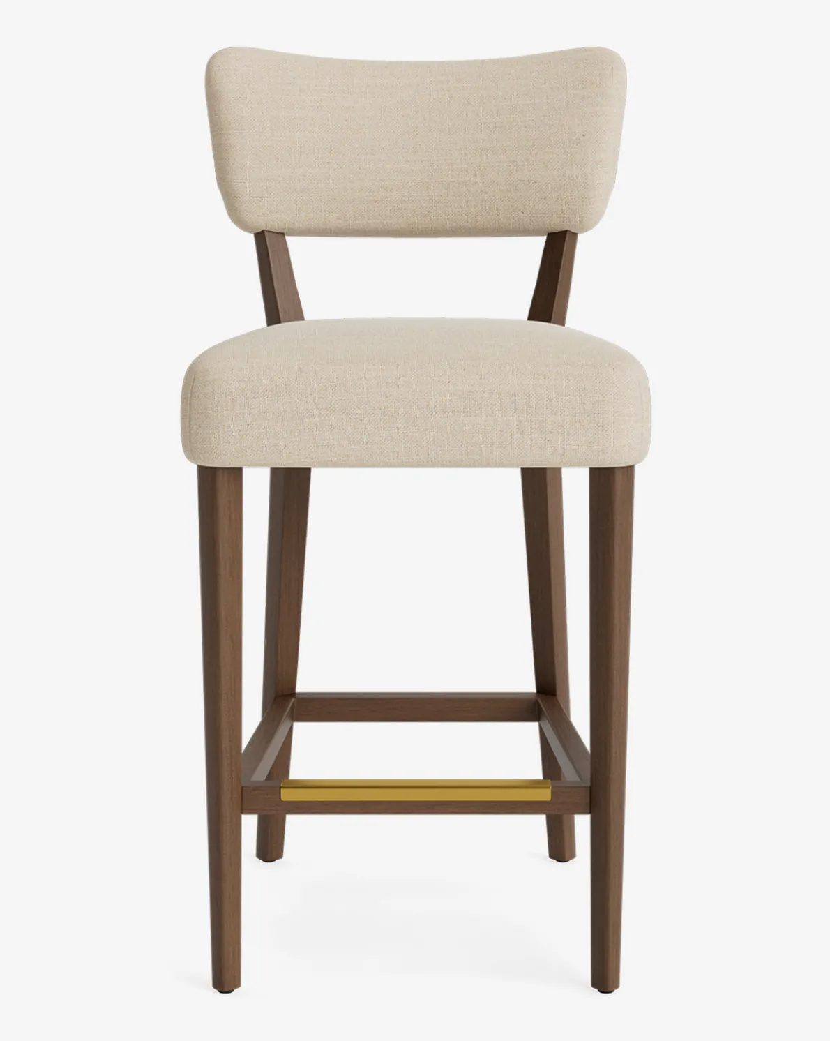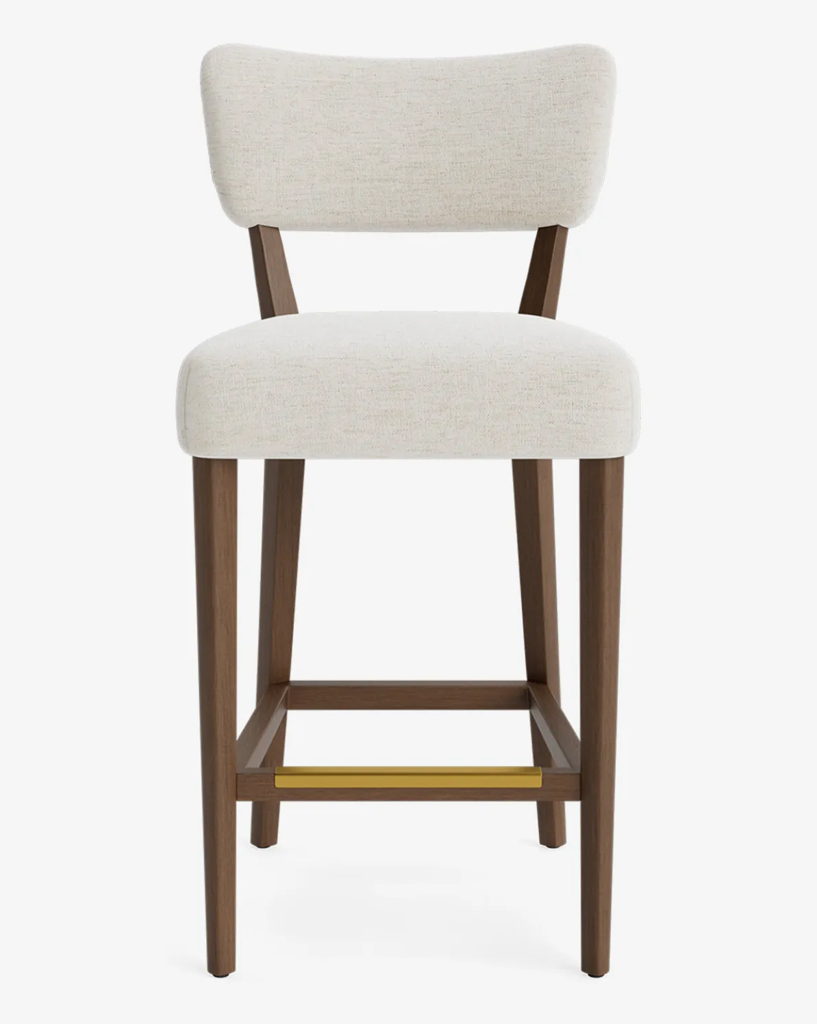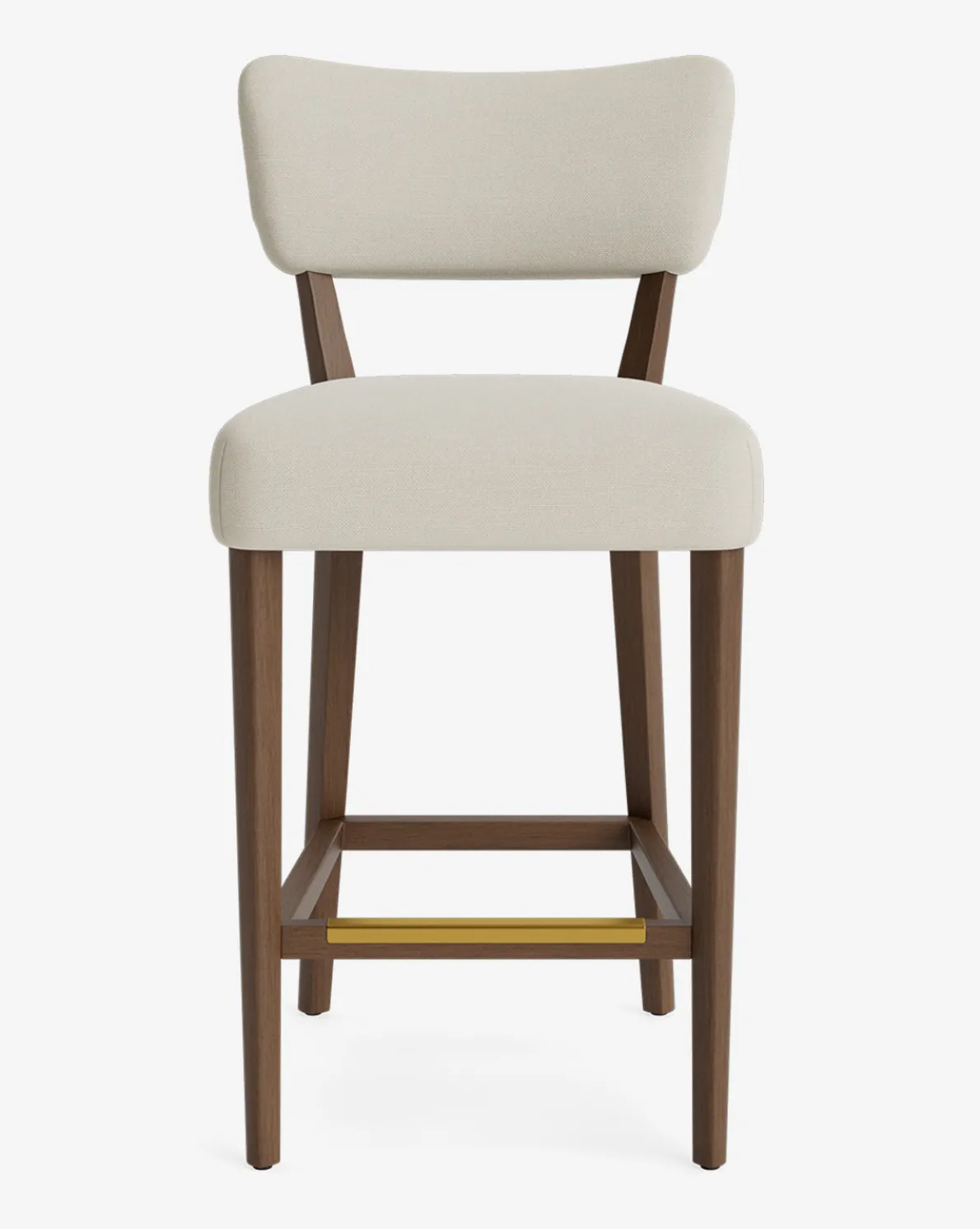 Vintage inspired and artfully designed, our Etienne Stool is a timeless staple for your kitchen styling. With a classic form, the stool features tapered square legs and a soft curve on the top and bottom edge of the back. The chestnut wood finish offers a rich warmth and the plush seat cushion caters to comfort. Customizable in a wide array of fabrics, you can make this made-to-order piece entirely your own.