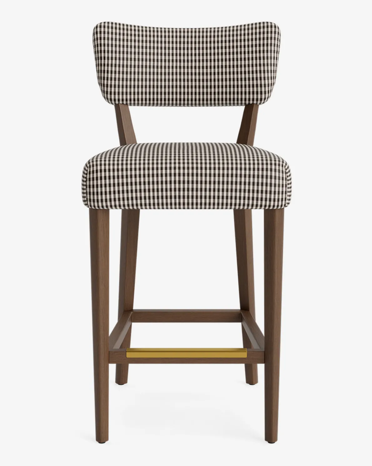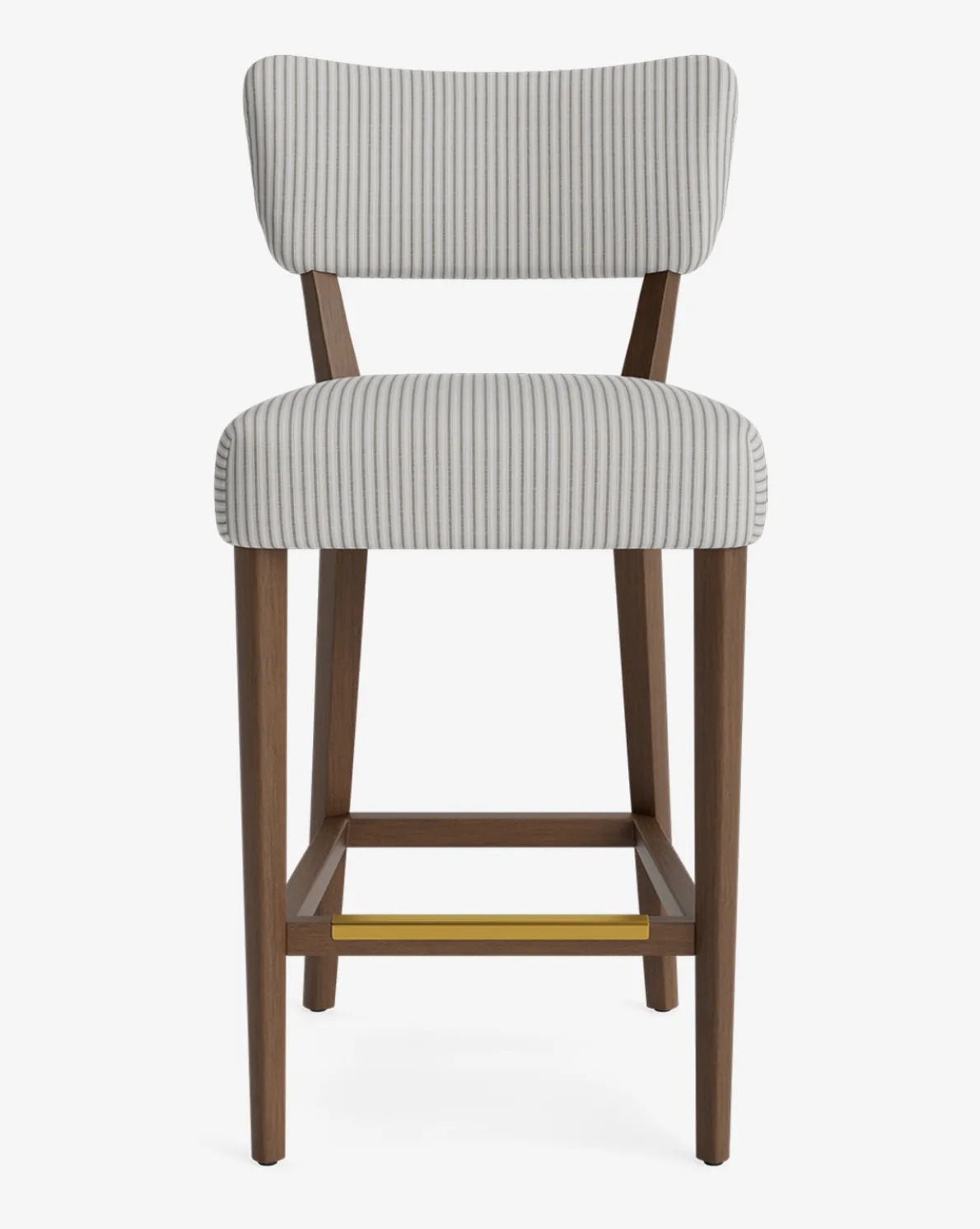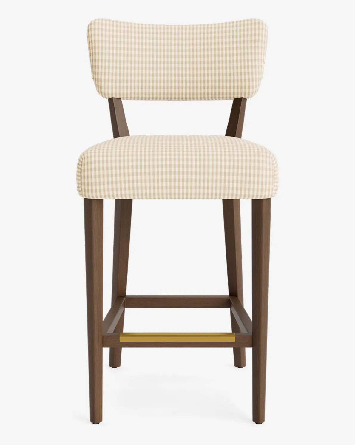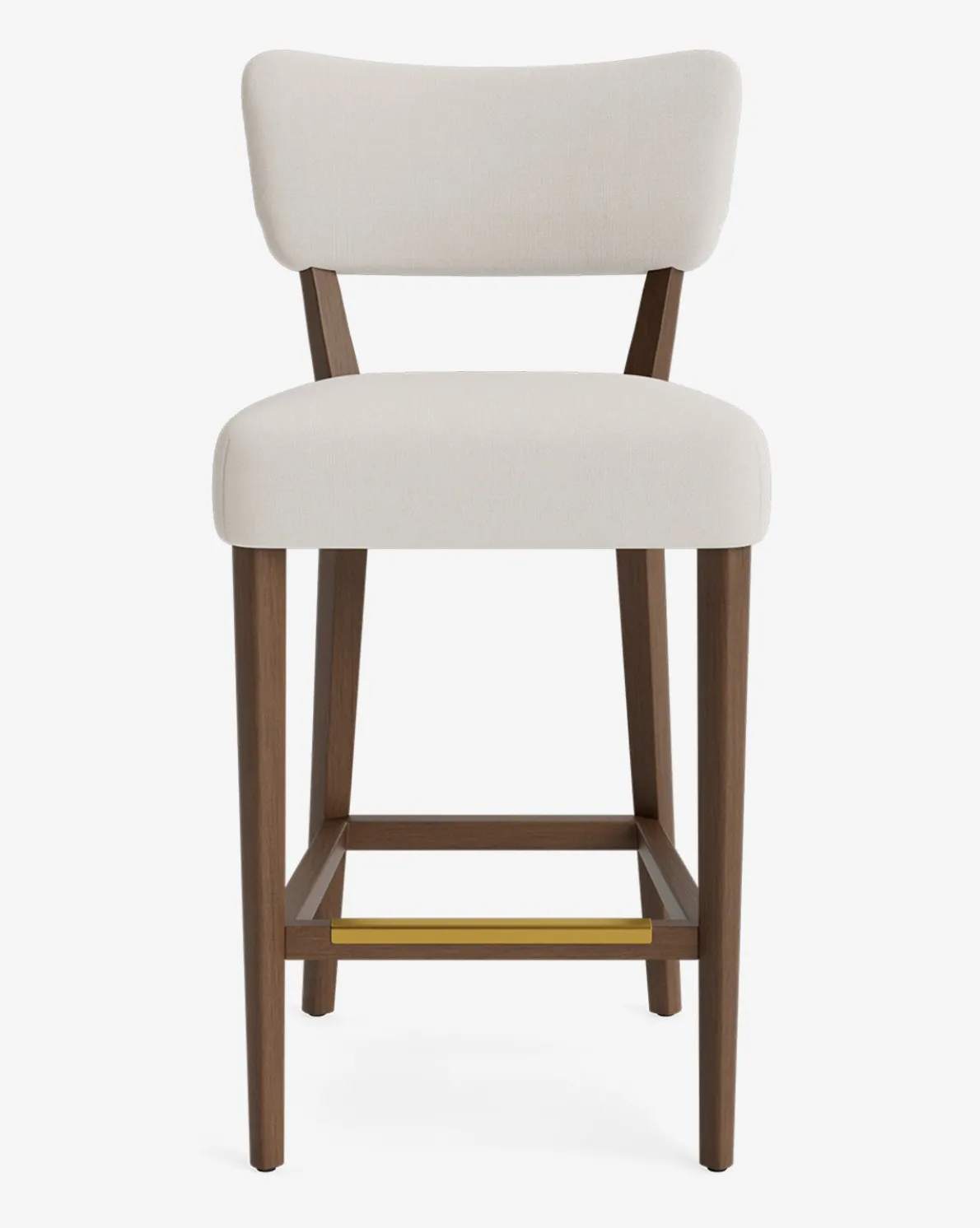Vintage inspired and artfully designed, our Etienne Stool is a timeless staple for your kitchen styling. With a classic form, the stool features tapered square legs and a soft curve on the top and bottom edge of the back. The chestnut wood finish offers a rich warmth and the plush seat cushion caters to comfort. Customizable in a wide array of fabrics, you can make this made-to-order piece entirely your own.