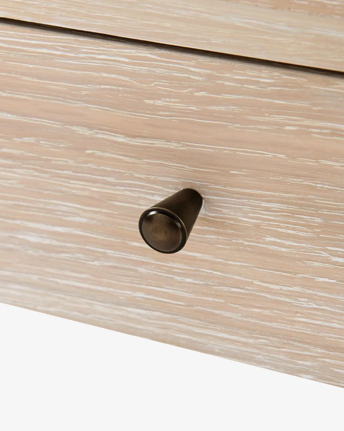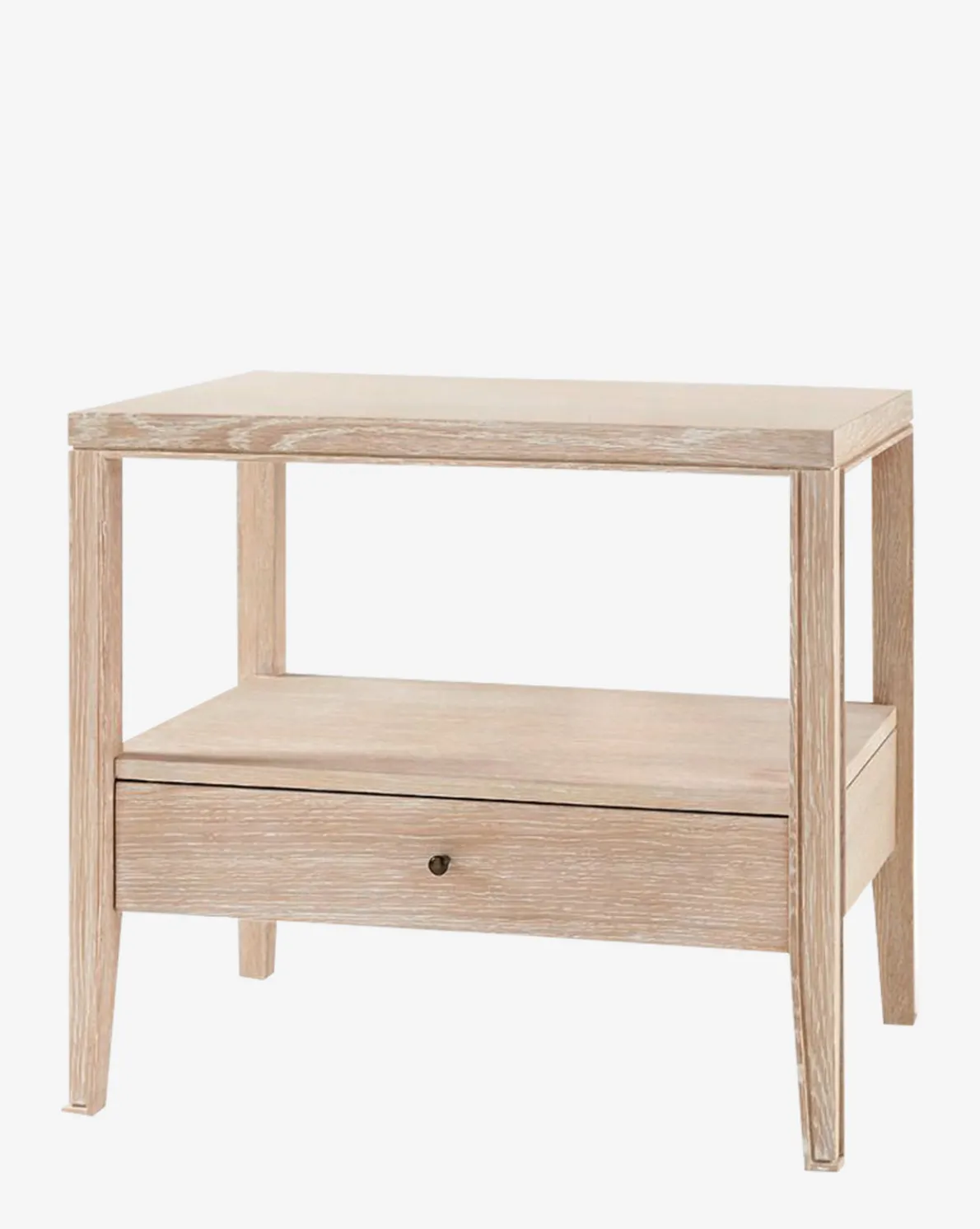 Elegant meets airy in the hand-crafted form of the Falkner Nightstand. With a single drawer for storage, featuring soft closing glides and a bronze pull, this nightstand pays attention to the details. Finished off with tapered legs, this chic, French-inpsired nightstand leaves a classic impression wherever it’s placed.