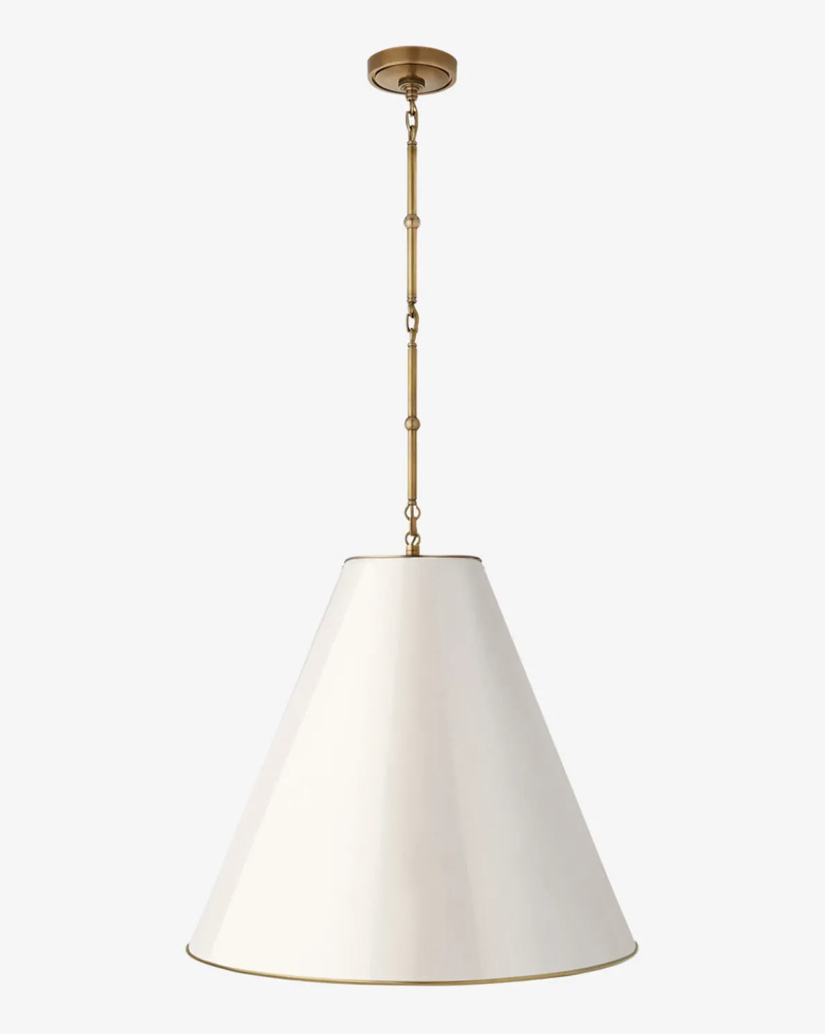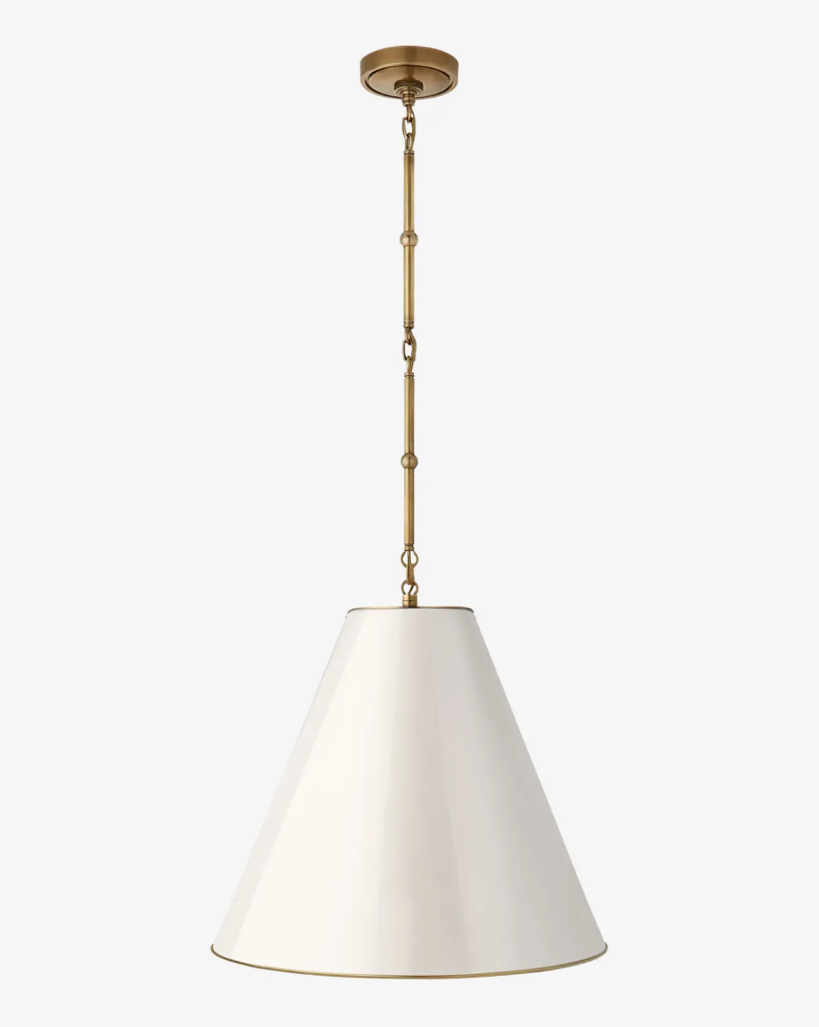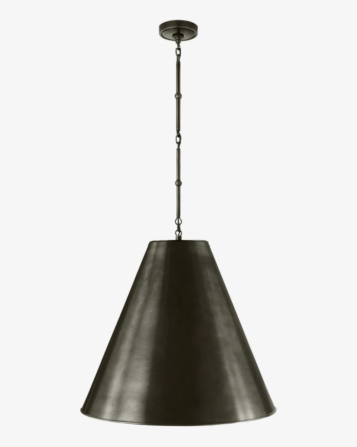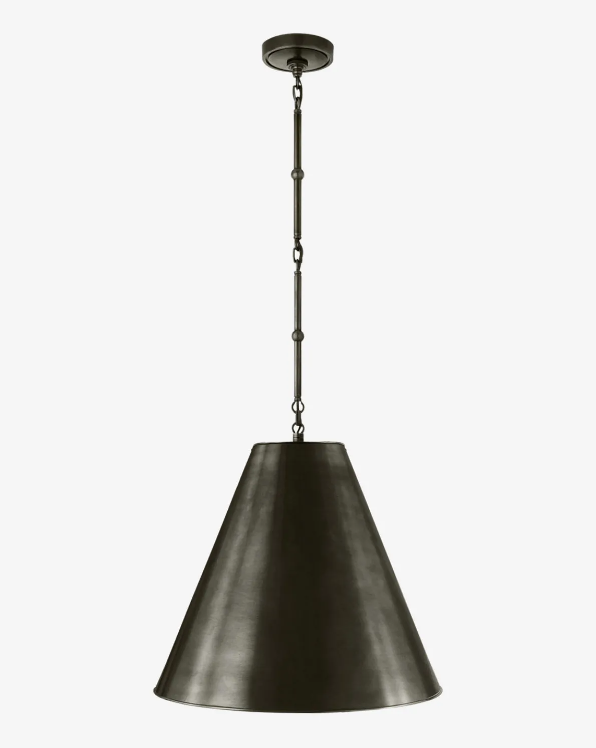 With its modern shade options and brilliant finishes, the Goodman Pendant makes it easy to update home lighting. Bring warm or cool tones to your space with its hand-rubbed antique brass or bronze finish.