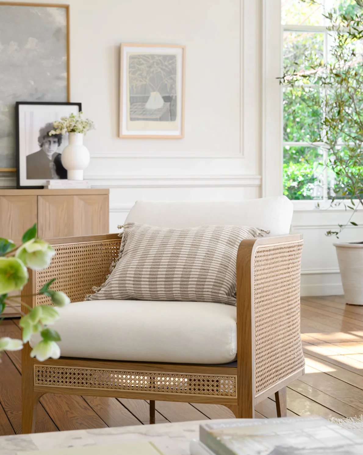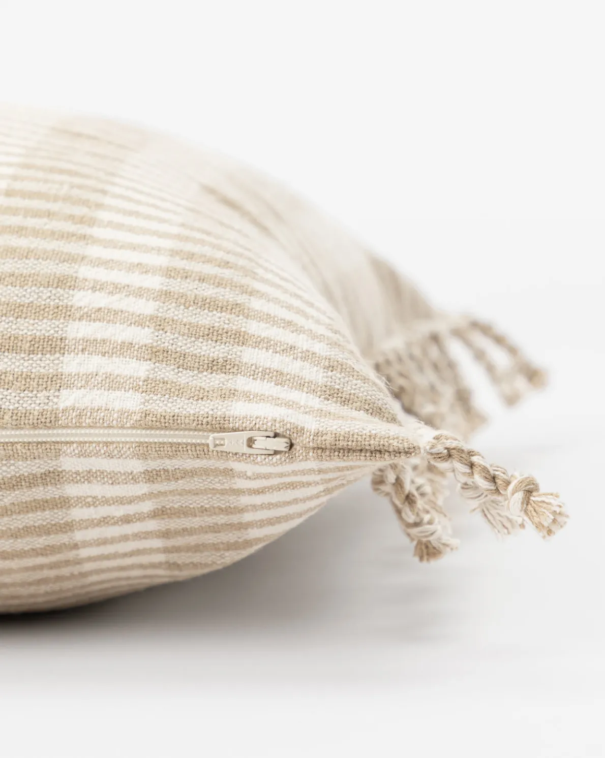 In a linen-cotton blend, the Gwen Pillow Cover features a woven texture that adds subtle ribbing to the surface of the cover. Complete with playful fringed edges, the Gwen Pillow Cover adds a textural, rich element to pillow vignettes.
