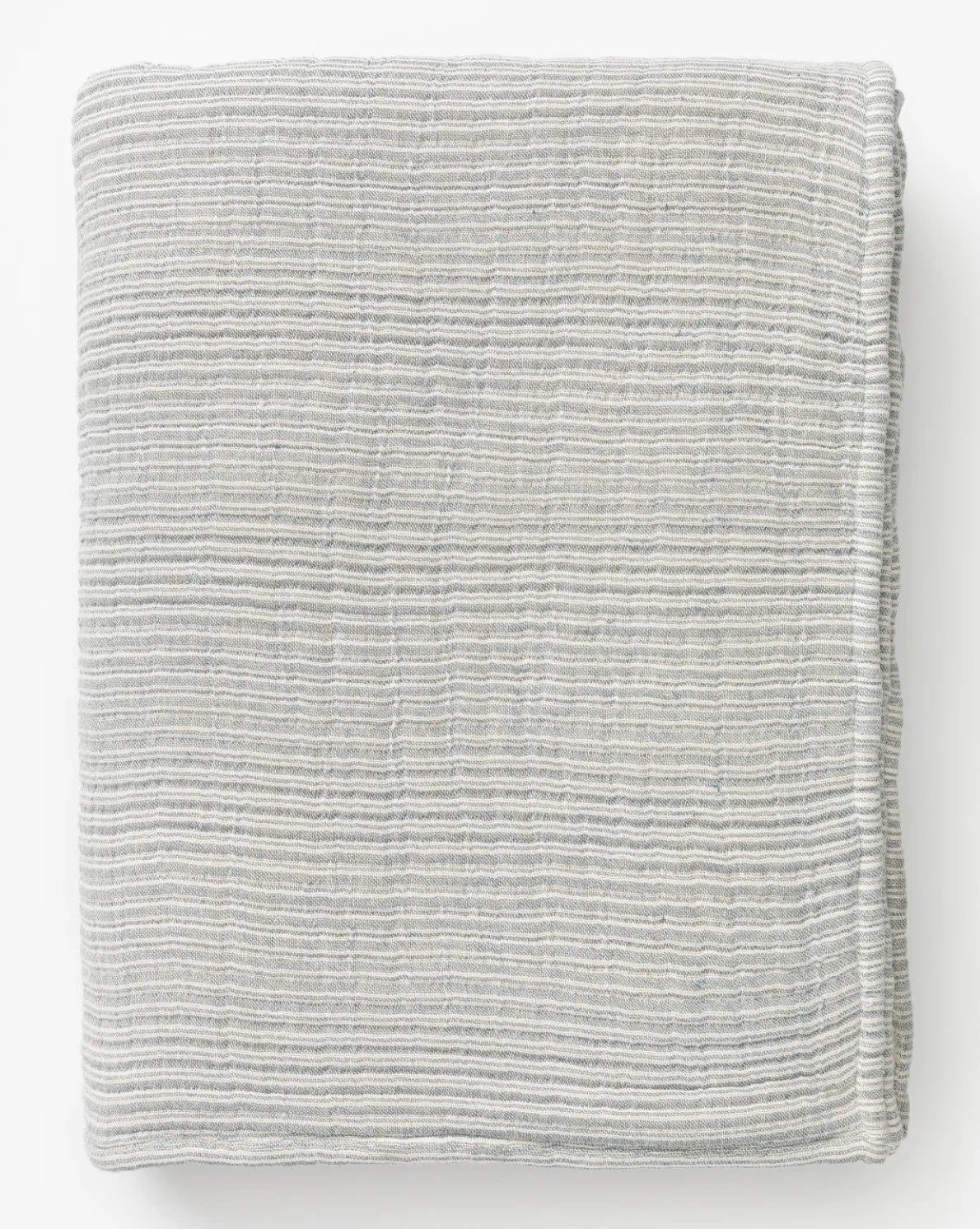 The Hanson Striped Cotton Coverlet is a beautiful mid-layer addition to bedding styles. Its cool gray and cream palette embraces an inviting, comfortable feel, bringing a neutral yet approachable touch to layers of bedding.