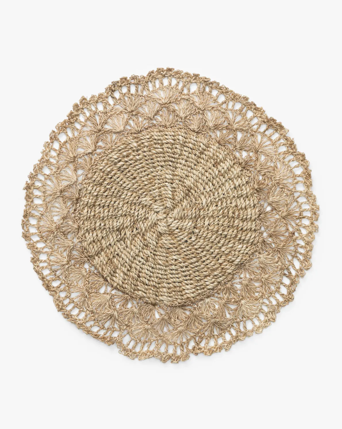 Add an artisanal touch to your table with the Hermione Placemat. Featuring an intricate woven center and delicate crochet-inspired edge, it brings texture and charm to any setting. Ideal for layering under dinnerware to create a warm, inviting, and thoughtfully curated look.
