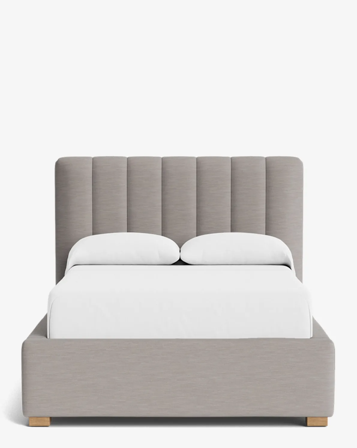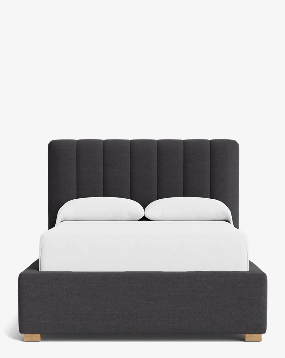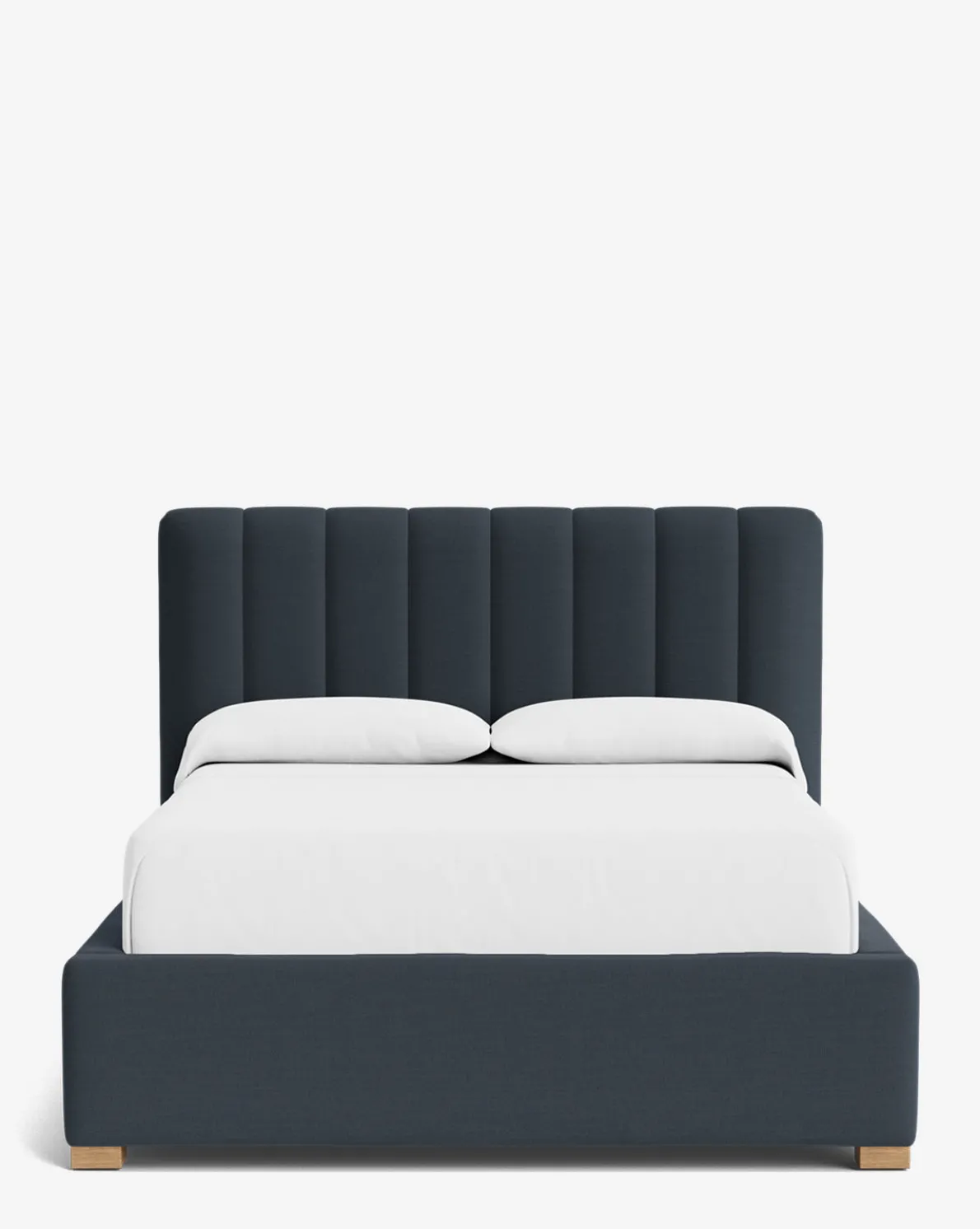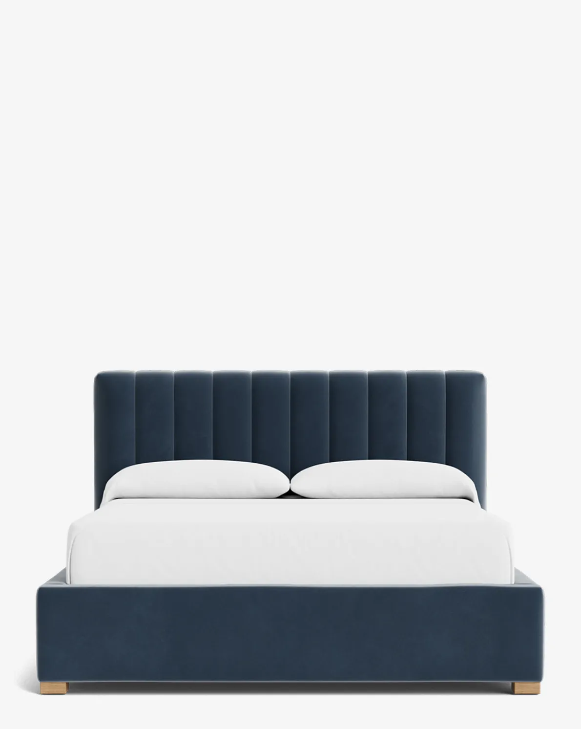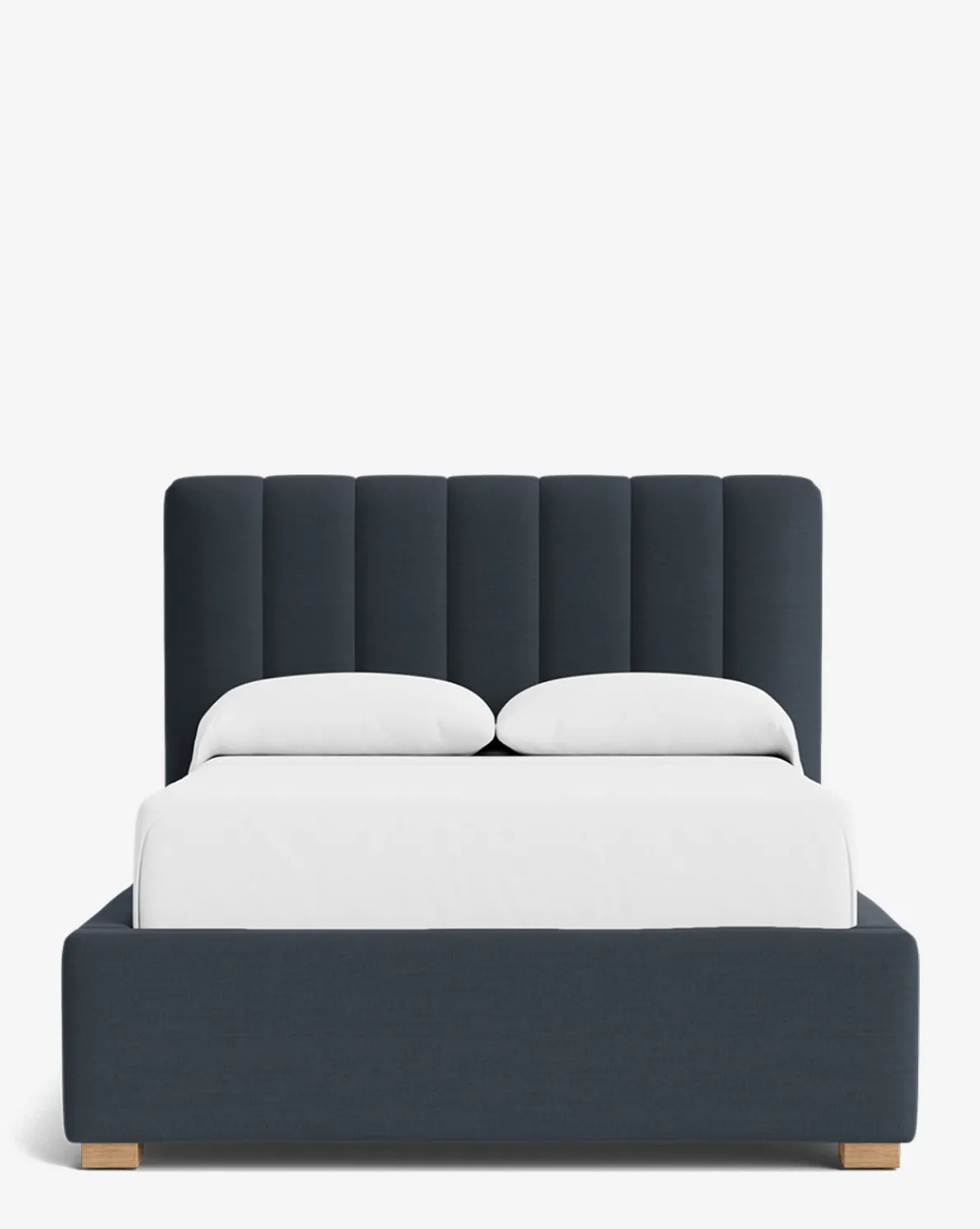 Fully upholstered on a bench-made alder wood frame, the Hoffman Bed with 52″ Headboard is customizable in a variety of high-quality fabrics, each hand-selected by our team for their beauty and durability. With distinct channels that flow through the headboard and subtle wood block feet, the bed brings a refined touch to classic bed designs.