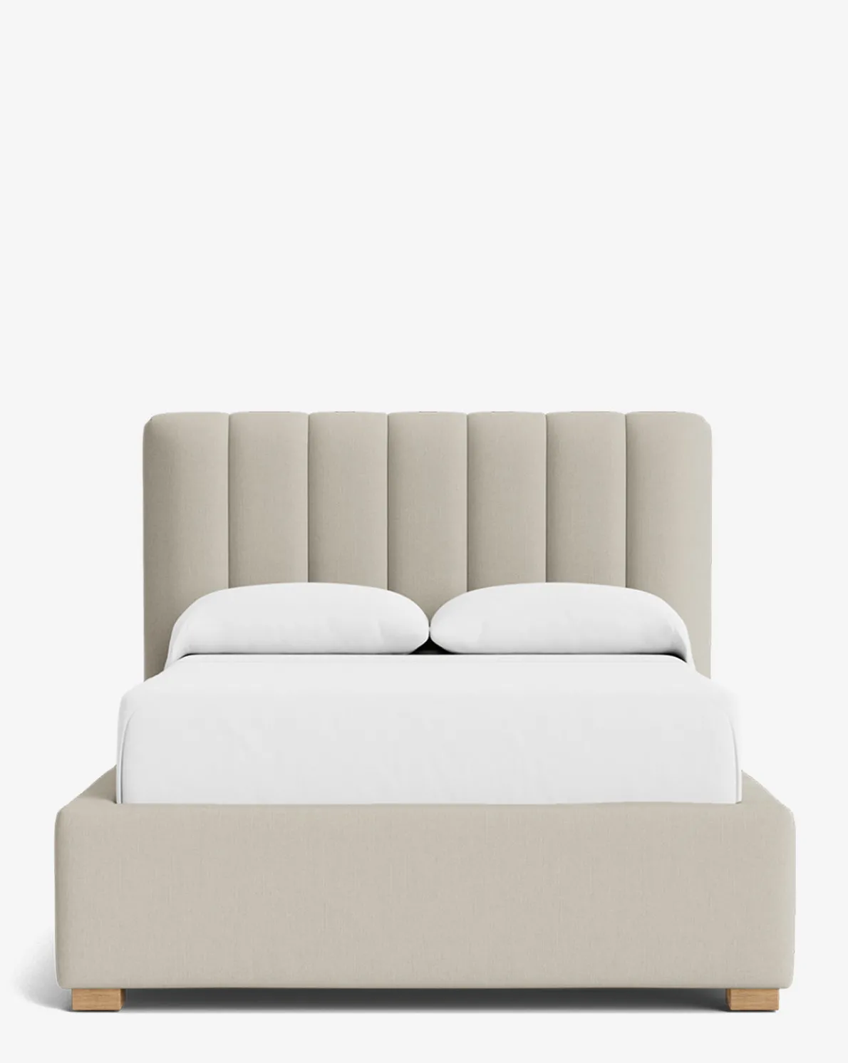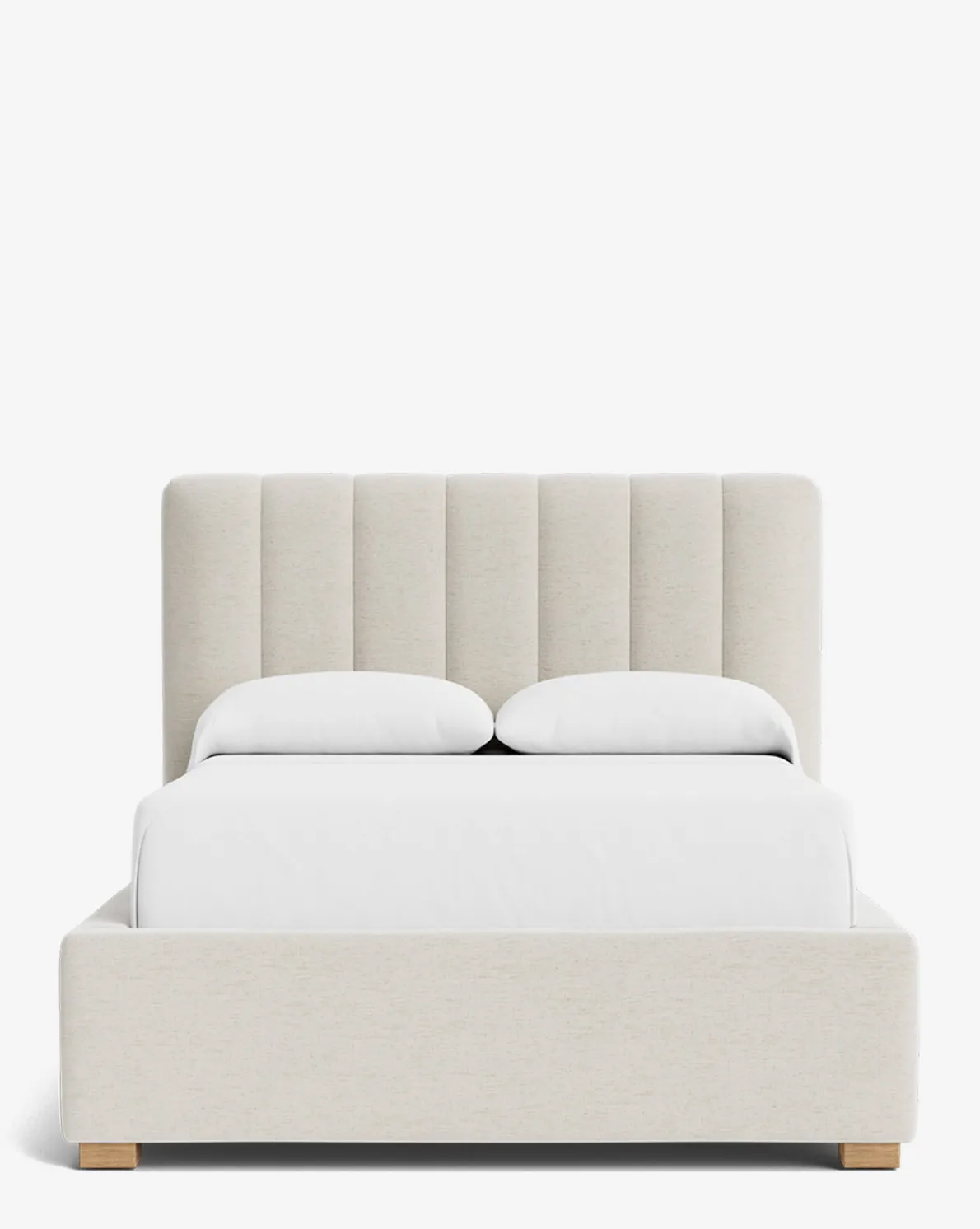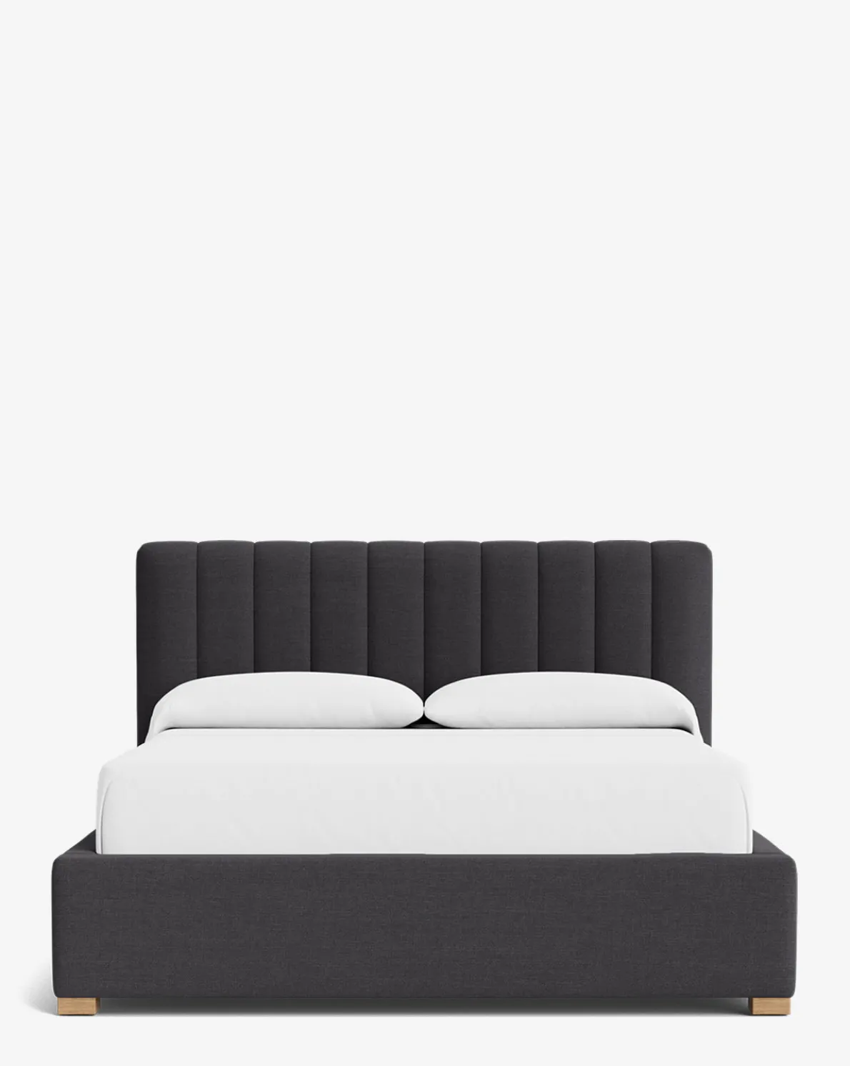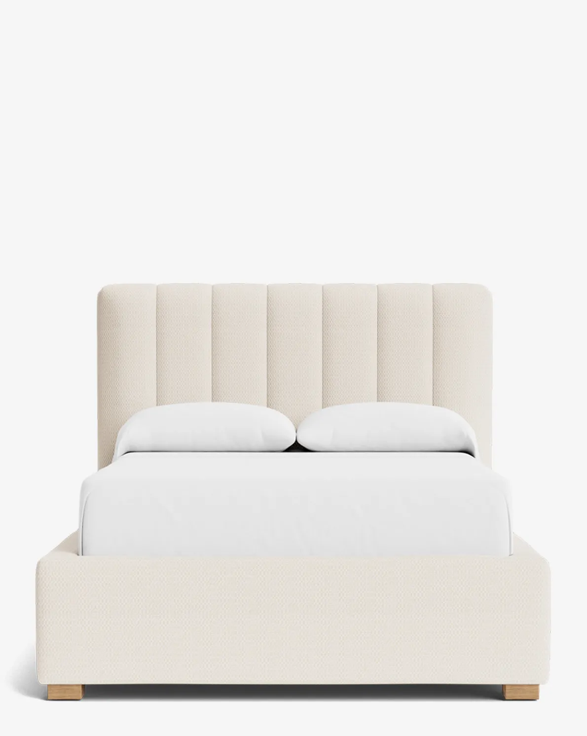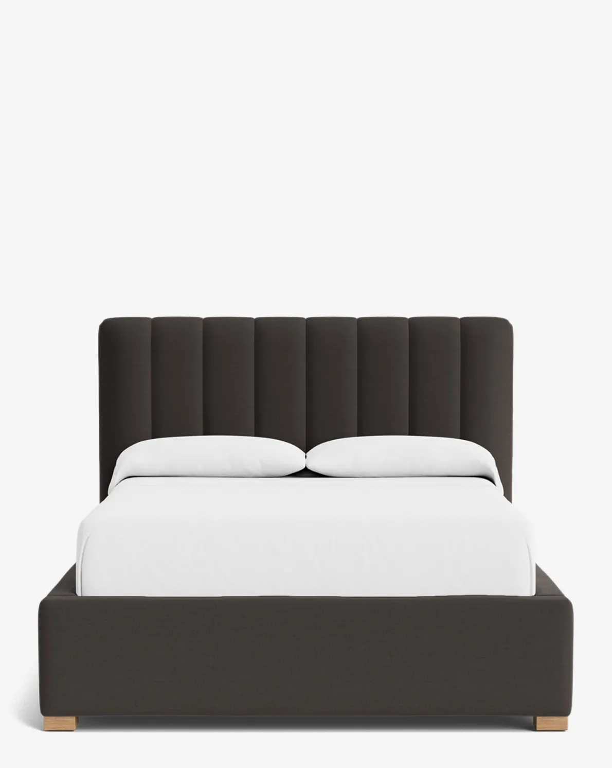 Fully upholstered on a bench-made alder wood frame, the Hoffman Bed with 52″ Headboard is customizable in a variety of high-quality fabrics, each hand-selected by our team for their beauty and durability. With distinct channels that flow through the headboard and subtle wood block feet, the bed brings a refined touch to classic bed designs.