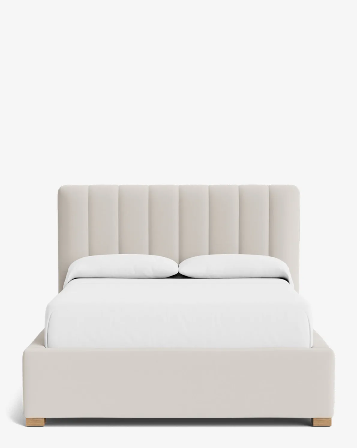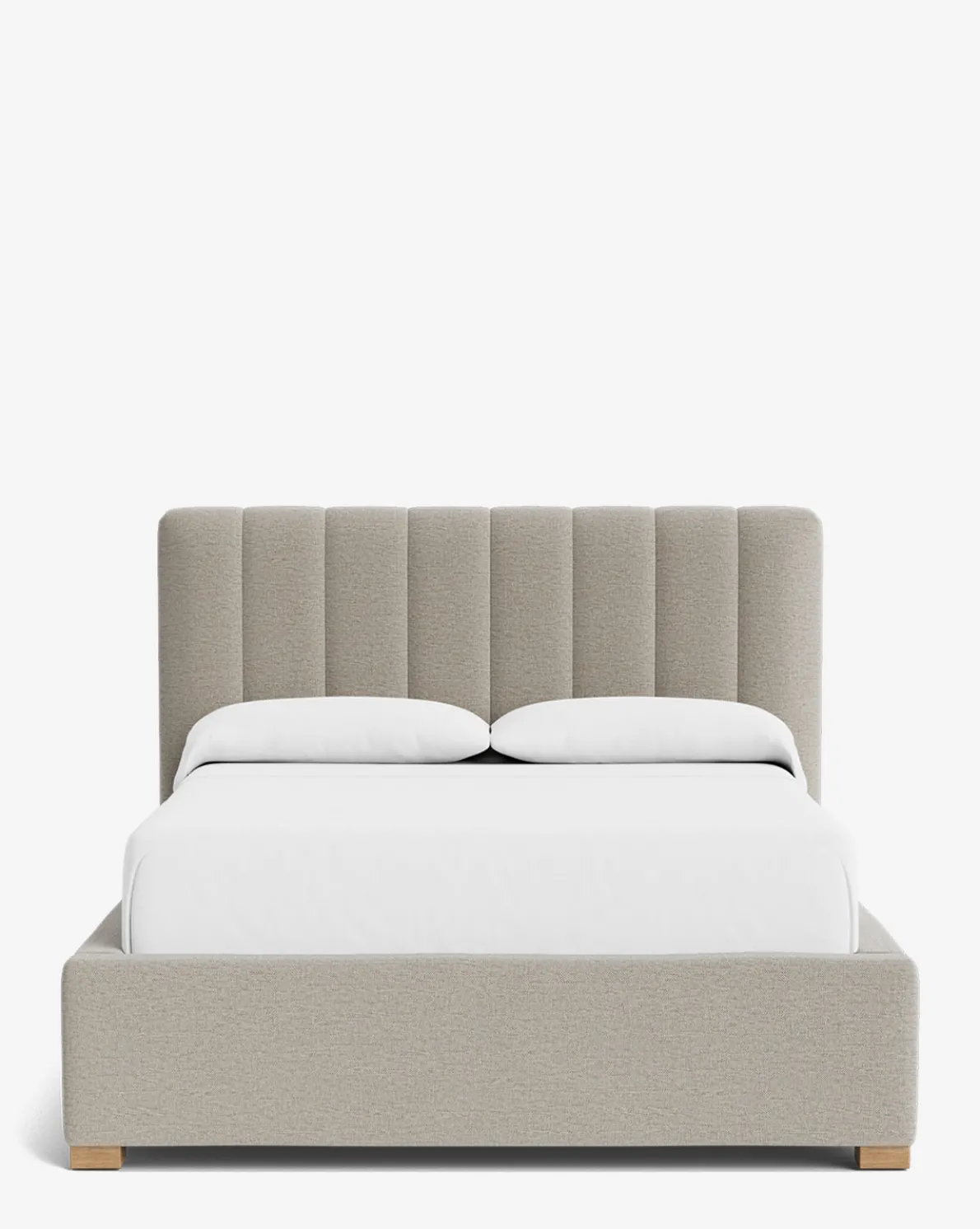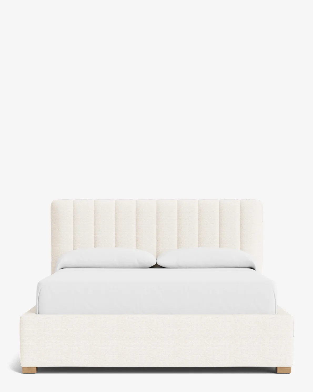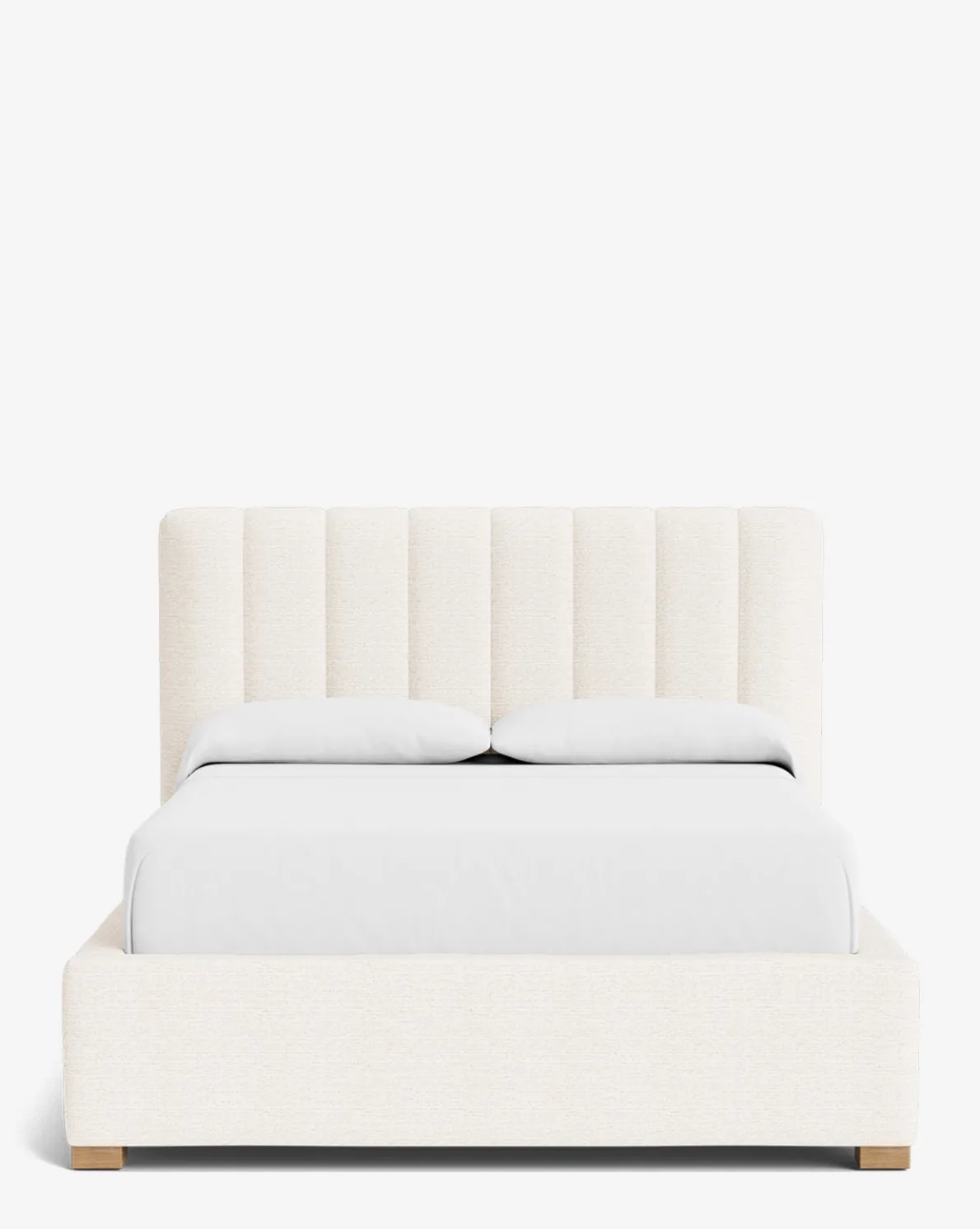 Fully upholstered on a bench-made alder wood frame, the Hoffman Bed with 52″ Headboard is customizable in a variety of high-quality fabrics, each hand-selected by our team for their beauty and durability. With distinct channels that flow through the headboard and subtle wood block feet, the bed brings a refined touch to classic bed designs.