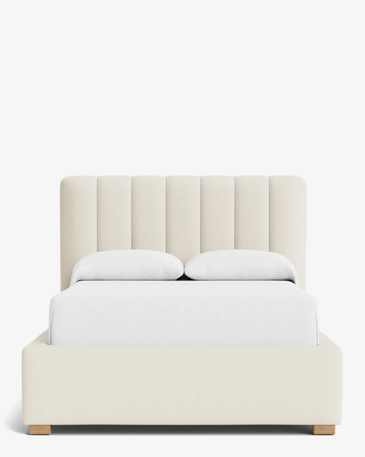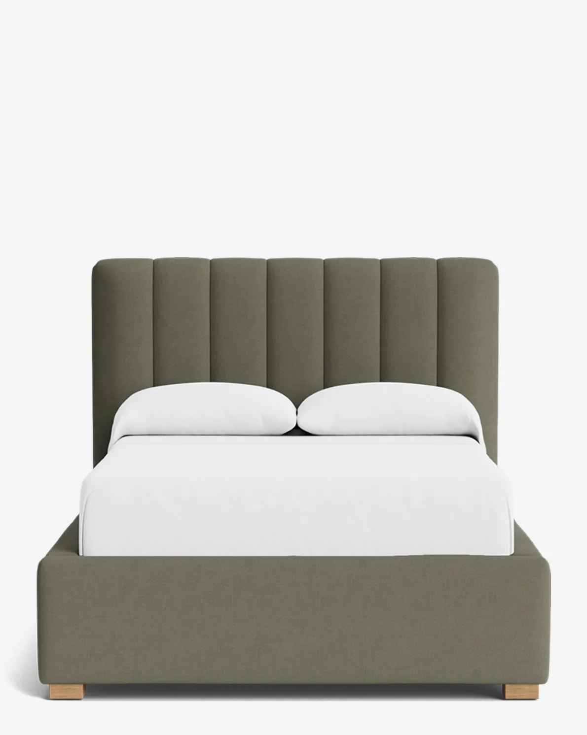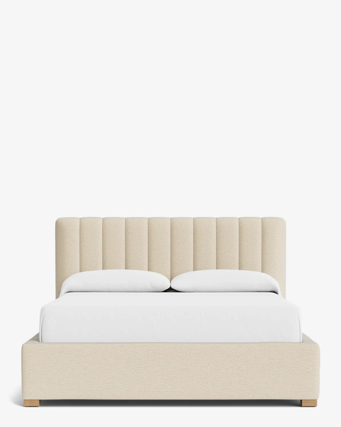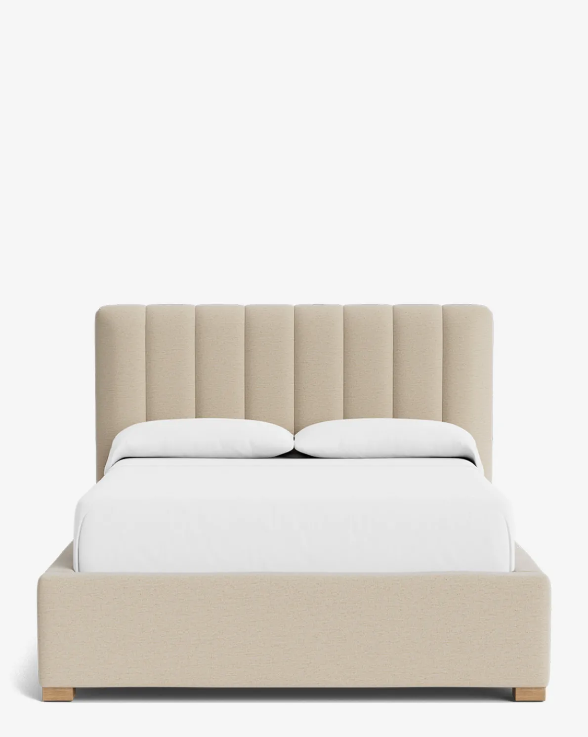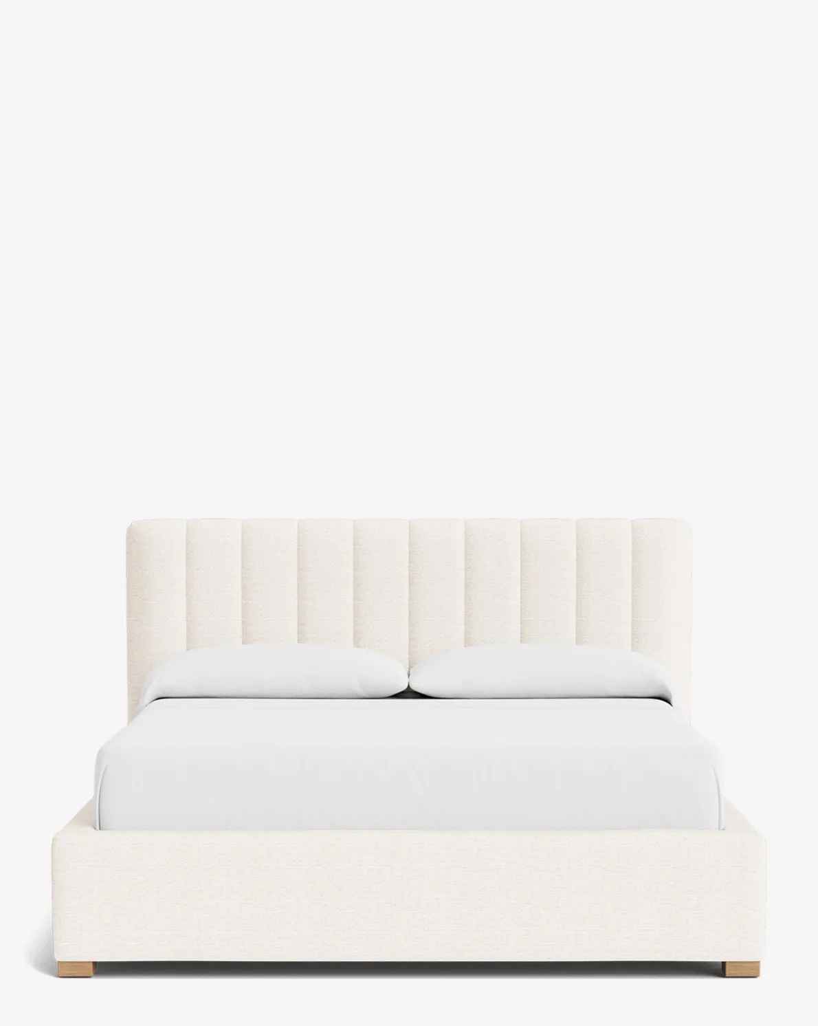 Fully upholstered on a bench-made alder wood frame, the Hoffman Bed with 52″ Headboard is customizable in a variety of high-quality fabrics, each hand-selected by our team for their beauty and durability. With distinct channels that flow through the headboard and subtle wood block feet, the bed brings a refined touch to classic bed designs.