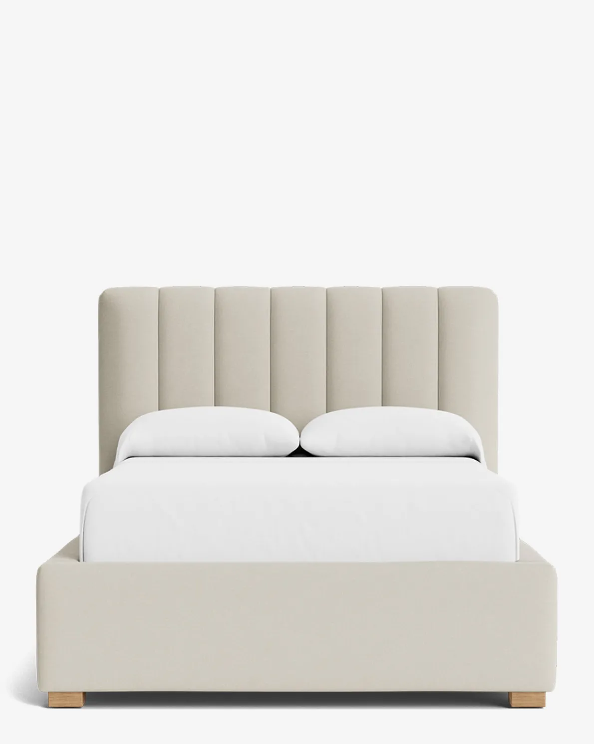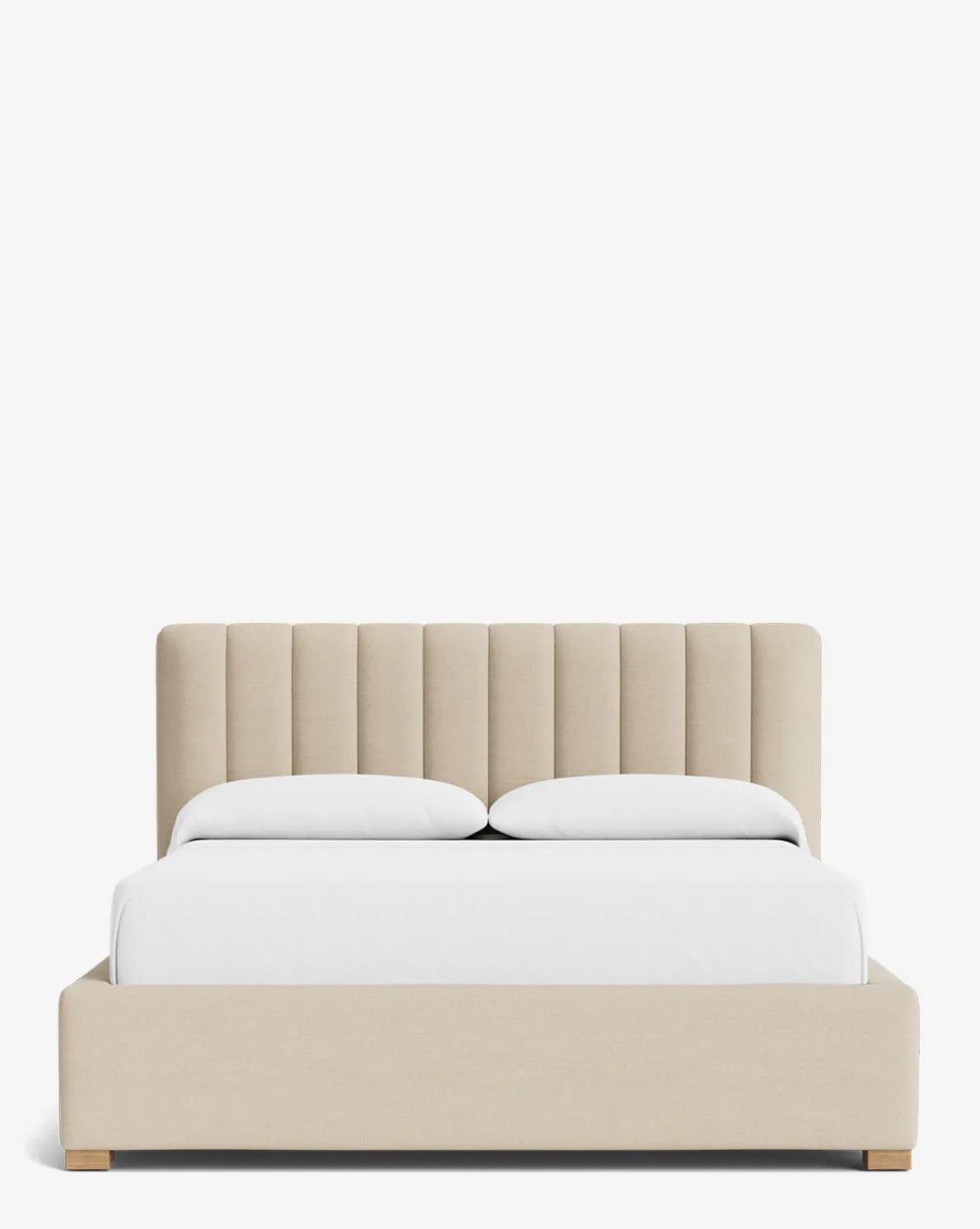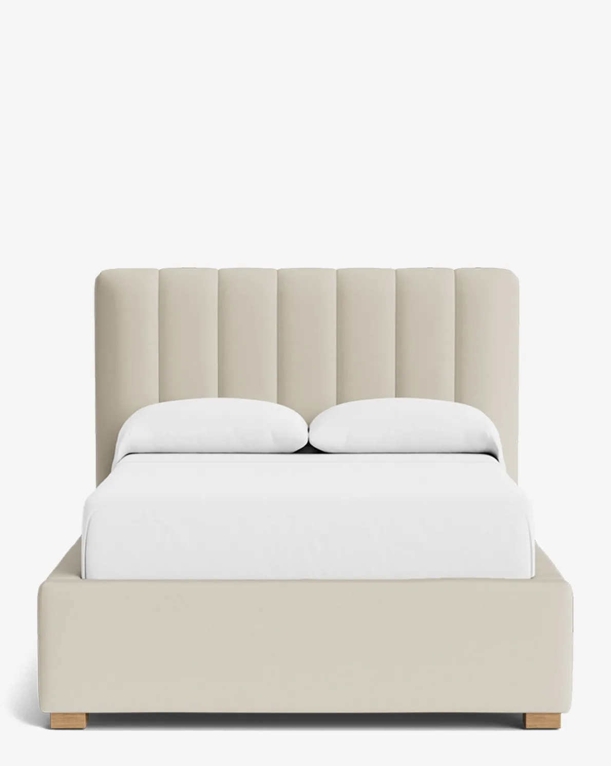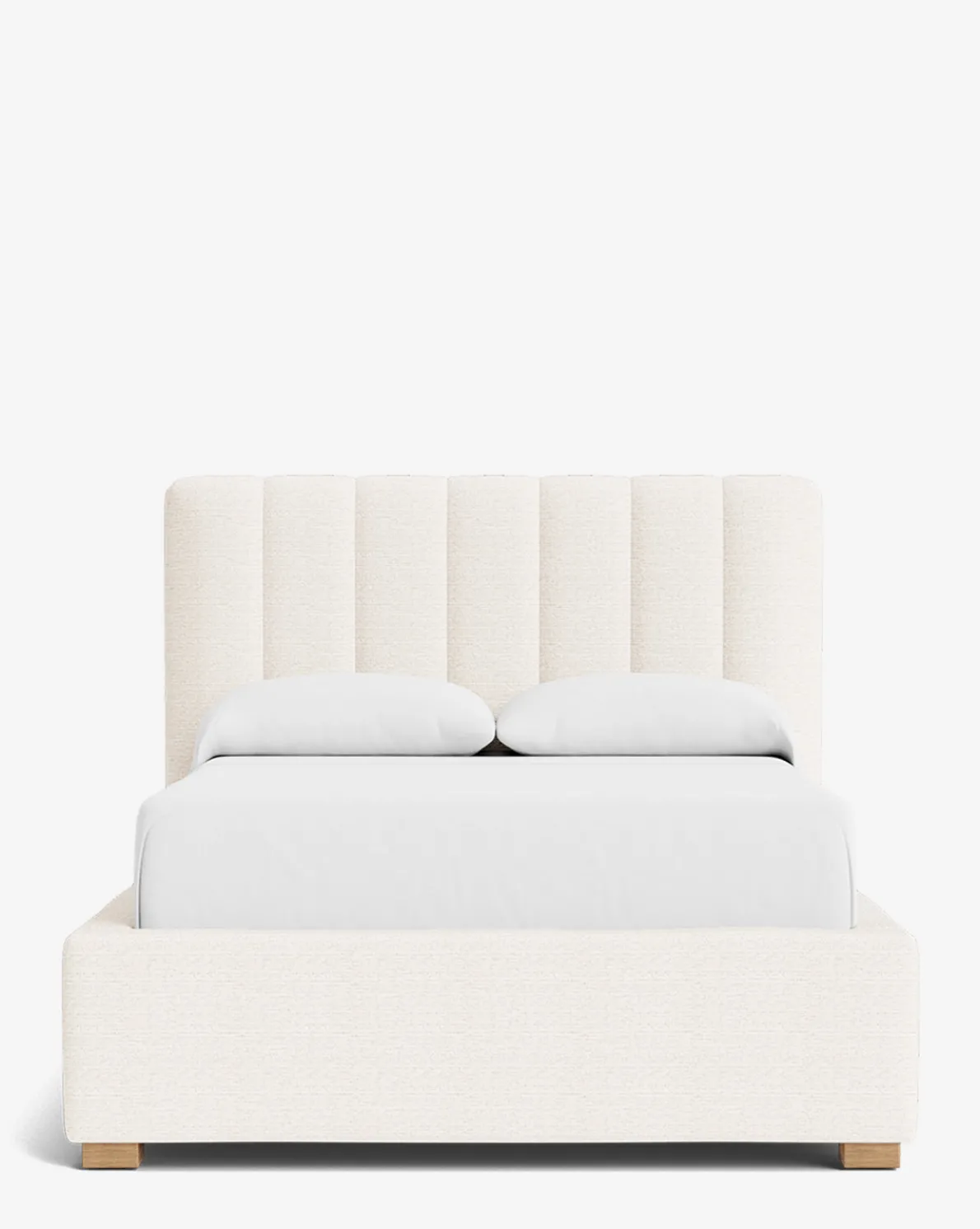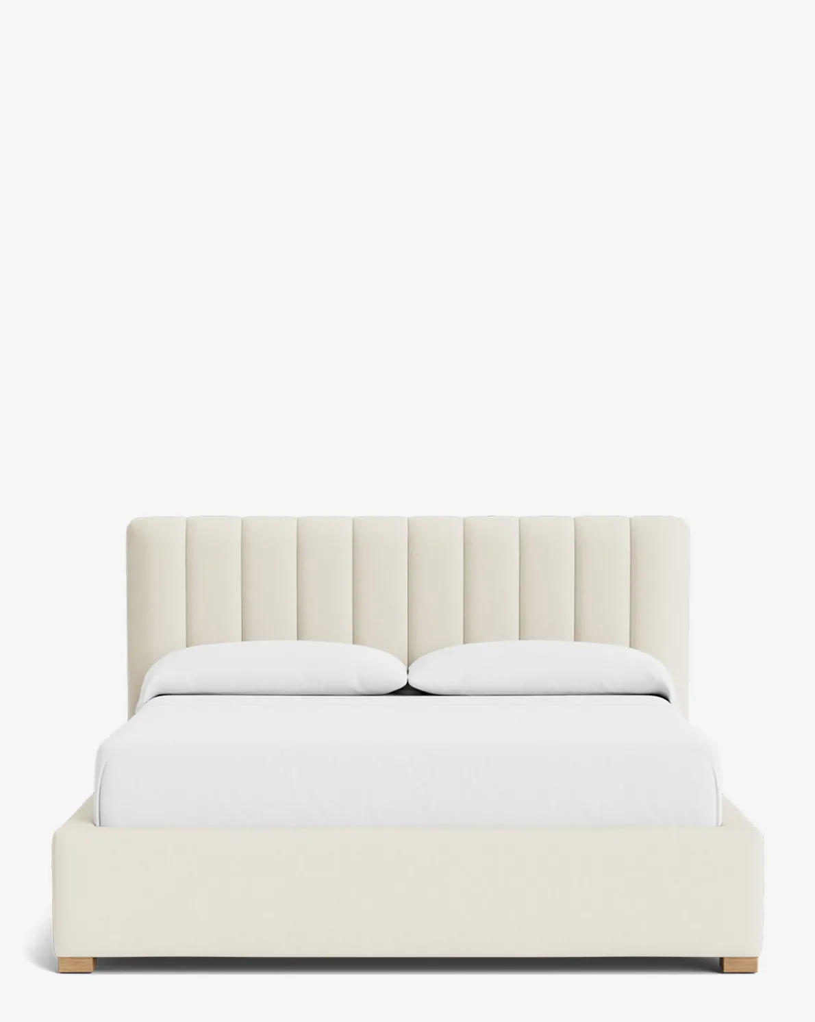 Fully upholstered on a bench-made alder wood frame, the Hoffman Bed with 52″ Headboard is customizable in a variety of high-quality fabrics, each hand-selected by our team for their beauty and durability. With distinct channels that flow through the headboard and subtle wood block feet, the bed brings a refined touch to classic bed designs.