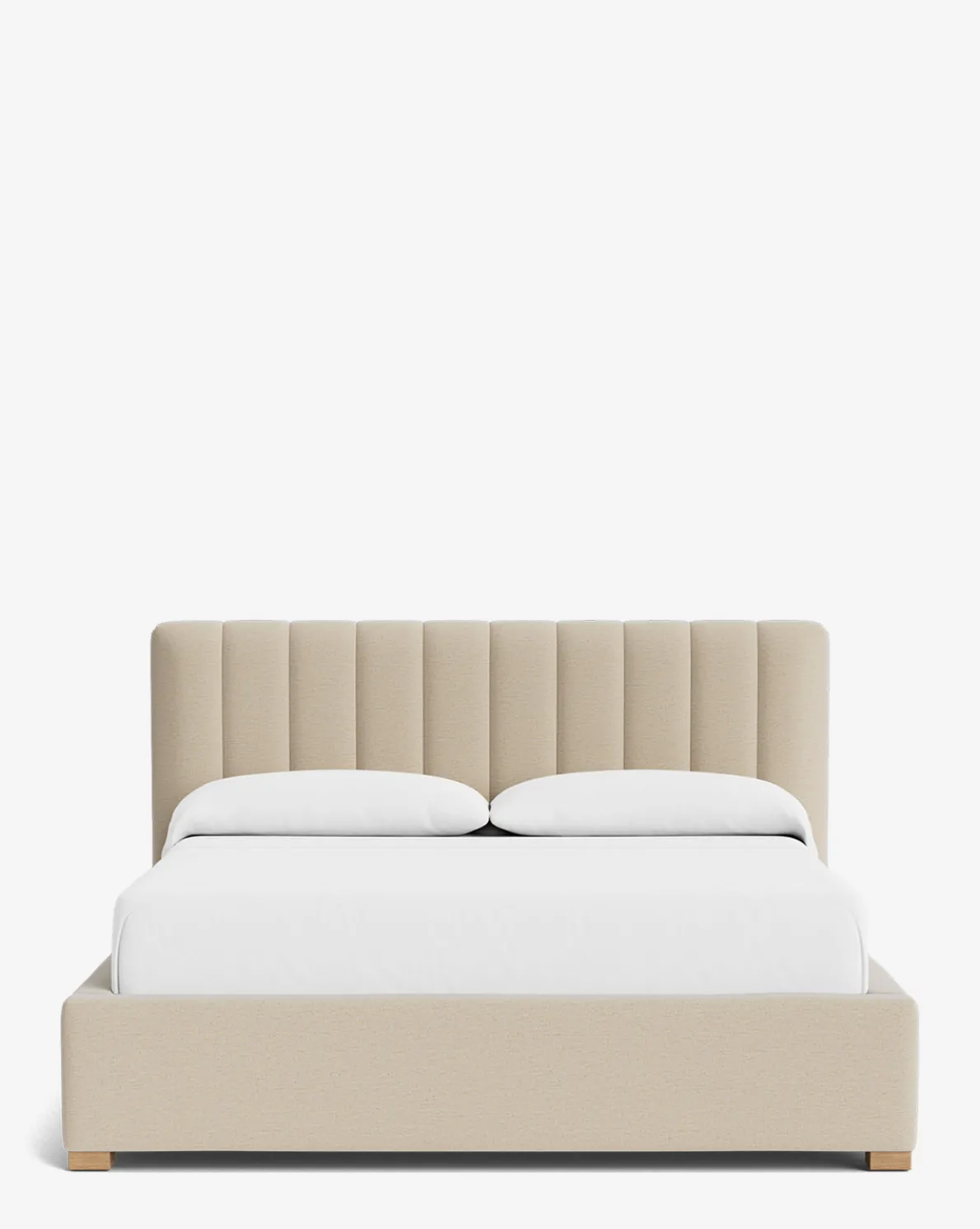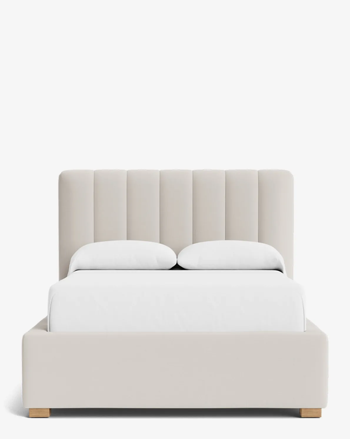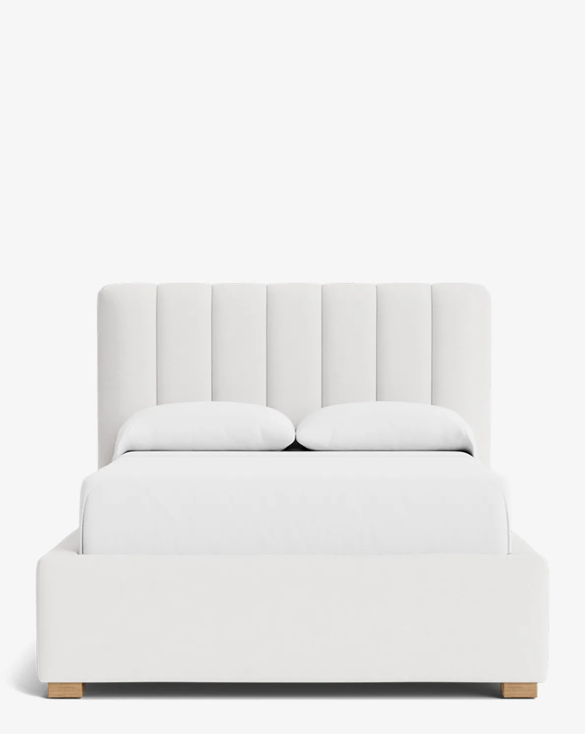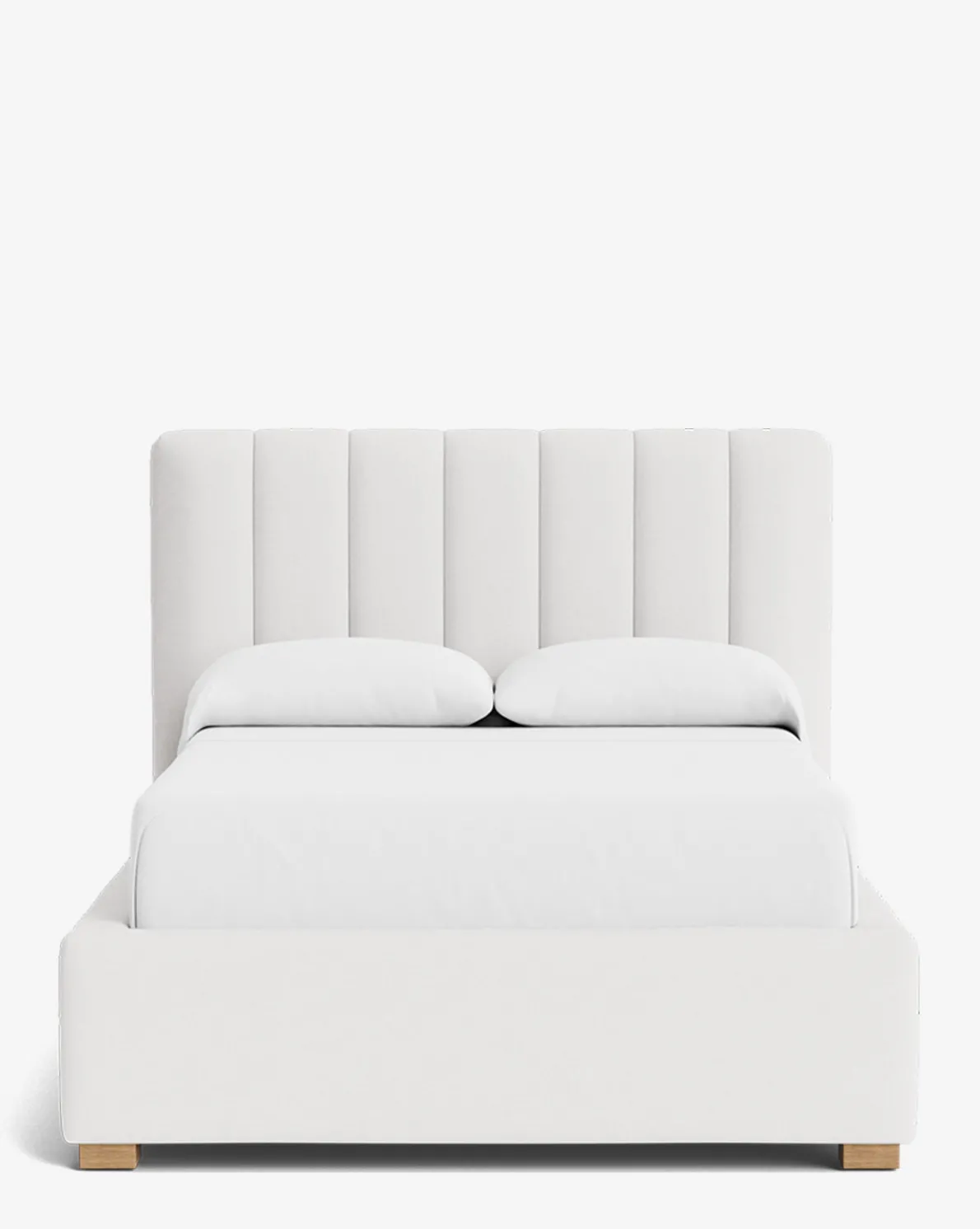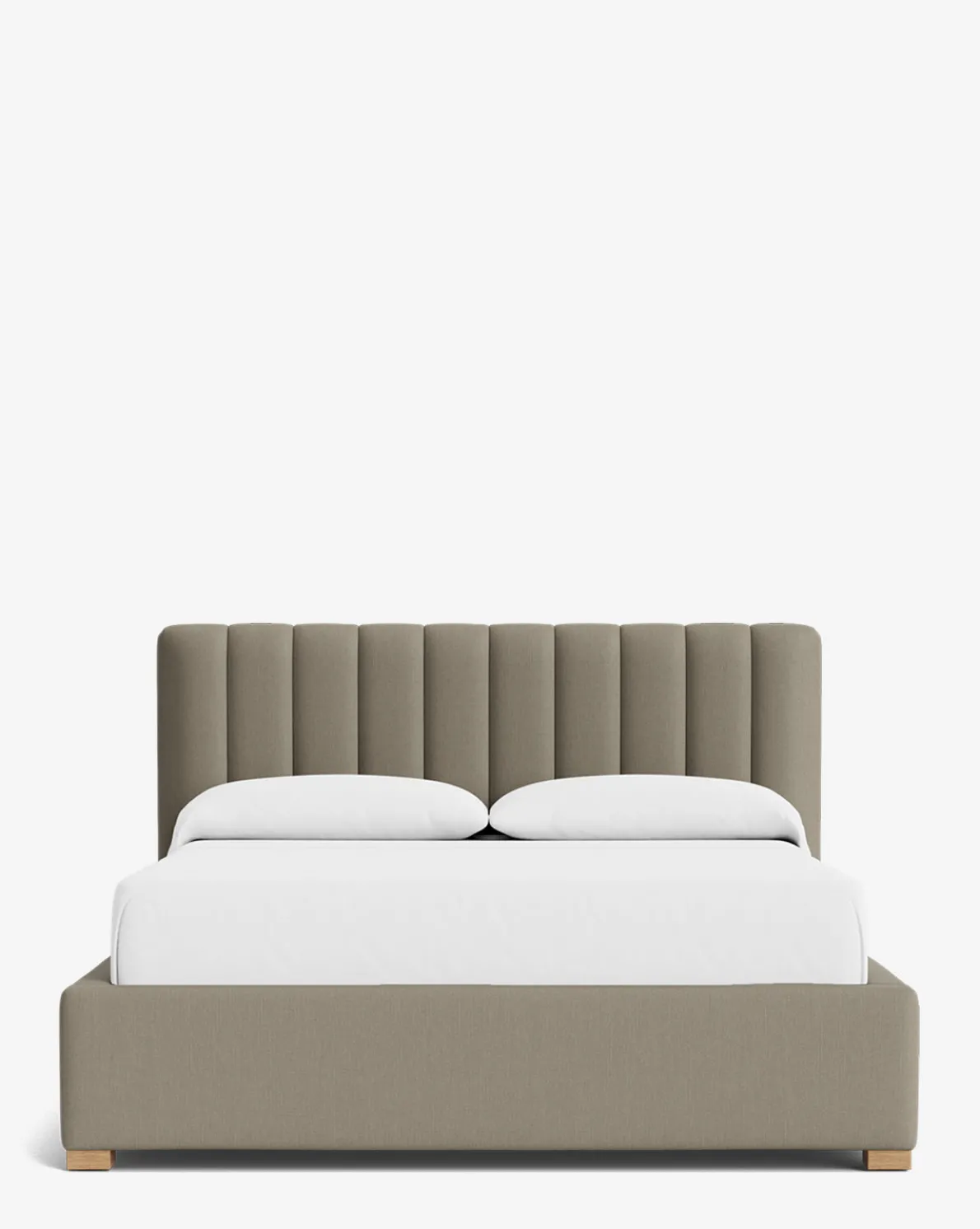 Fully upholstered on a bench-made alder wood frame, the Hoffman Bed with 52″ Headboard is customizable in a variety of high-quality fabrics, each hand-selected by our team for their beauty and durability. With distinct channels that flow through the headboard and subtle wood block feet, the bed brings a refined touch to classic bed designs.