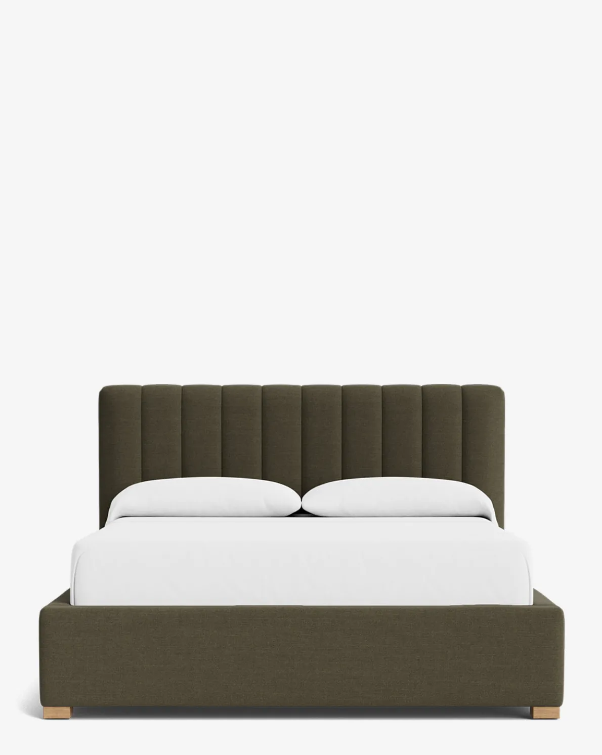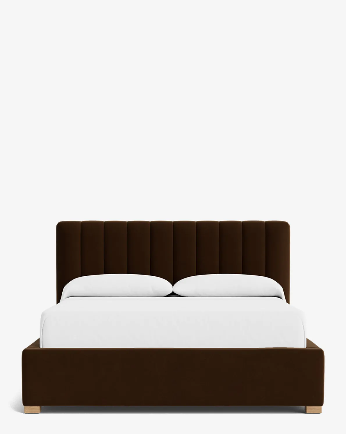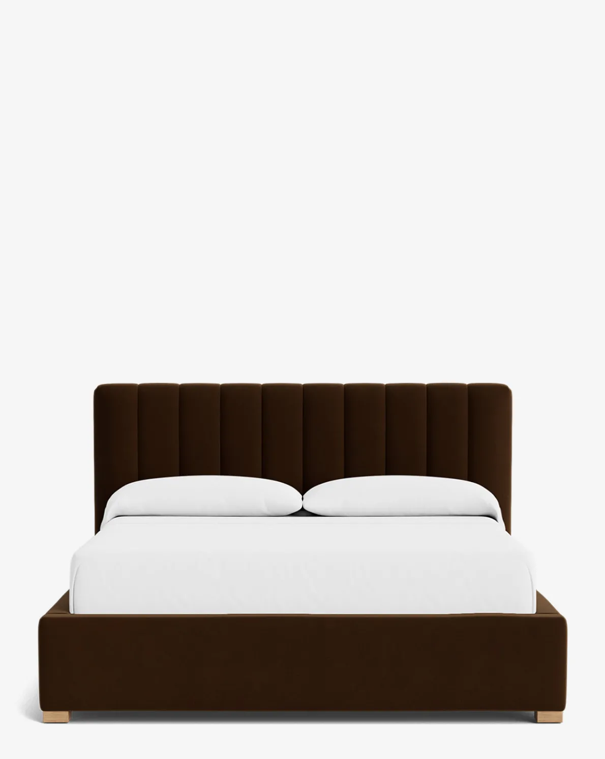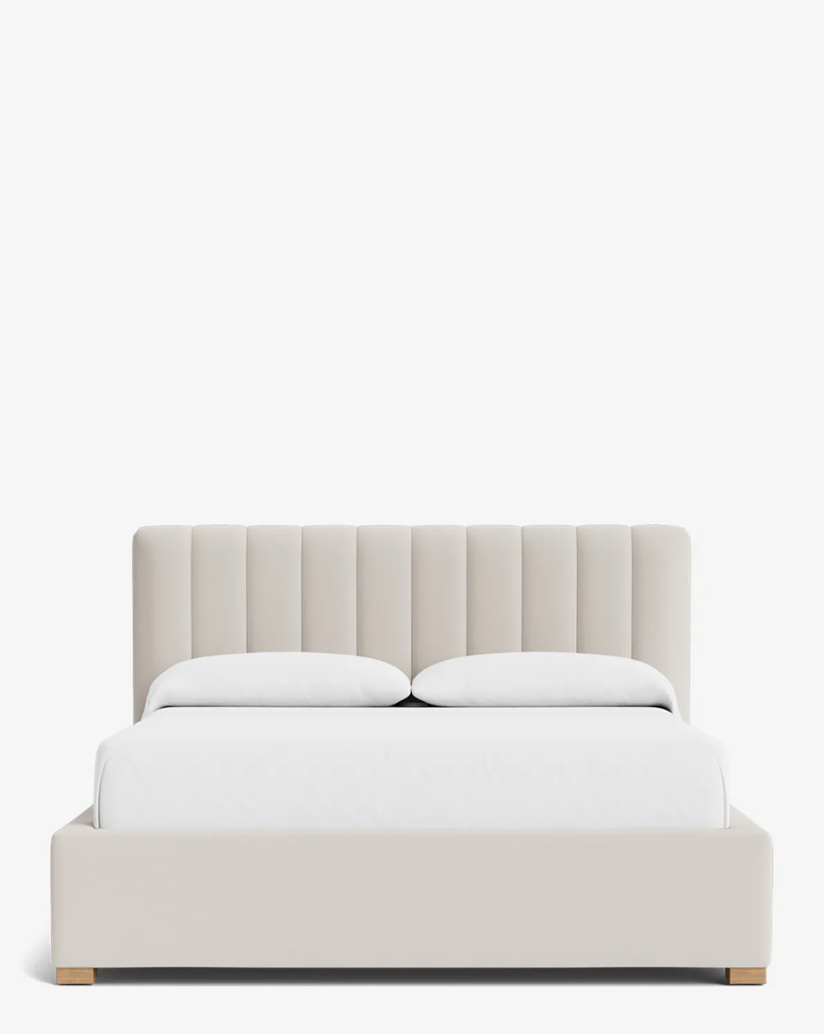 Fully upholstered on a bench-made alder wood frame, the Hoffman Bed with 52″ Headboard is customizable in a variety of high-quality fabrics, each hand-selected by our team for their beauty and durability. With distinct channels that flow through the headboard and subtle wood block feet, the bed brings a refined touch to classic bed designs.