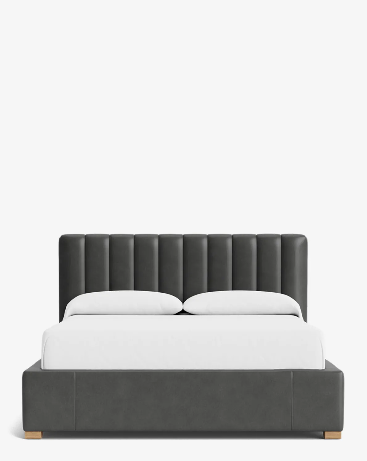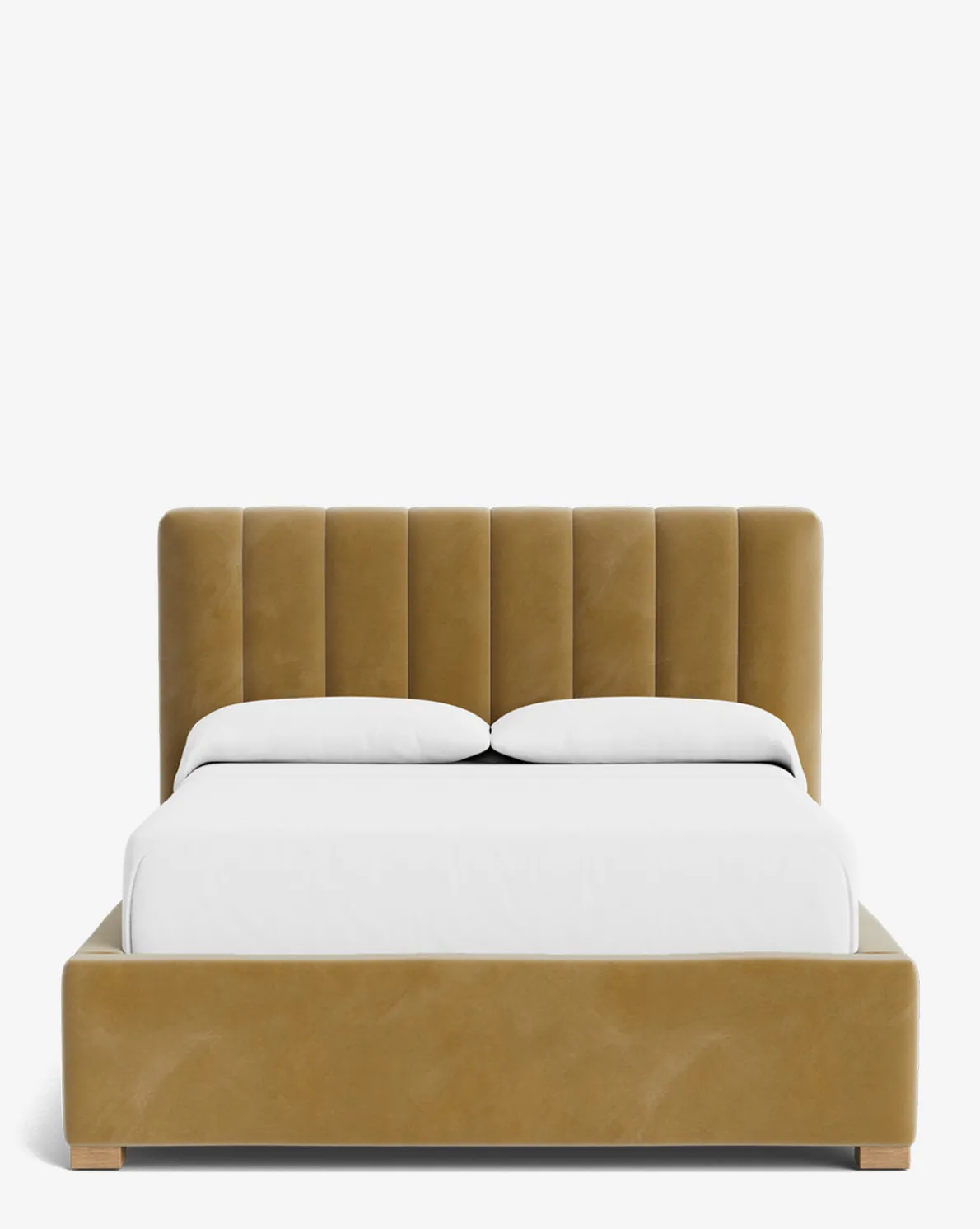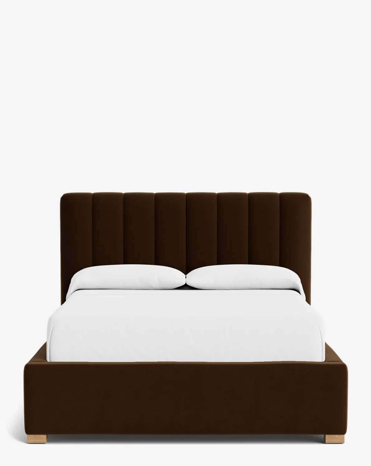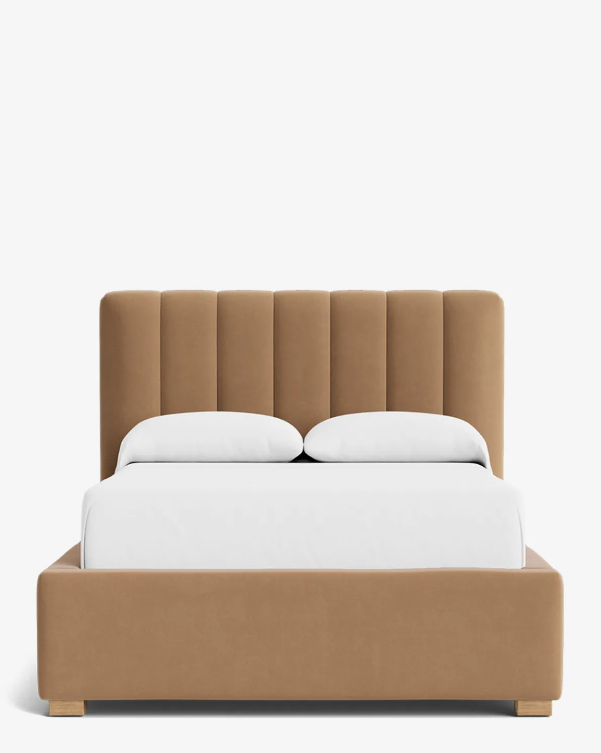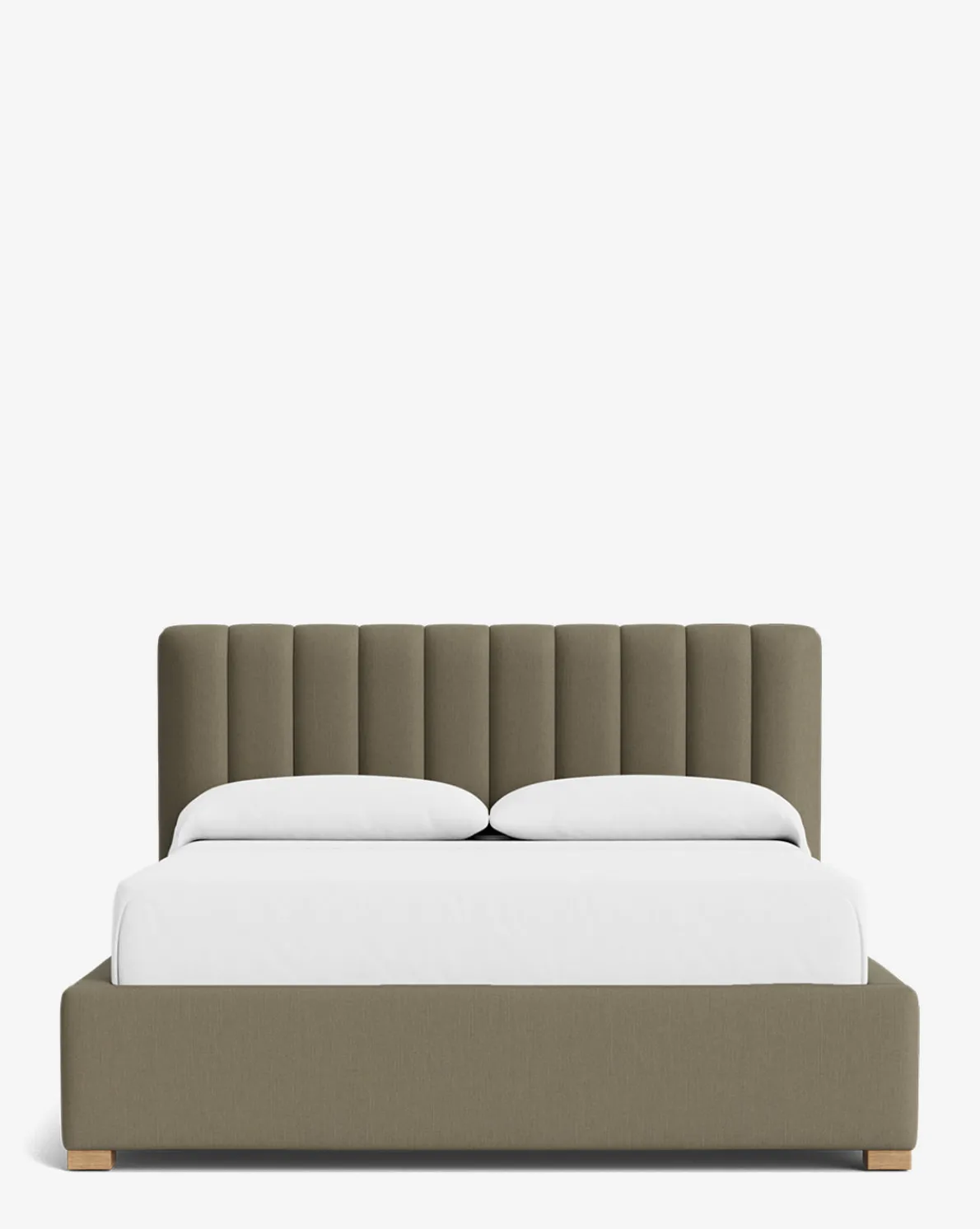 Fully upholstered on a bench-made alder wood frame, the Hoffman Bed with 52″ Headboard is customizable in a variety of high-quality fabrics, each hand-selected by our team for their beauty and durability. With distinct channels that flow through the headboard and subtle wood block feet, the bed brings a refined touch to classic bed designs.