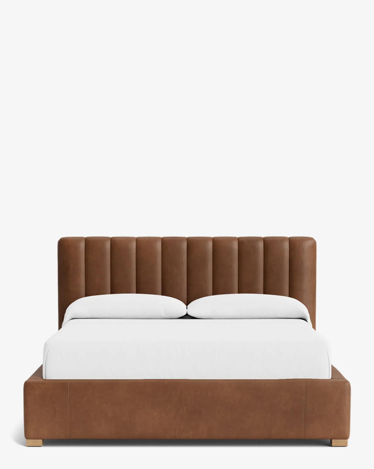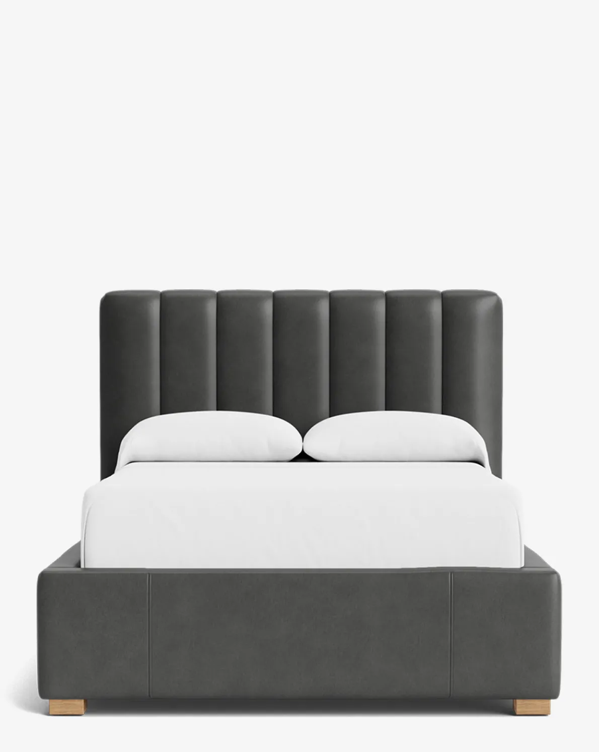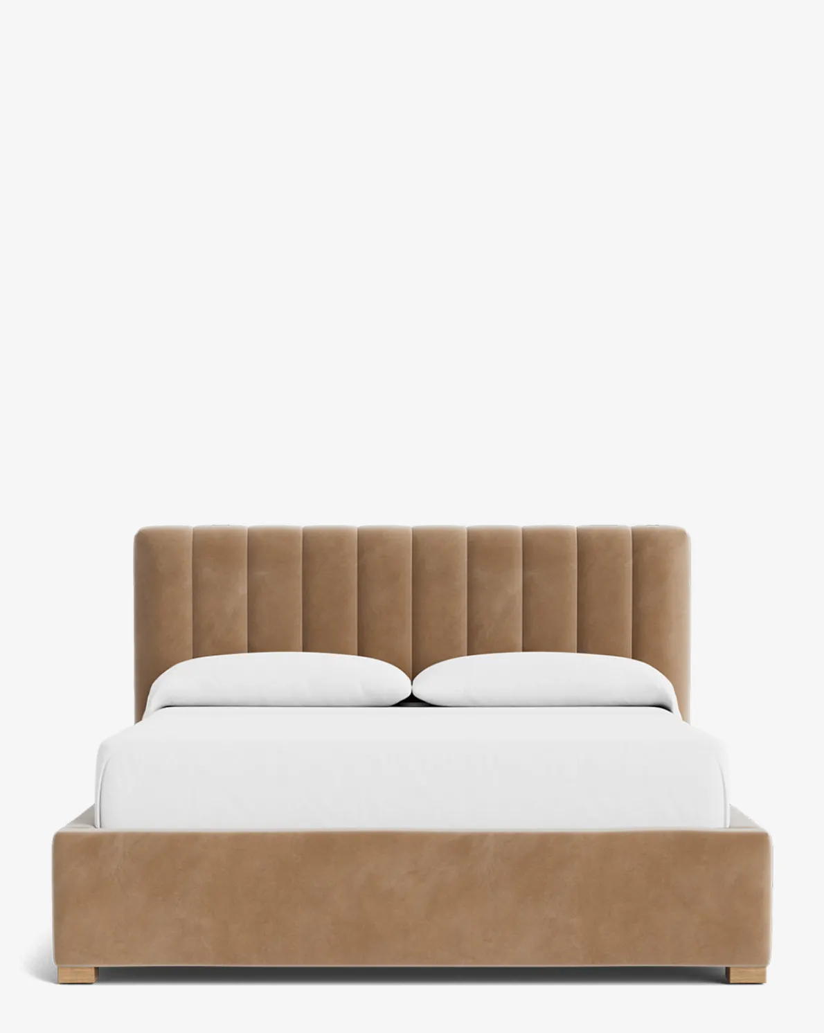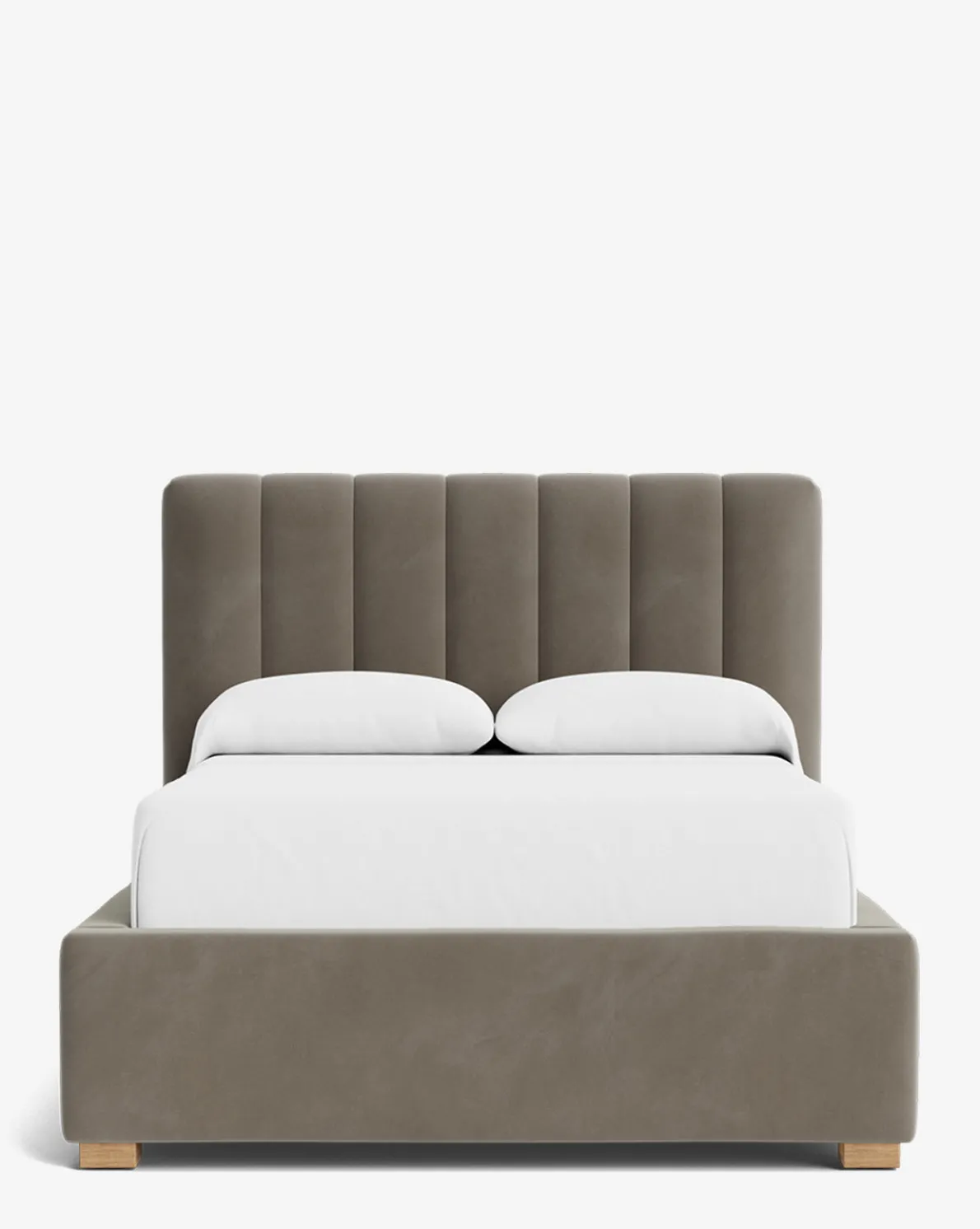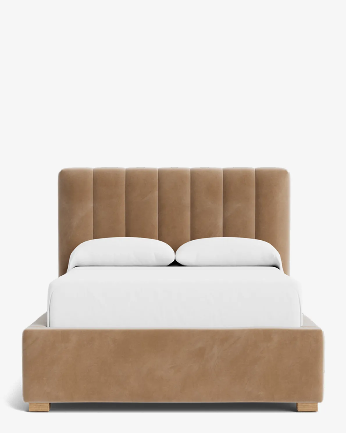 Fully upholstered on a bench-made alder wood frame, the Hoffman Bed with 52″ Headboard is customizable in a variety of high-quality fabrics, each hand-selected by our team for their beauty and durability. With distinct channels that flow through the headboard and subtle wood block feet, the bed brings a refined touch to classic bed designs.