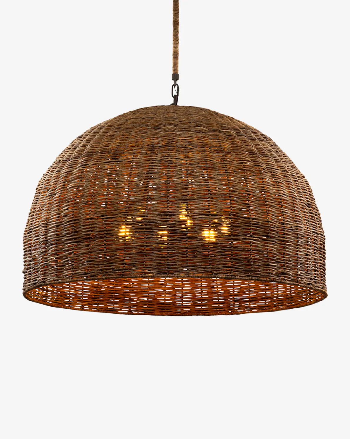 Crafted from intricately woven vine around a bronze-finished metal structure, the Huxley Chandelier brings texture and movement to your space. Its seamless mix of materials adds a feeling of refinement, while the open chandelier provides warm light wherever it is styled.
