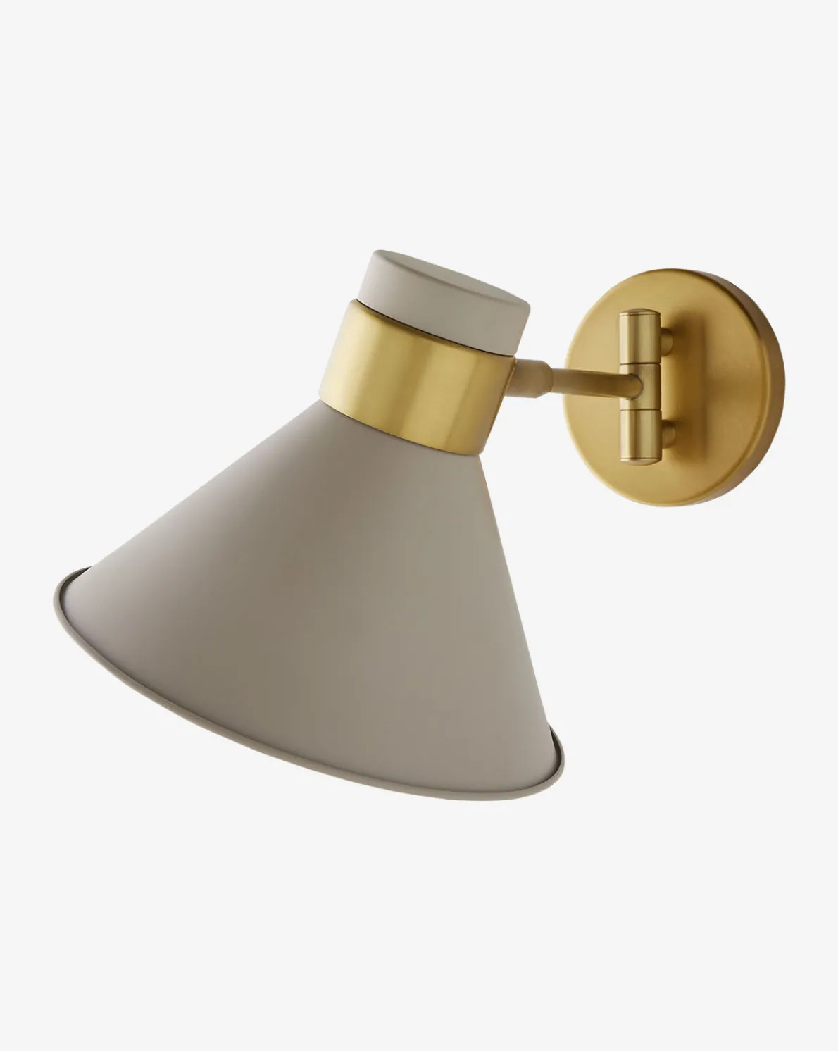 A classic schoolhouse-inspired shade, the Lane Sconce makes retro design modern. An antique brass steel frame upholds the shade, available ina taupe finish, and pivots to allow adjustable light. Expressive yet timeless, the Lane Sconce brings eccentricity to contemporary design.