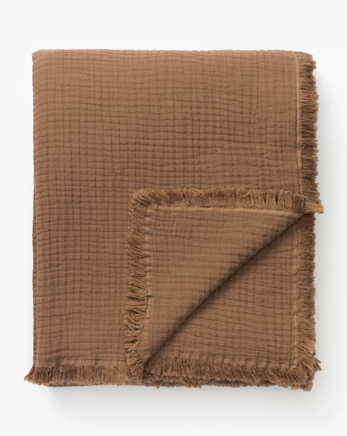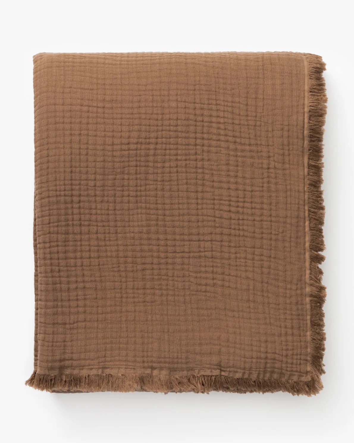 With a warm brown tone and subtle fringe, the Marinella Oversized Waffle Throw is cozy and versatile. The throw features a waffle weave texture, adding an interesting element to bedding layering or sofa styling. Designed specifically for comfort, the throw is made from 100% cotton.