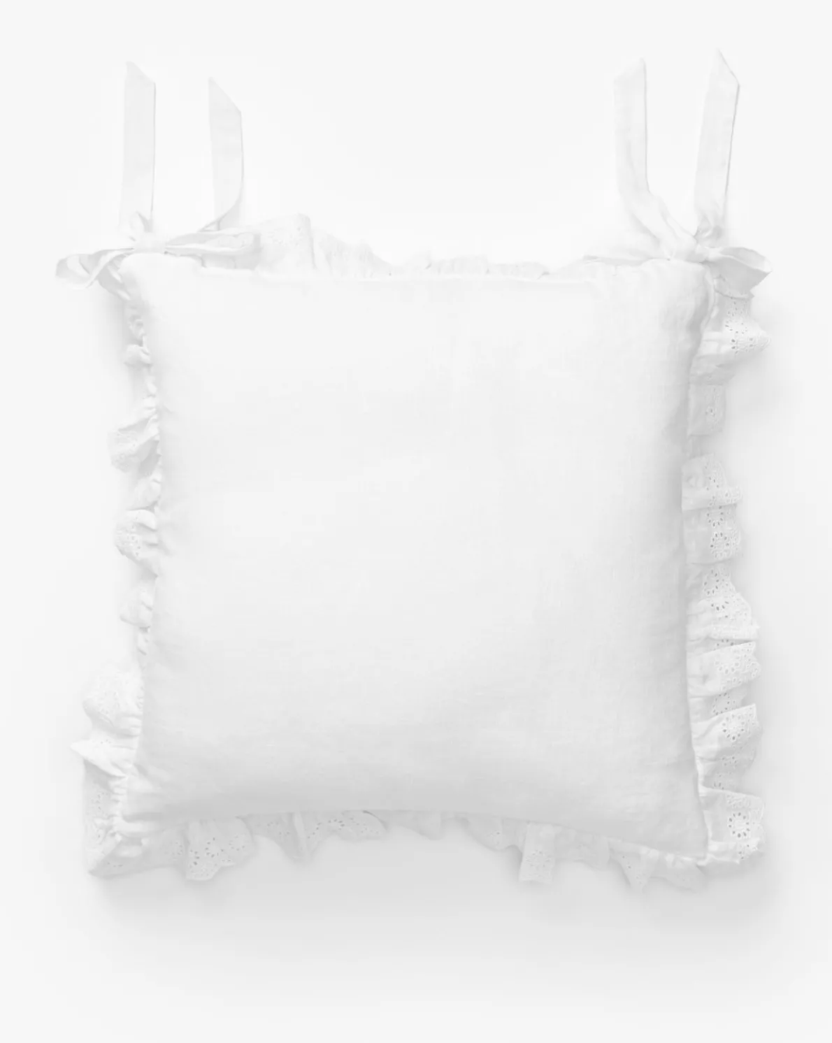 The Delilah Broderie Trim Seat Cushion is made from white linen with a delicate broderie border. Designed in collaboration with Loeffler Randall, this piece brings a considered aesthetic to your home with every detail.