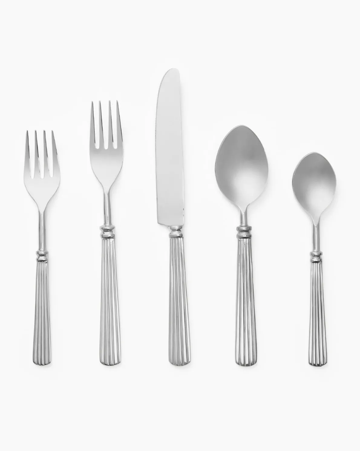 We designed the McNully Flatware set to bring subtle elements of texture to everyday place settings. Between its classic stainless steel construction and polished brass or silver finish to its subdued, textural handle, each piece of flatware has a heavy, weighted feel that makes each meal feel elevated. The set includes a teaspoon, dinner spoon, dinner fork, salad fork, and dinner knife.