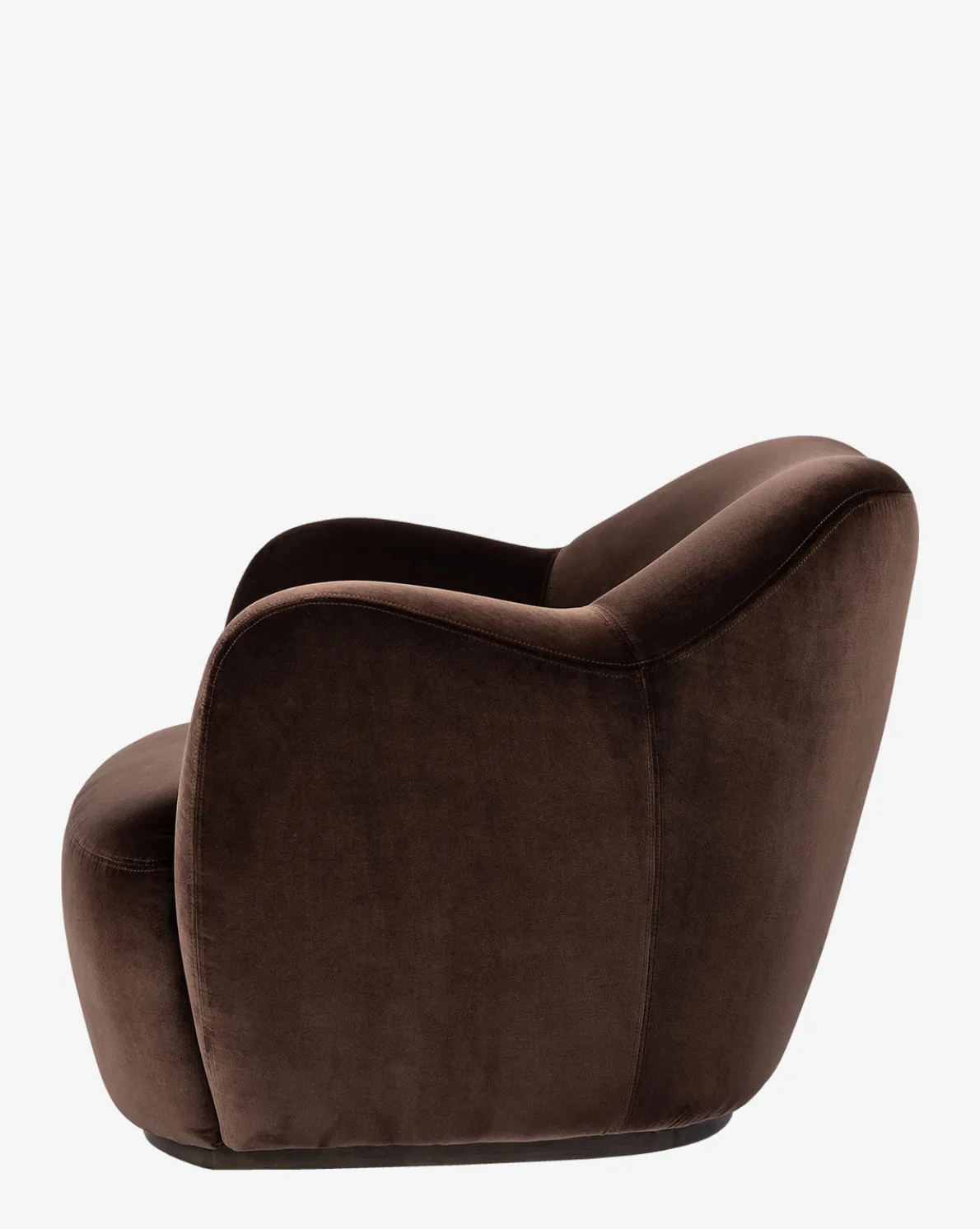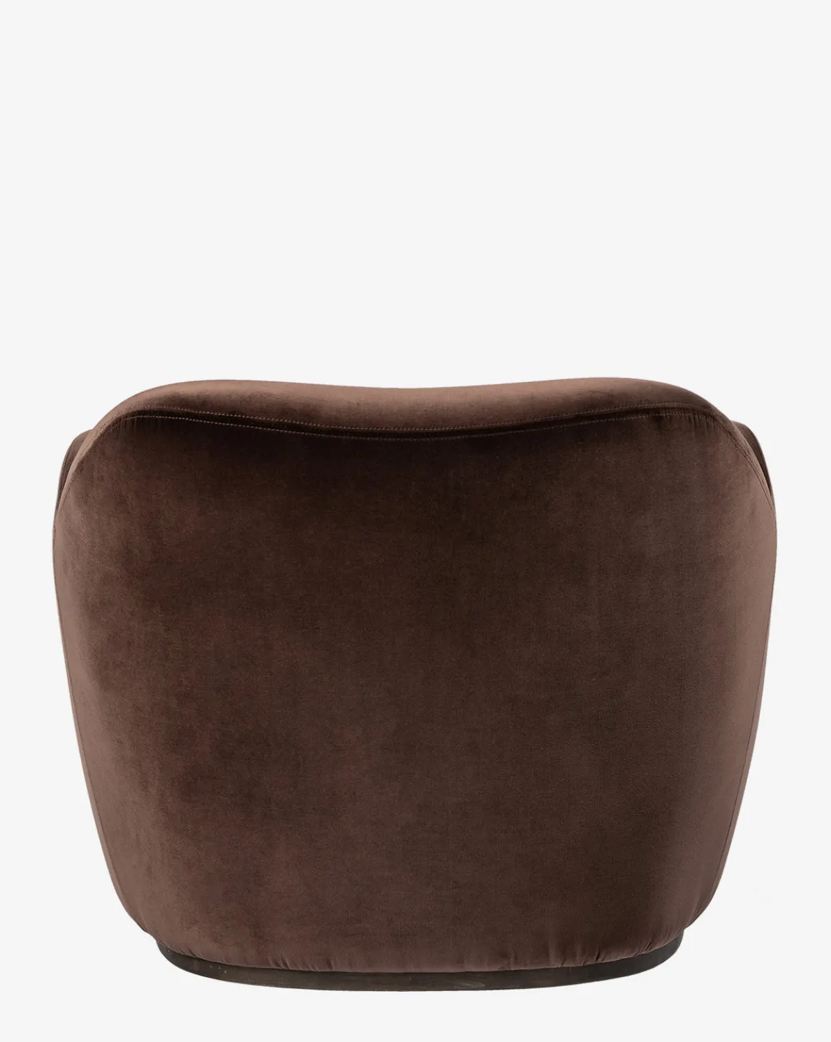 With a modern feel, the Moira Swivel Chair brings an inviting element to your living room or bedroom design. Its deep seat and back are upholstered in a cocoa fabric, adding warmth to this contemporary, swiveling design.