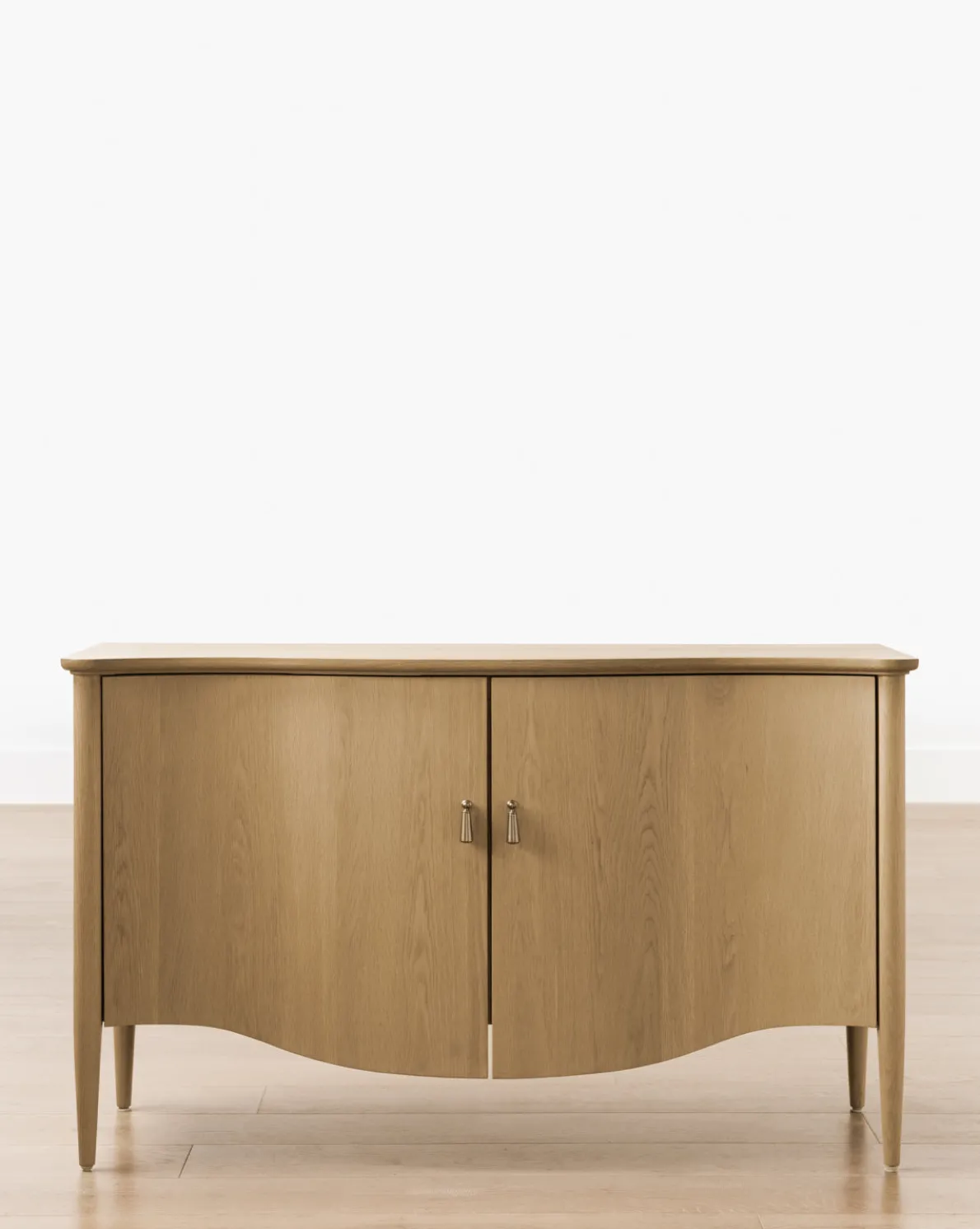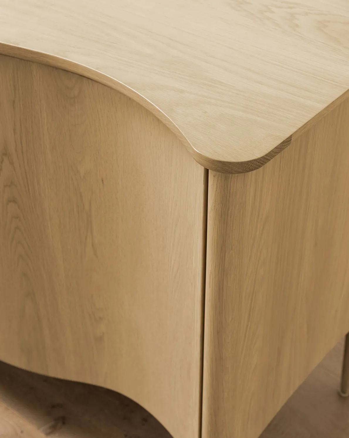Made from white oak with details that speak to its craftsmanship, our Moorland Console is both stately and intriguing. The curved form of this wood console table brings a unique and modern feel to your space, adding subtle detail with its natural material.