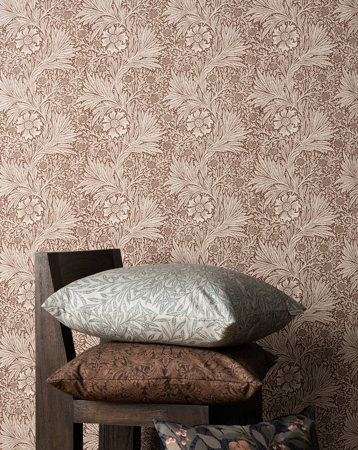 The Marigold Umber Wallpaper is a signature 1875 Morris & Co. pattern reimagined in a new color palette, created exclusively for McGee & Co. in collaboration with Shea McGee. The striking motif is full of movement, featuring rich hues that can be effortlessly incorporated into your home.