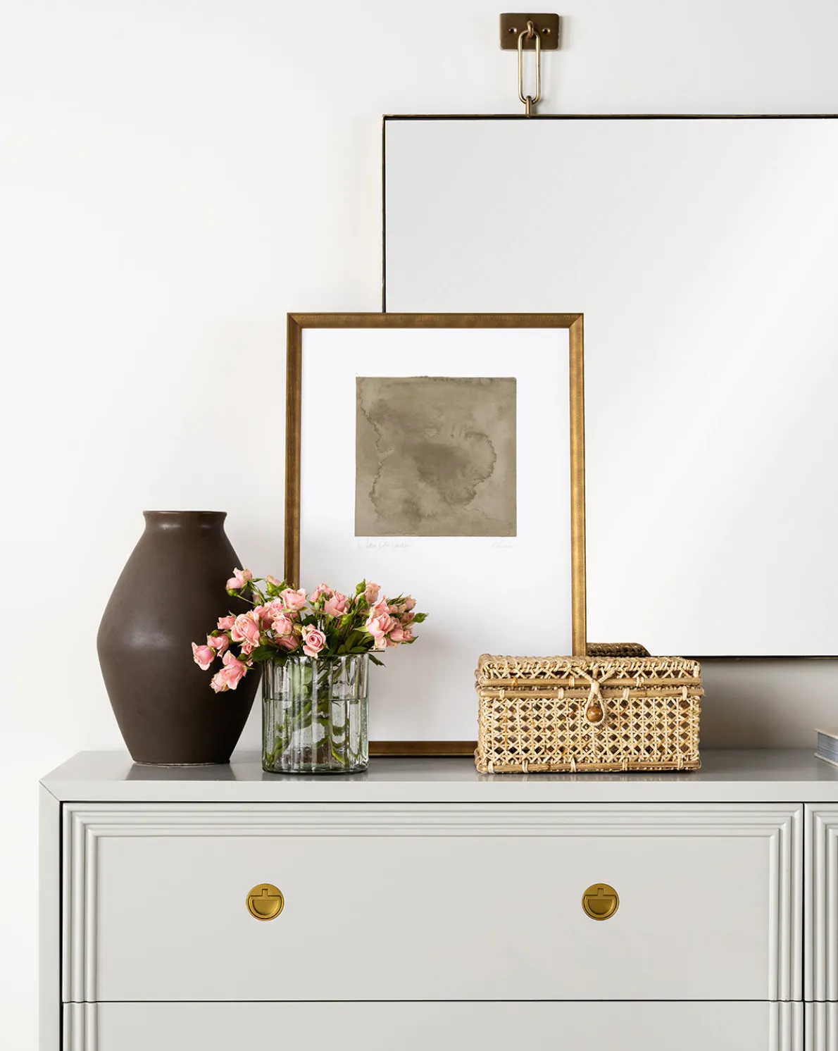 Abstract and textural, Olive Study beautifully plays with hues of a rich olive green. The print on matte paper draws attention to the paintbrush texture within the richly colored square, adding depth to your decor whether styled alone or as a collection. With a scaled texture gold finish on the wood frame, this artwork boasts gallery quality through its elevated materials.