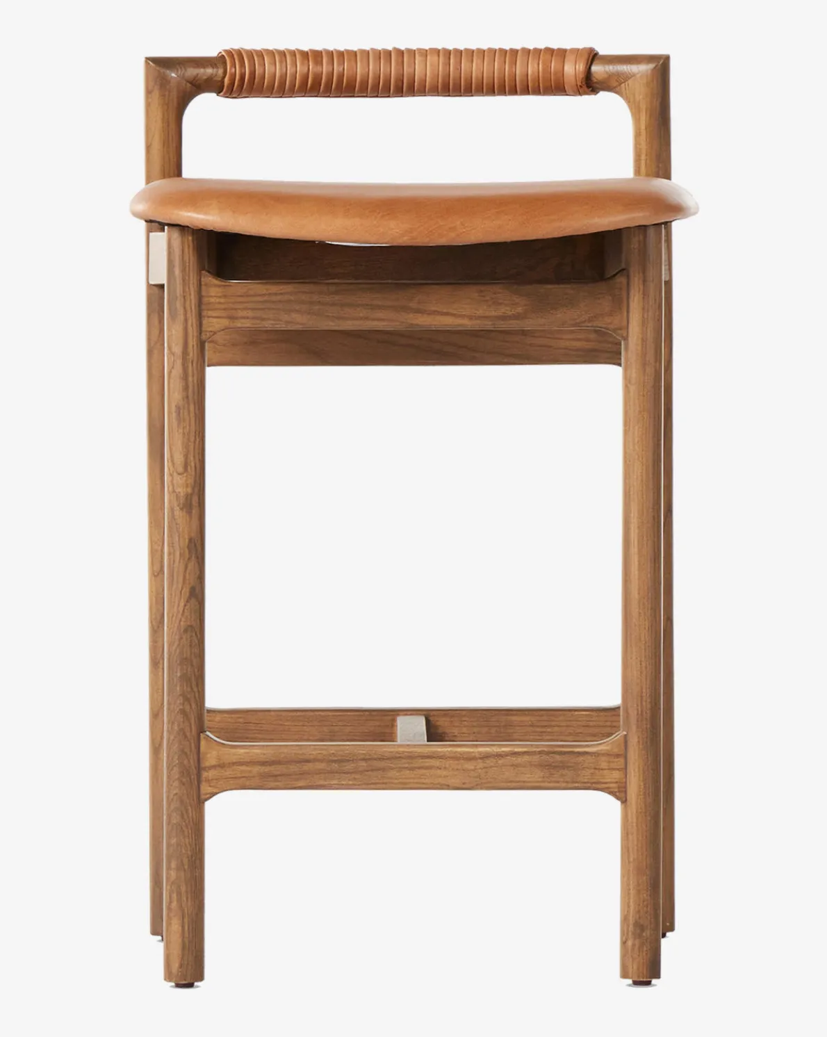 With an elegant mix of materials, the Patrin Stool reimagines the classics from a modern perspective. With an ash wood frame featuring top grain leather details, the performance upholstered seat adds a welcoming feel to your kitchen styling.