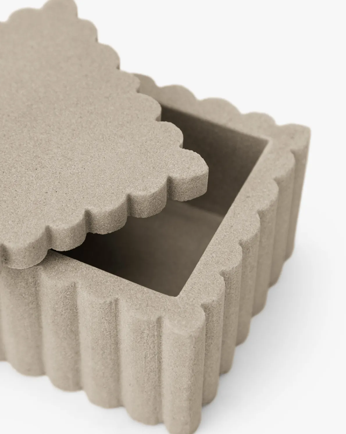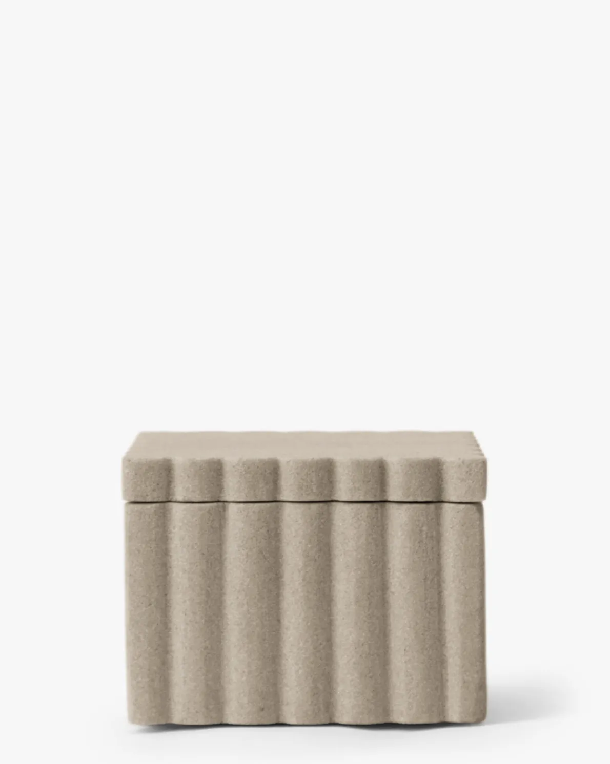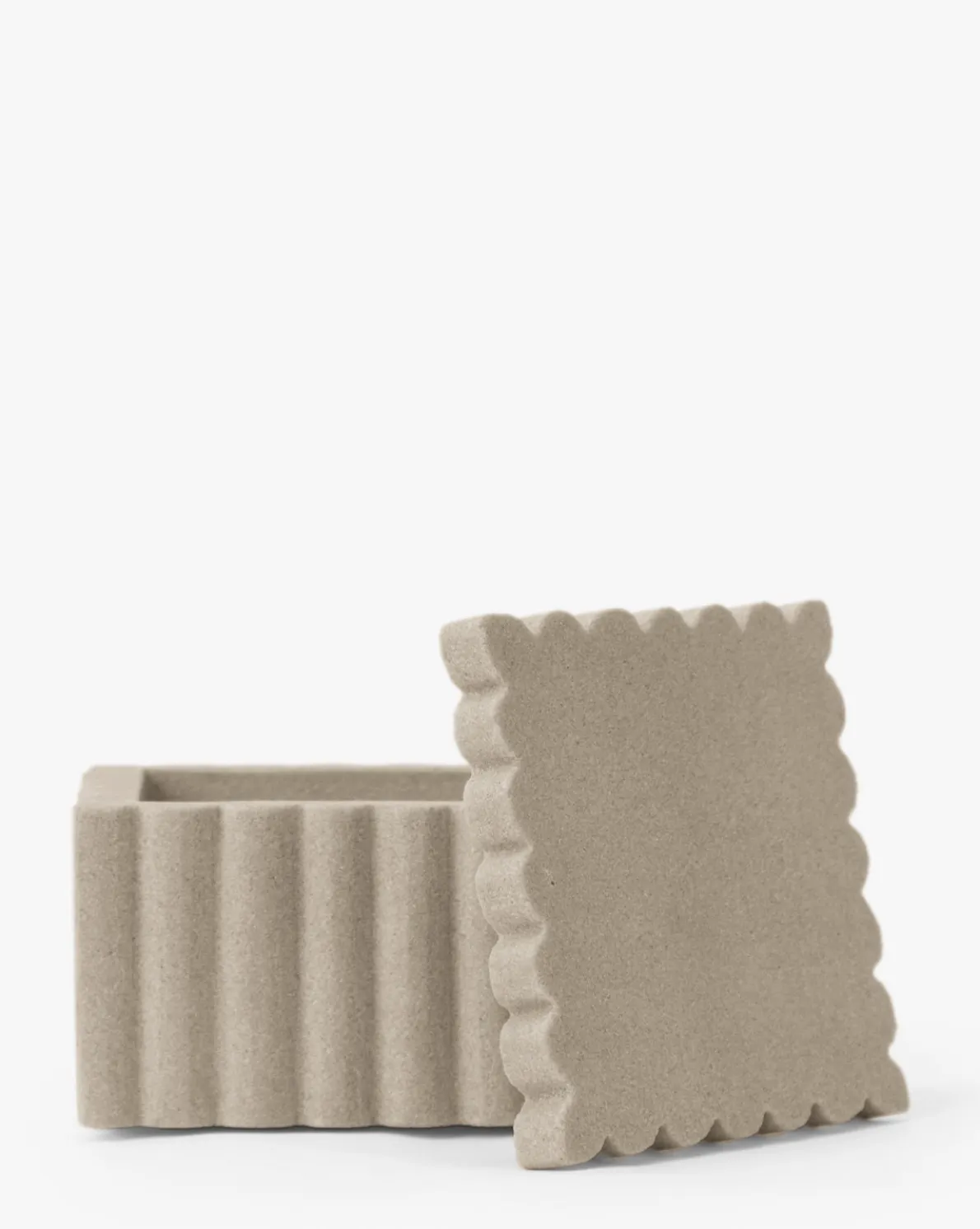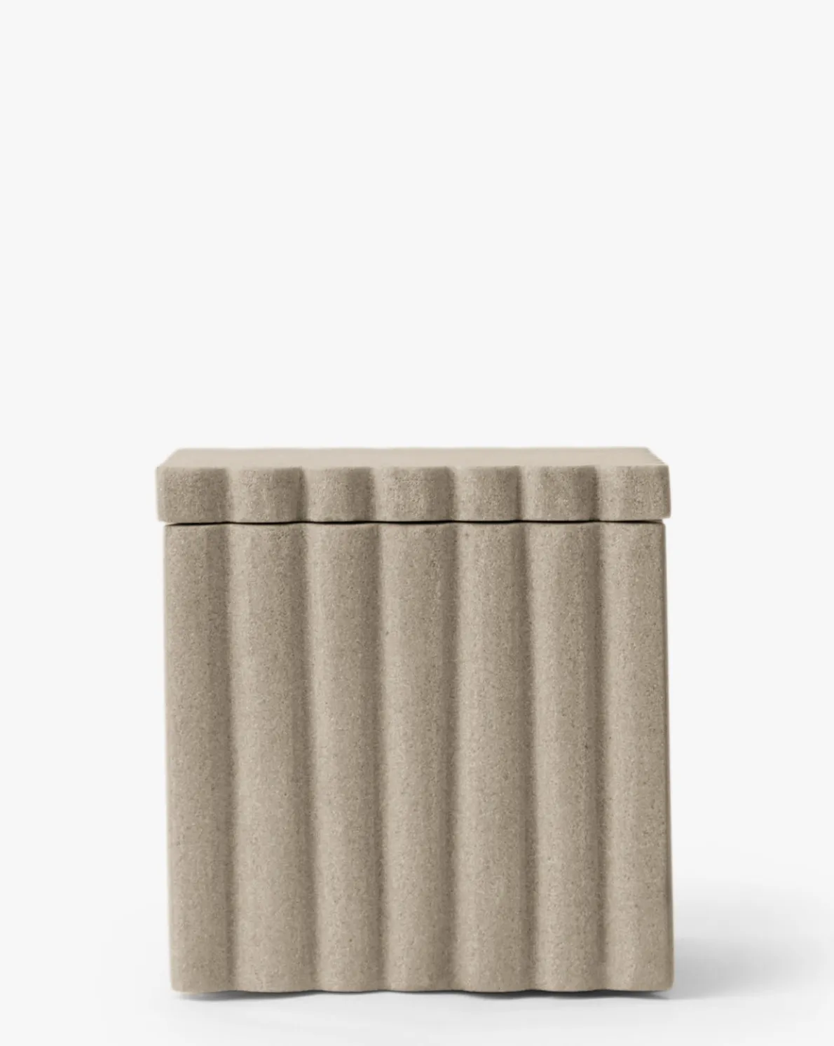 Playful yet weighty, the Prentiss Canister is made from off-white mint sandstone. The ribbed sides and squared shape bring dimension and practical storage to your bathroom countertops.