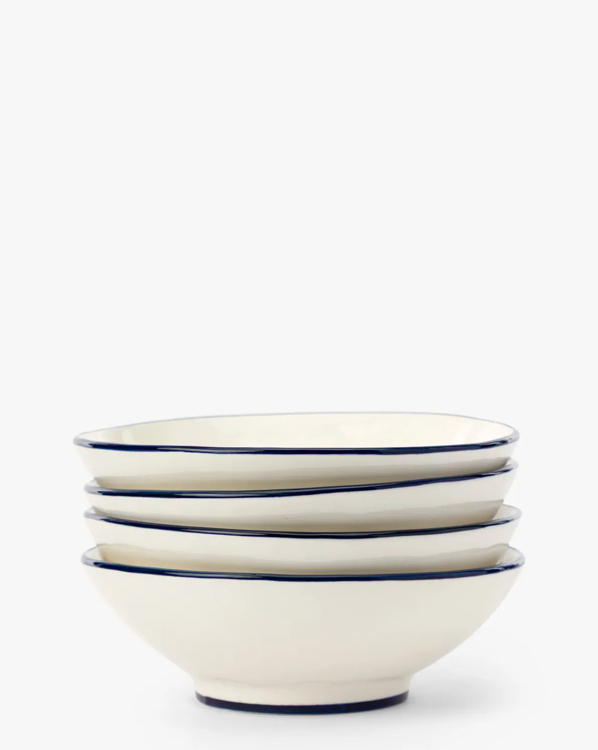 Featuring a creamy glaze and an elegant navy rim, our Pritchard Bowls blend classic charm with refined simplicity. Their versatile design makes them equally suited for casual breakfasts or elevated dinner parties, bringing a timeless, thoughtfully crafted touch to every meal.
