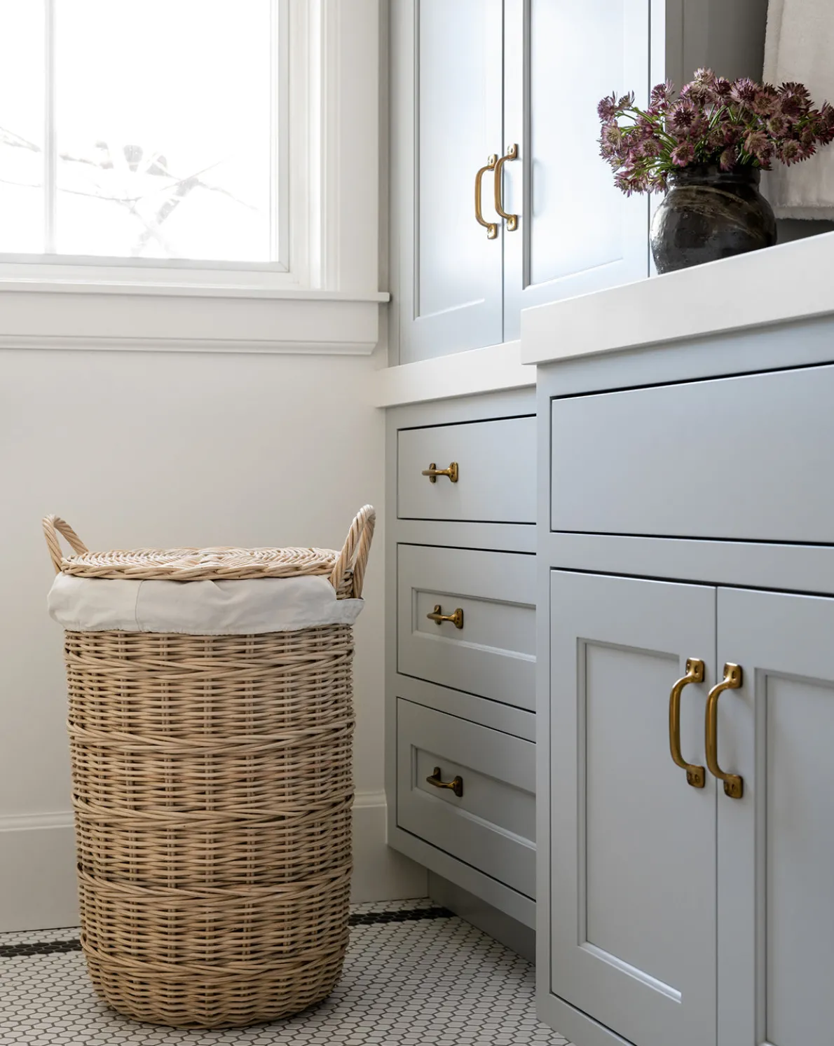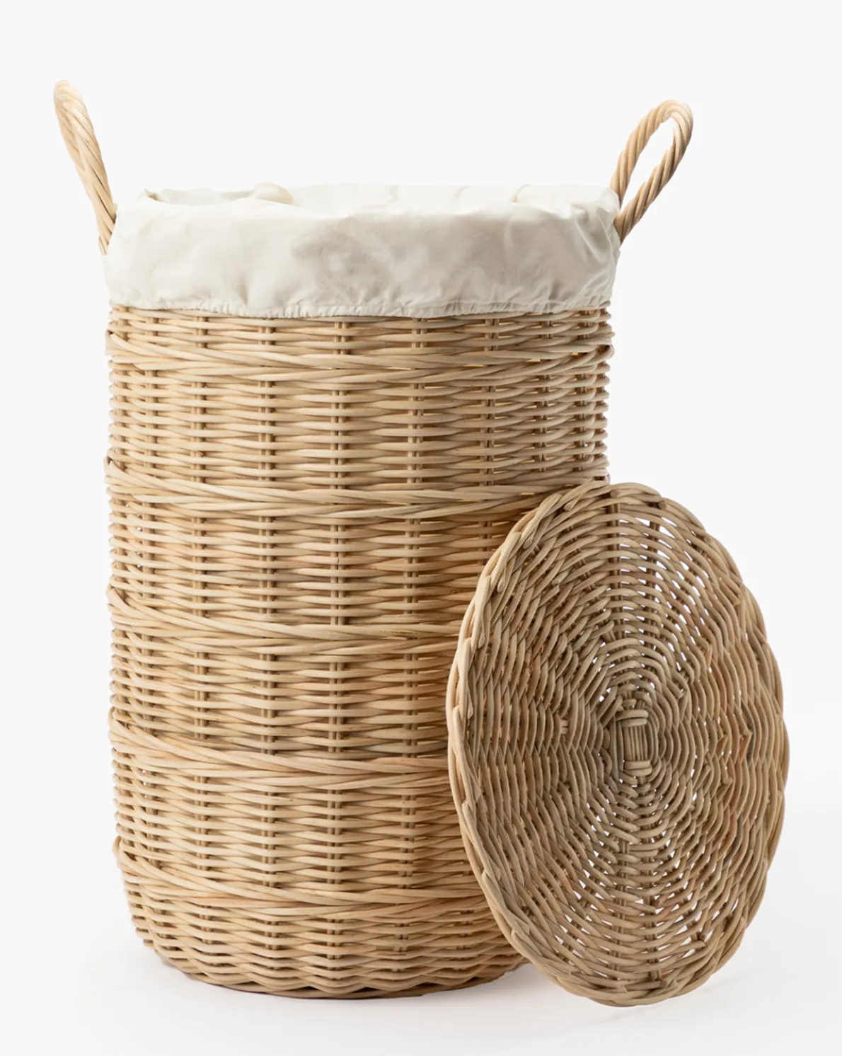 Bringing a textural element to the laundry room, the Rattan Lidded Laundry Bin is practical and aesthetic. Its lid and liner add a layer of functionality, while its design is understated and organic.