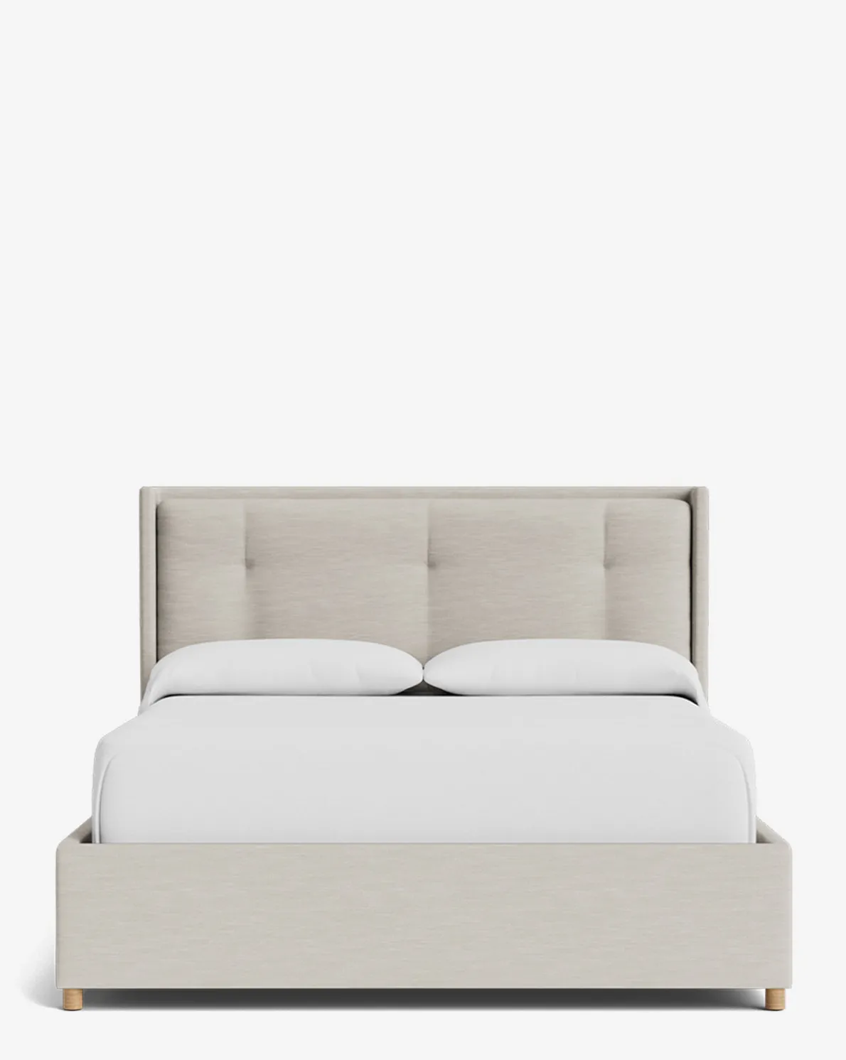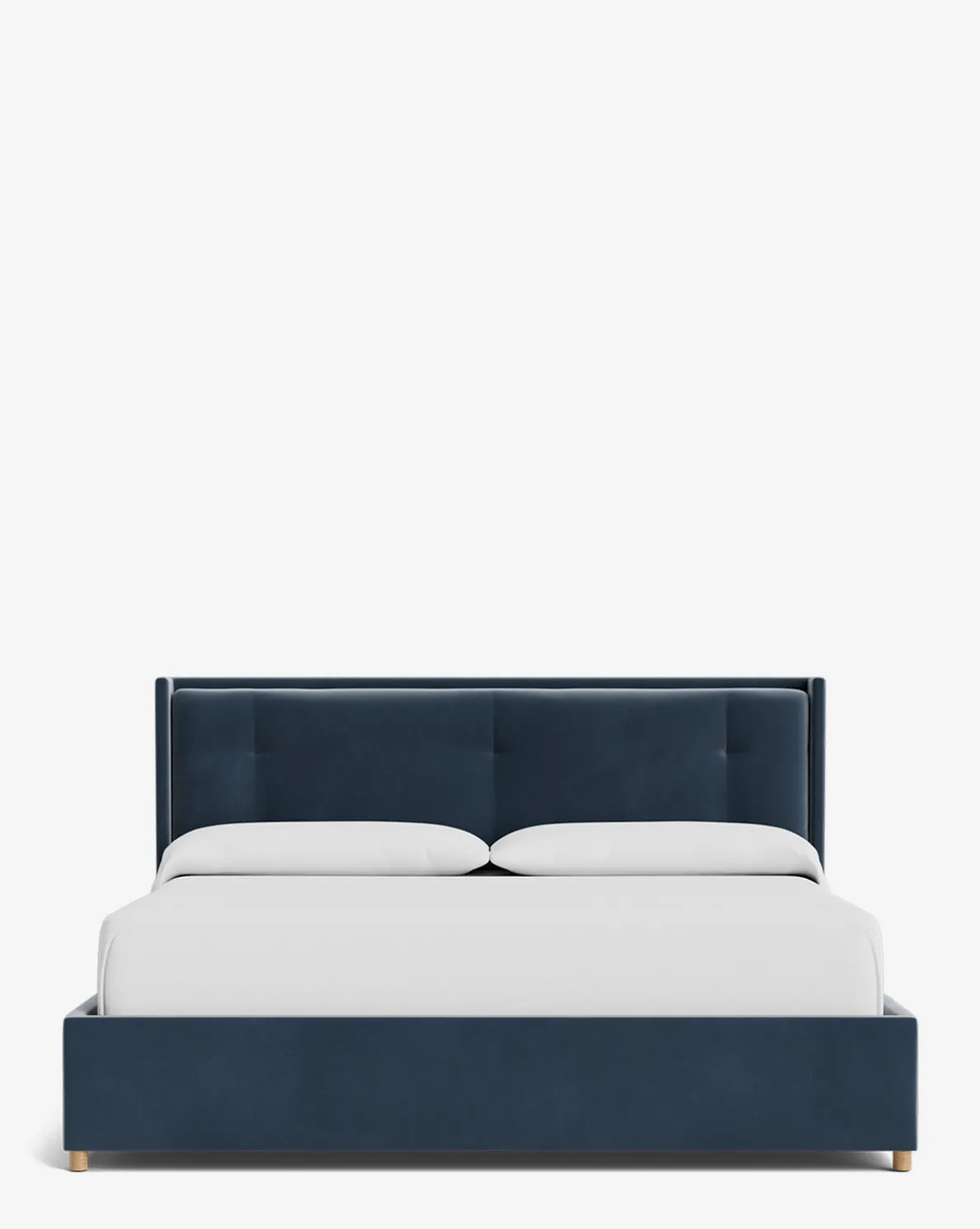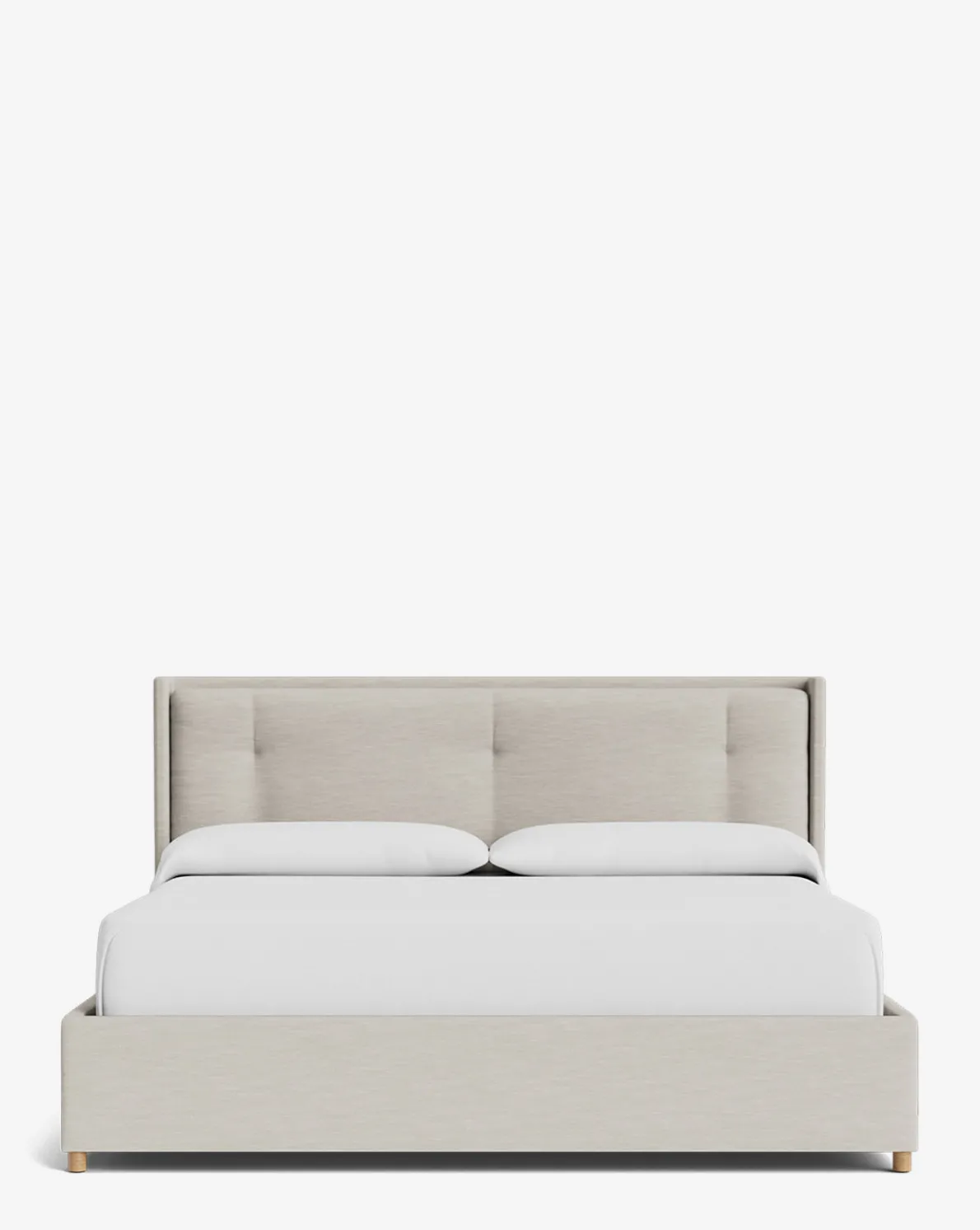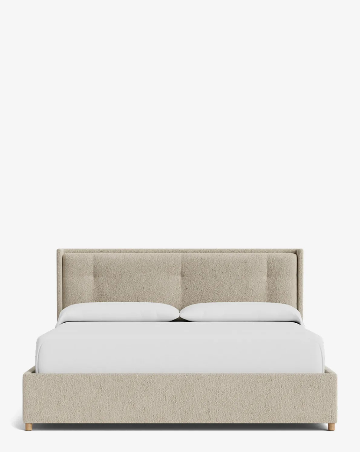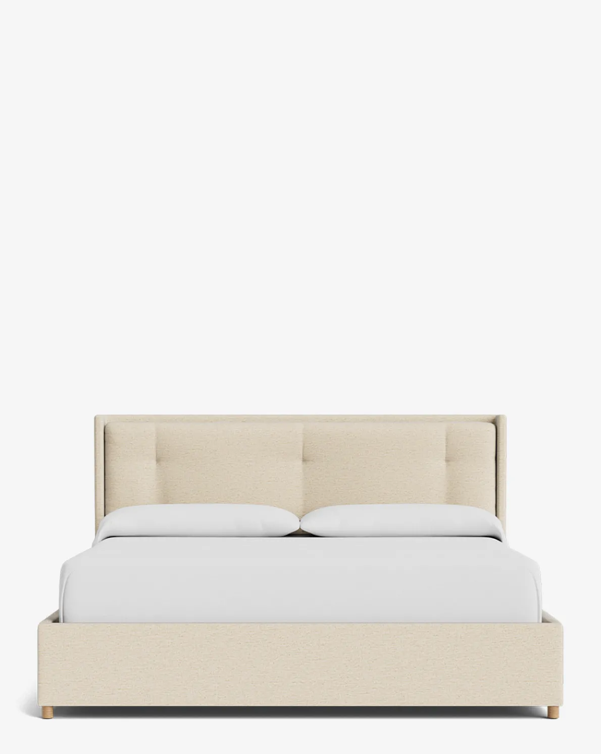 With a bench-made frame, the Ria Bed Low Headboard is customizable in a selection of our favorite high-quality fabrics. The tufted headboard brings both simplicity and elegance to bedroom designs in each of the colorways. With a low frame and subtle wood block feet, this upholstered bed elevates your bedroom style with its detail and refinement.