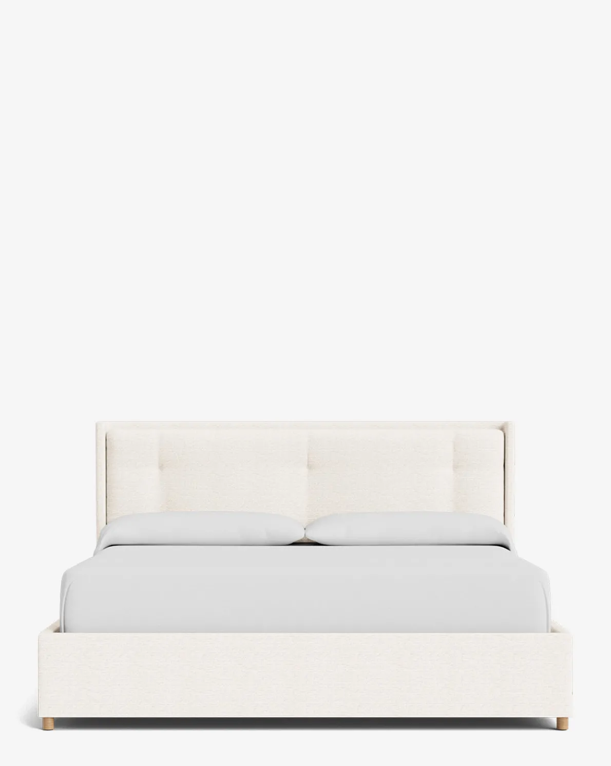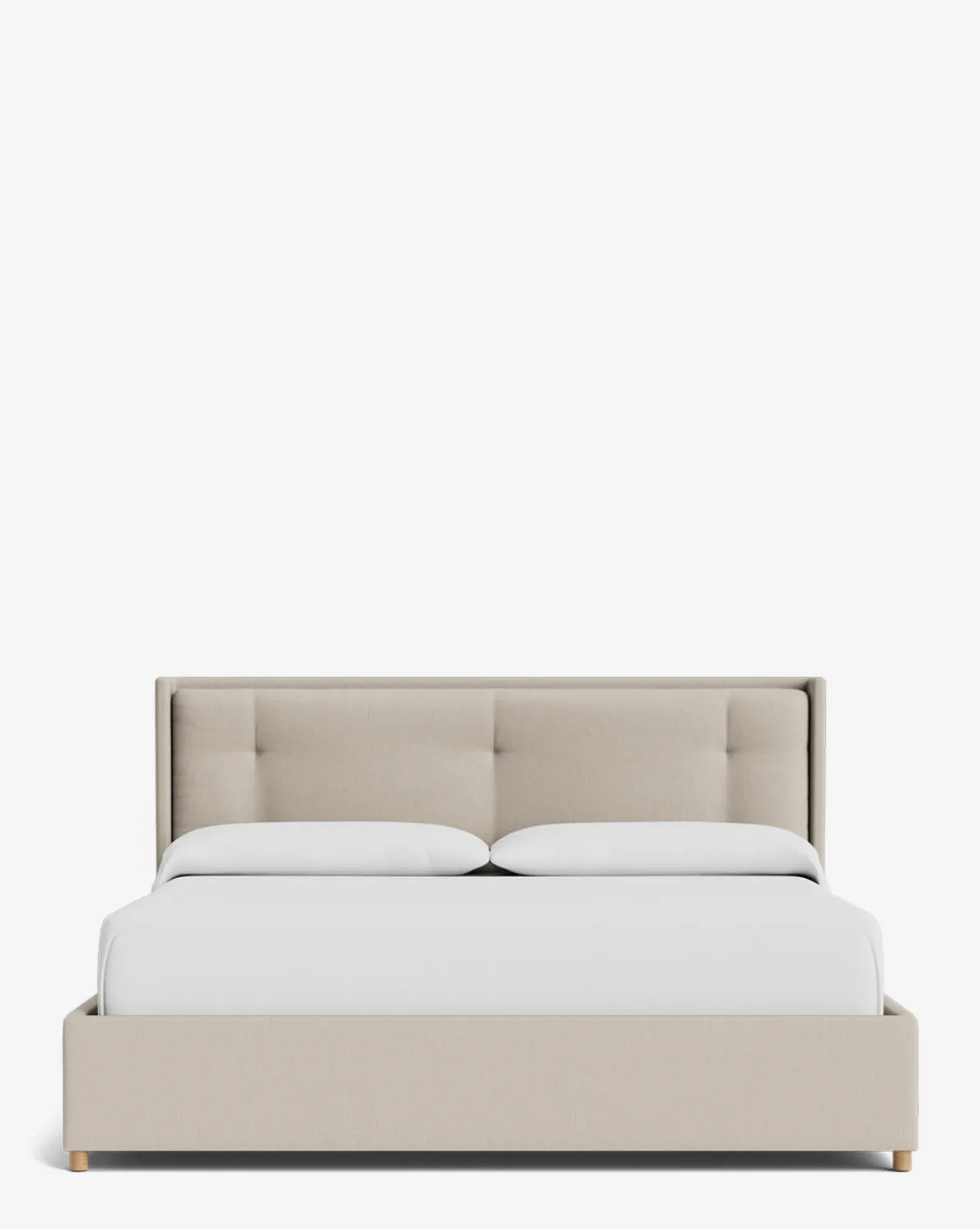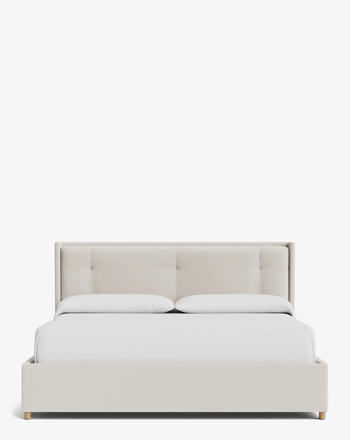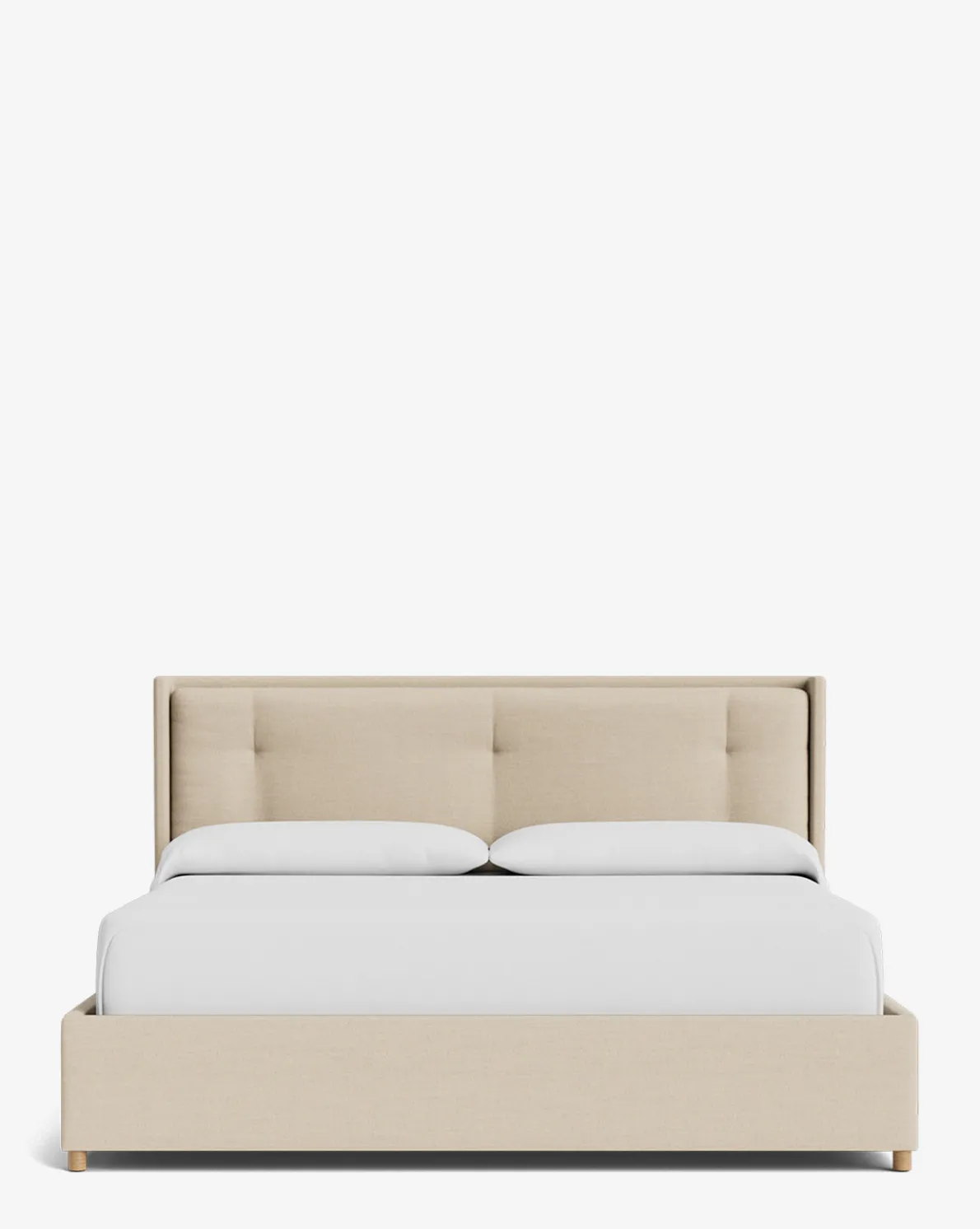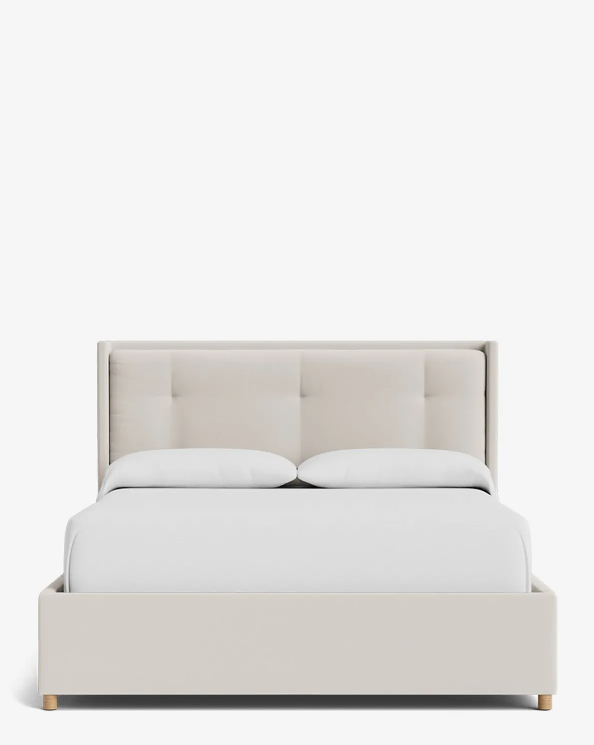 With a bench-made frame, the Ria Bed Low Headboard is customizable in a selection of our favorite high-quality fabrics. The tufted headboard brings both simplicity and elegance to bedroom designs in each of the colorways. With a low frame and subtle wood block feet, this upholstered bed elevates your bedroom style with its detail and refinement.