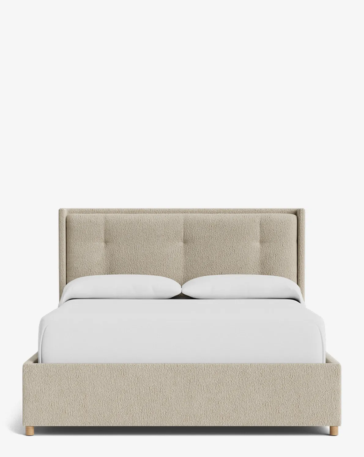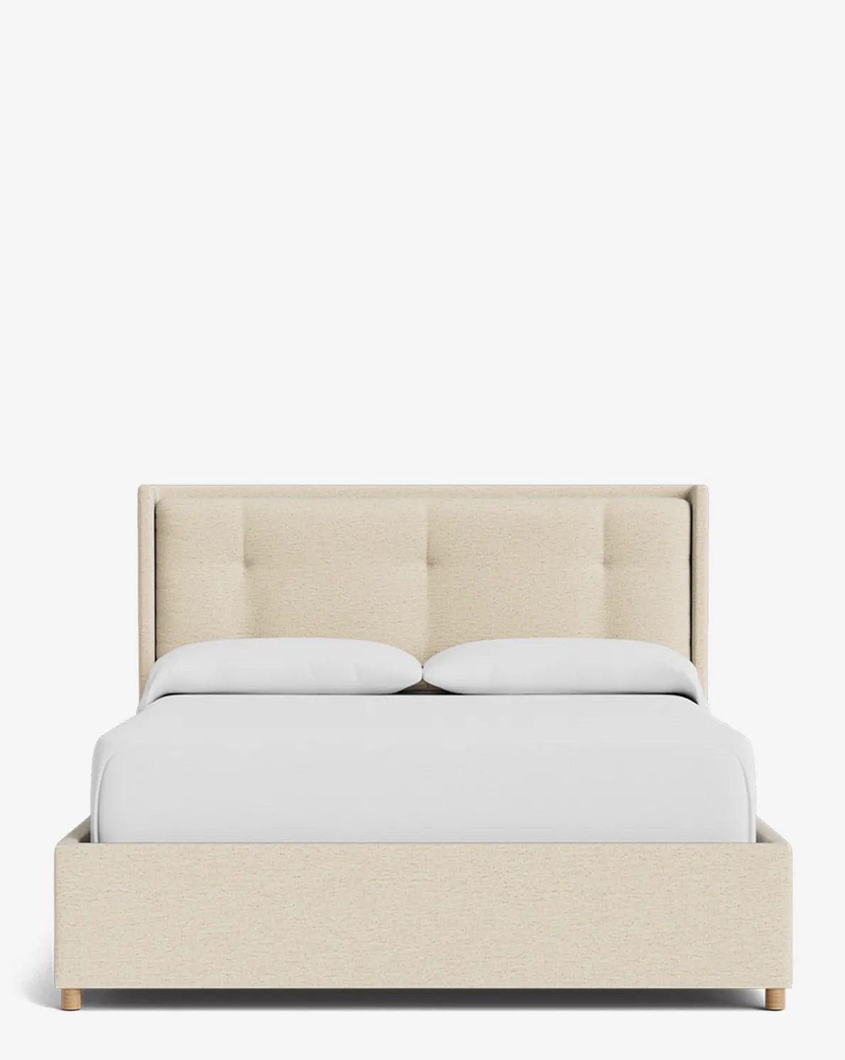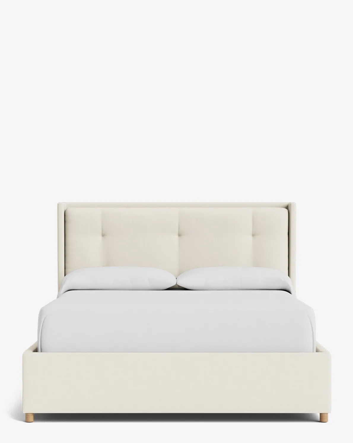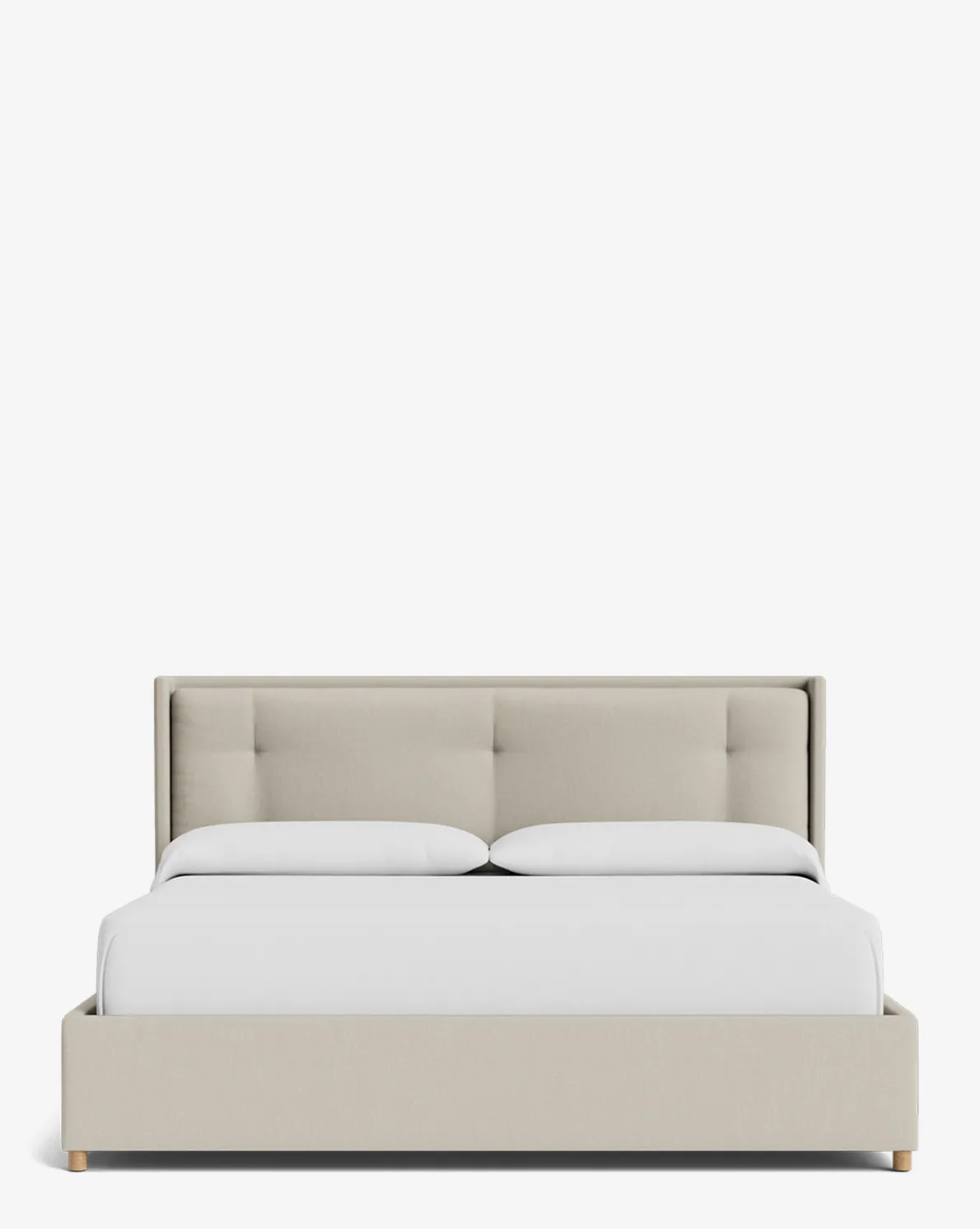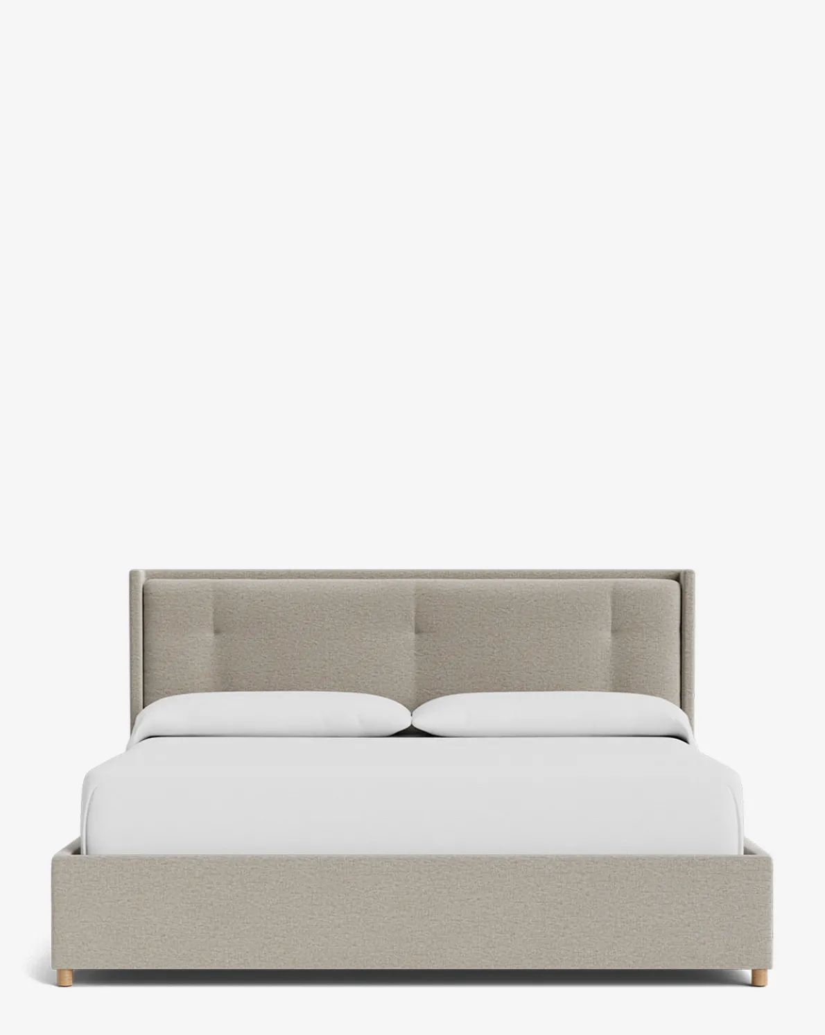 With a bench-made frame, the Ria Bed Low Headboard is customizable in a selection of our favorite high-quality fabrics. The tufted headboard brings both simplicity and elegance to bedroom designs in each of the colorways. With a low frame and subtle wood block feet, this upholstered bed elevates your bedroom style with its detail and refinement.