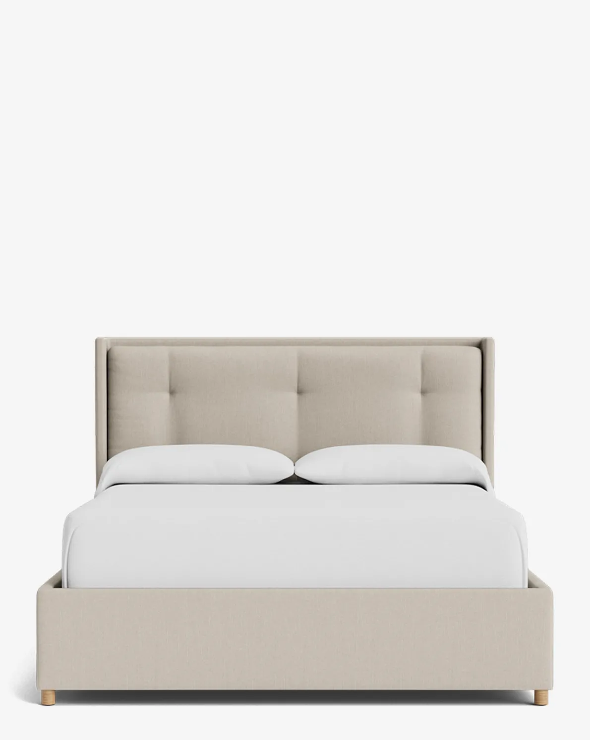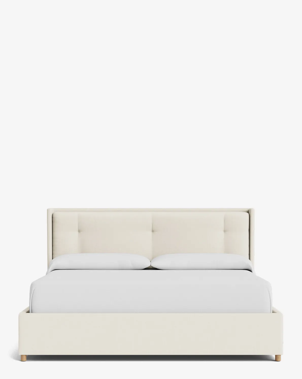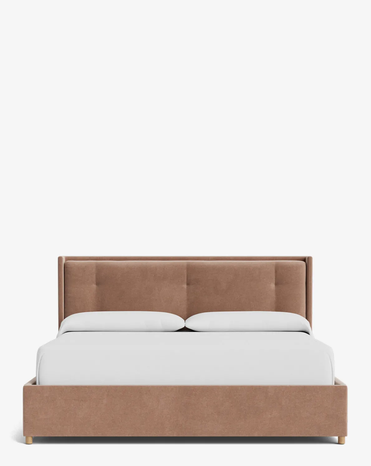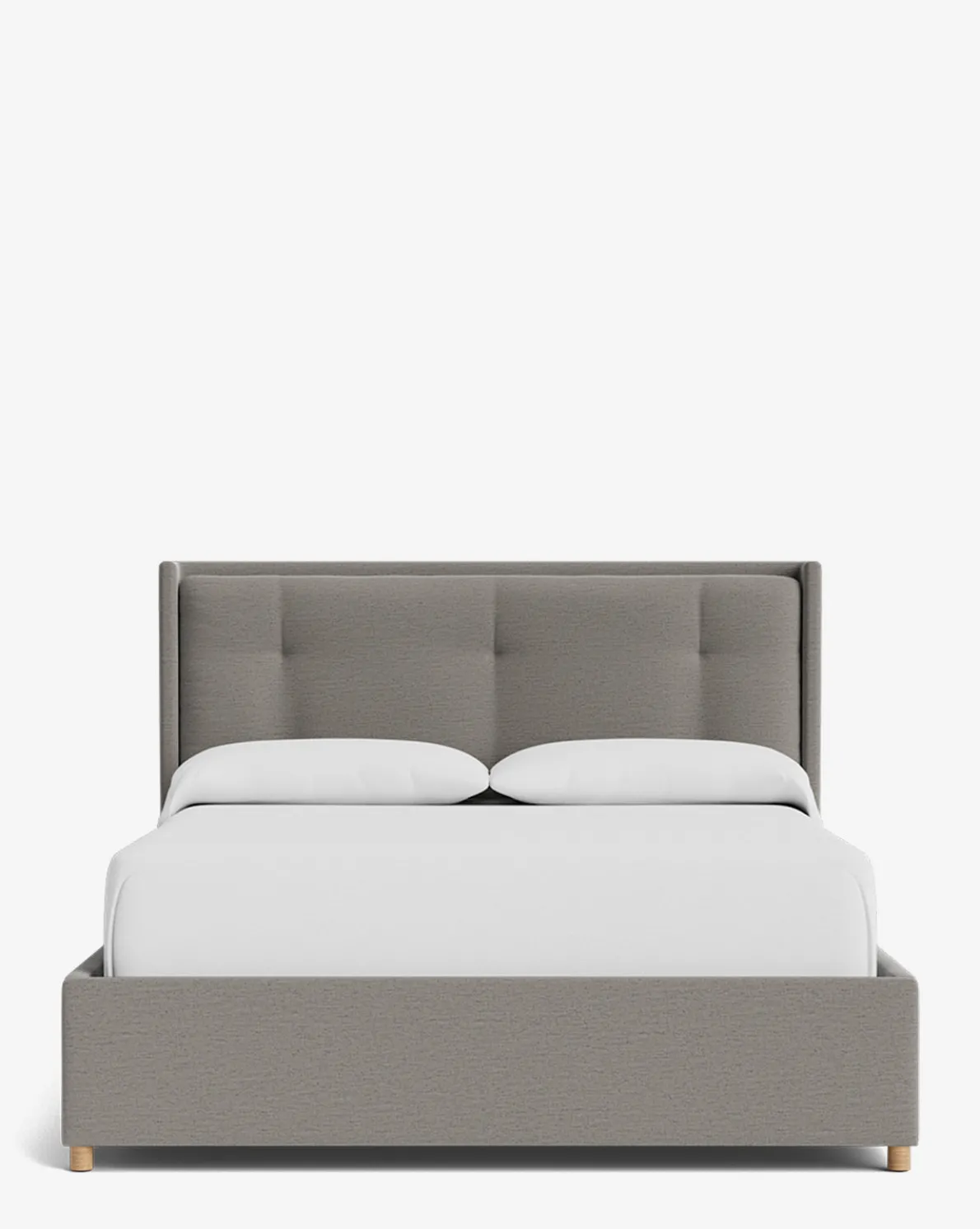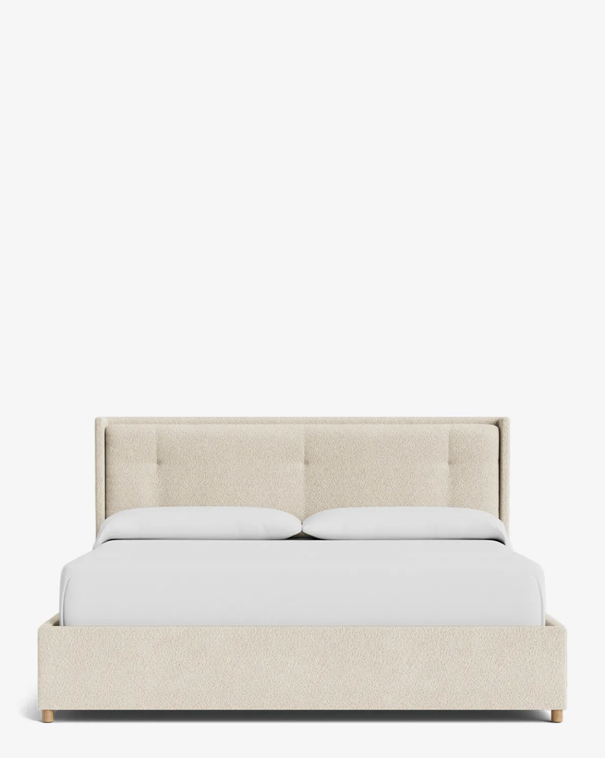 With a bench-made frame, the Ria Bed Low Headboard is customizable in a selection of our favorite high-quality fabrics. The tufted headboard brings both simplicity and elegance to bedroom designs in each of the colorways. With a low frame and subtle wood block feet, this upholstered bed elevates your bedroom style with its detail and refinement.