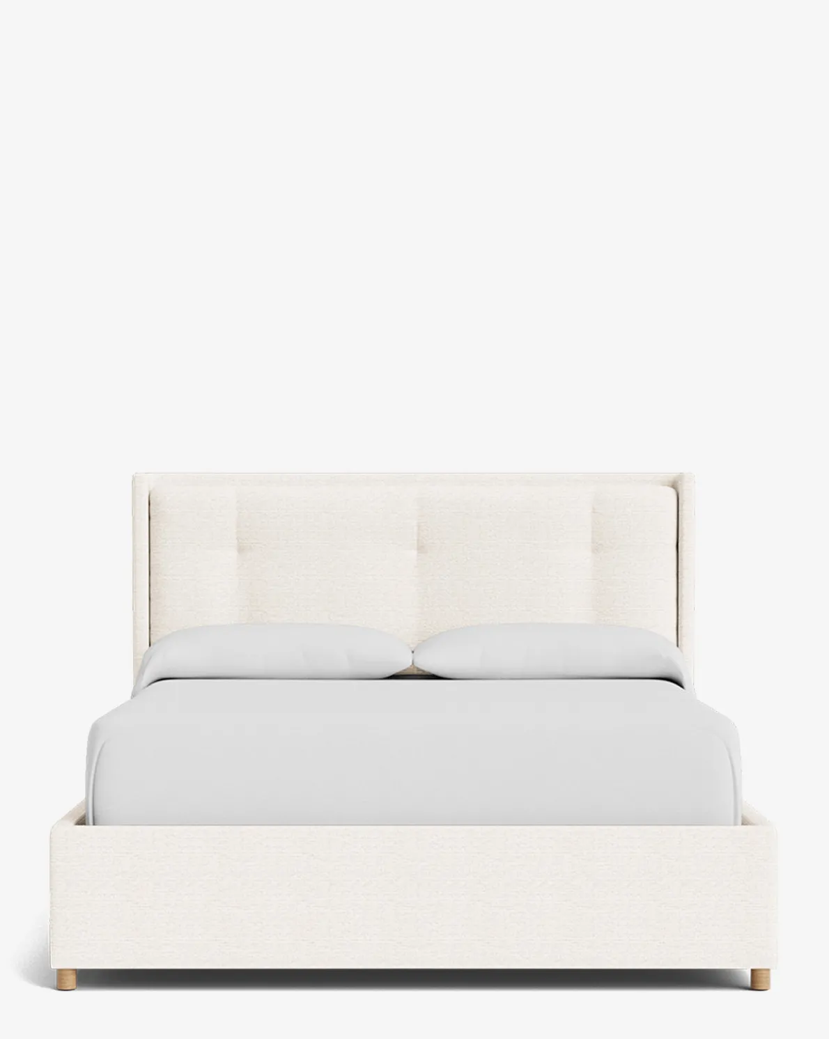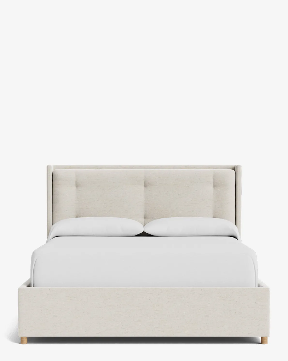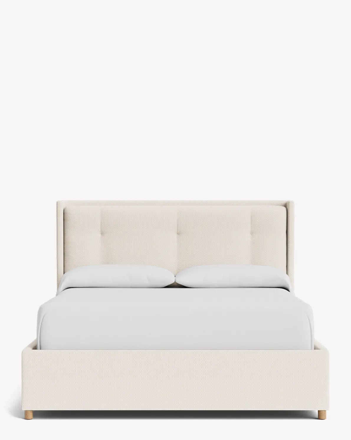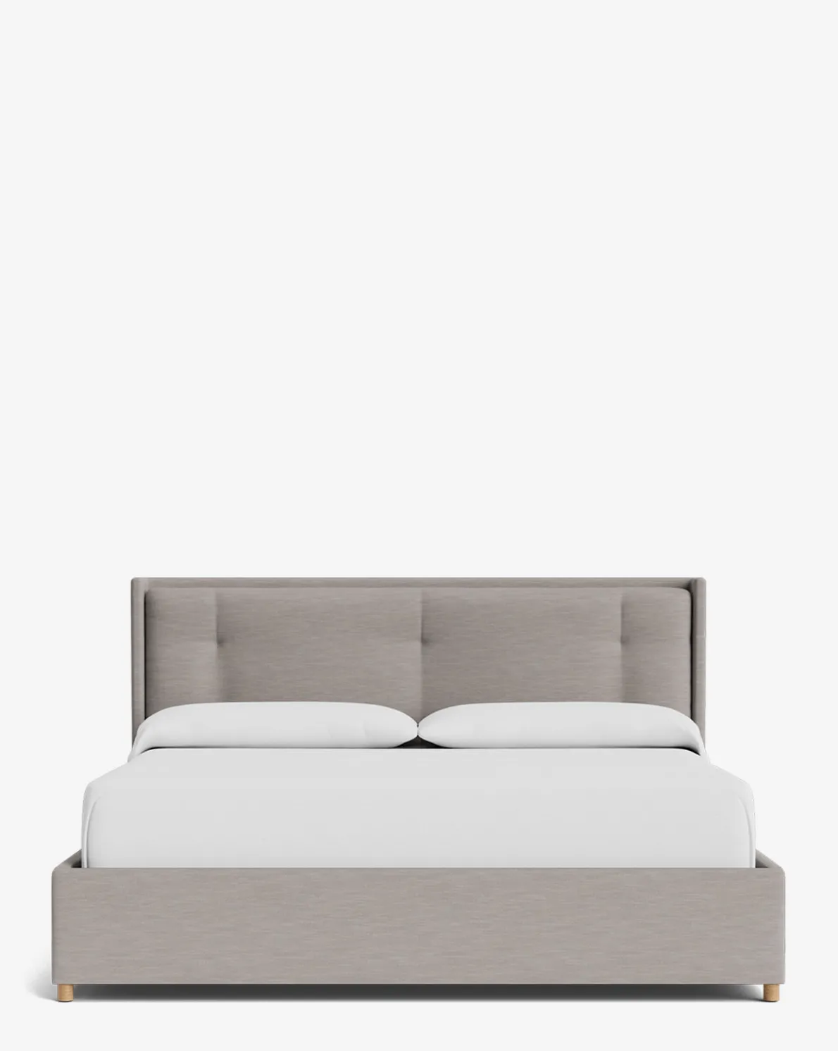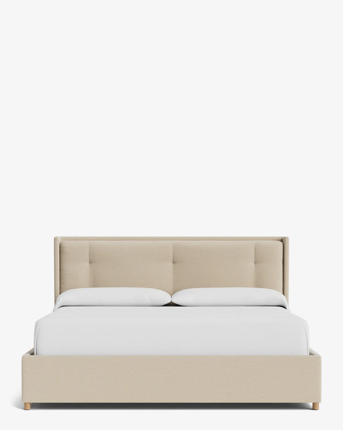 With a bench-made frame, the Ria Bed Low Headboard is customizable in a selection of our favorite high-quality fabrics. The tufted headboard brings both simplicity and elegance to bedroom designs in each of the colorways. With a low frame and subtle wood block feet, this upholstered bed elevates your bedroom style with its detail and refinement.