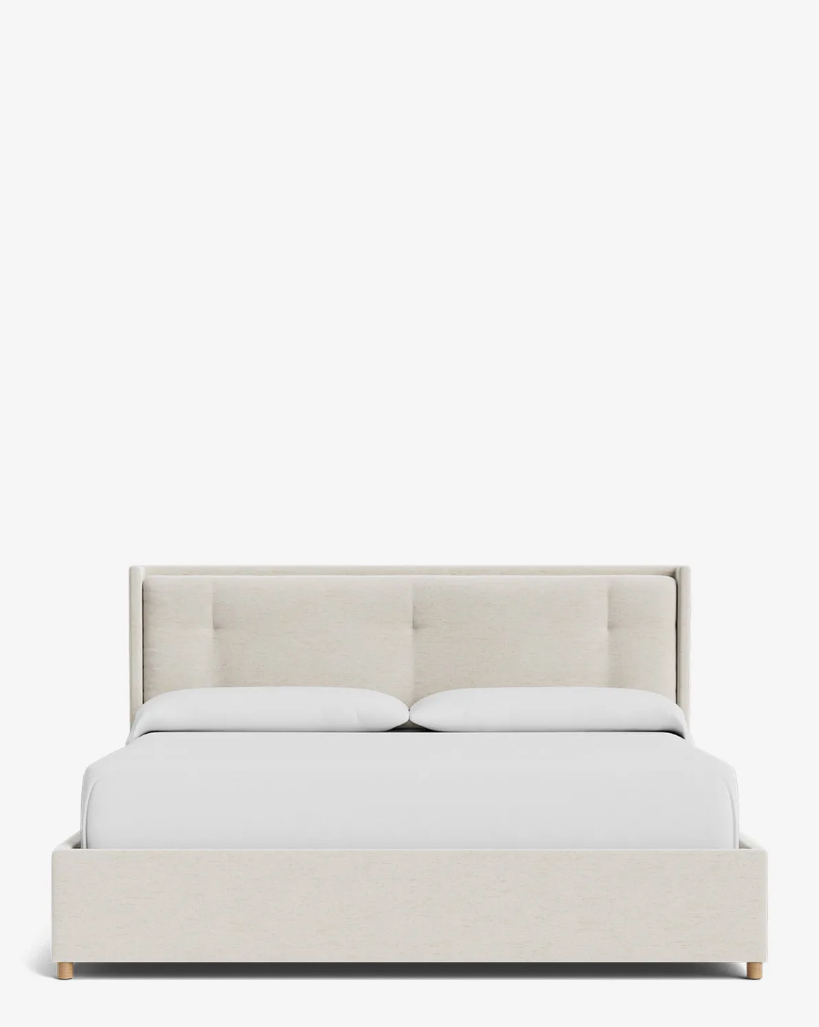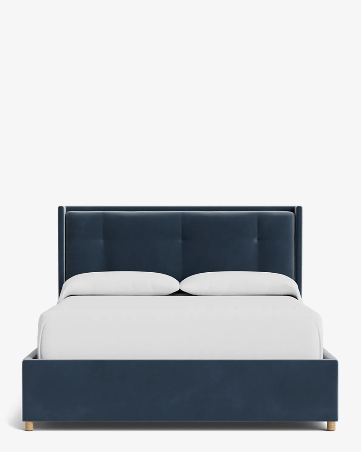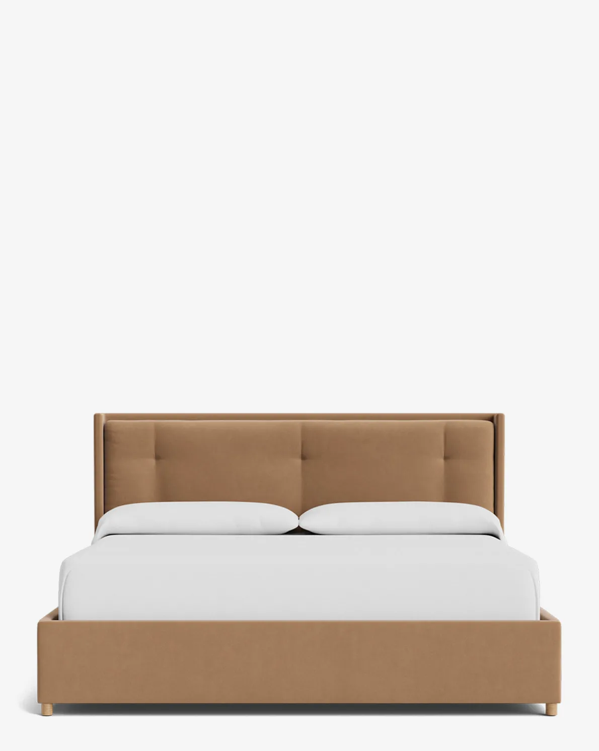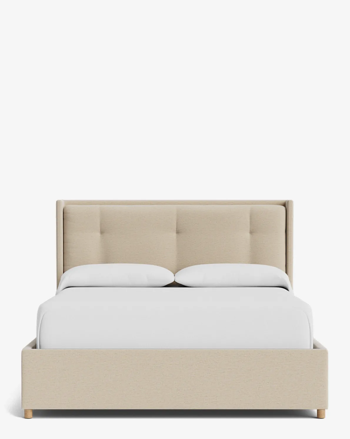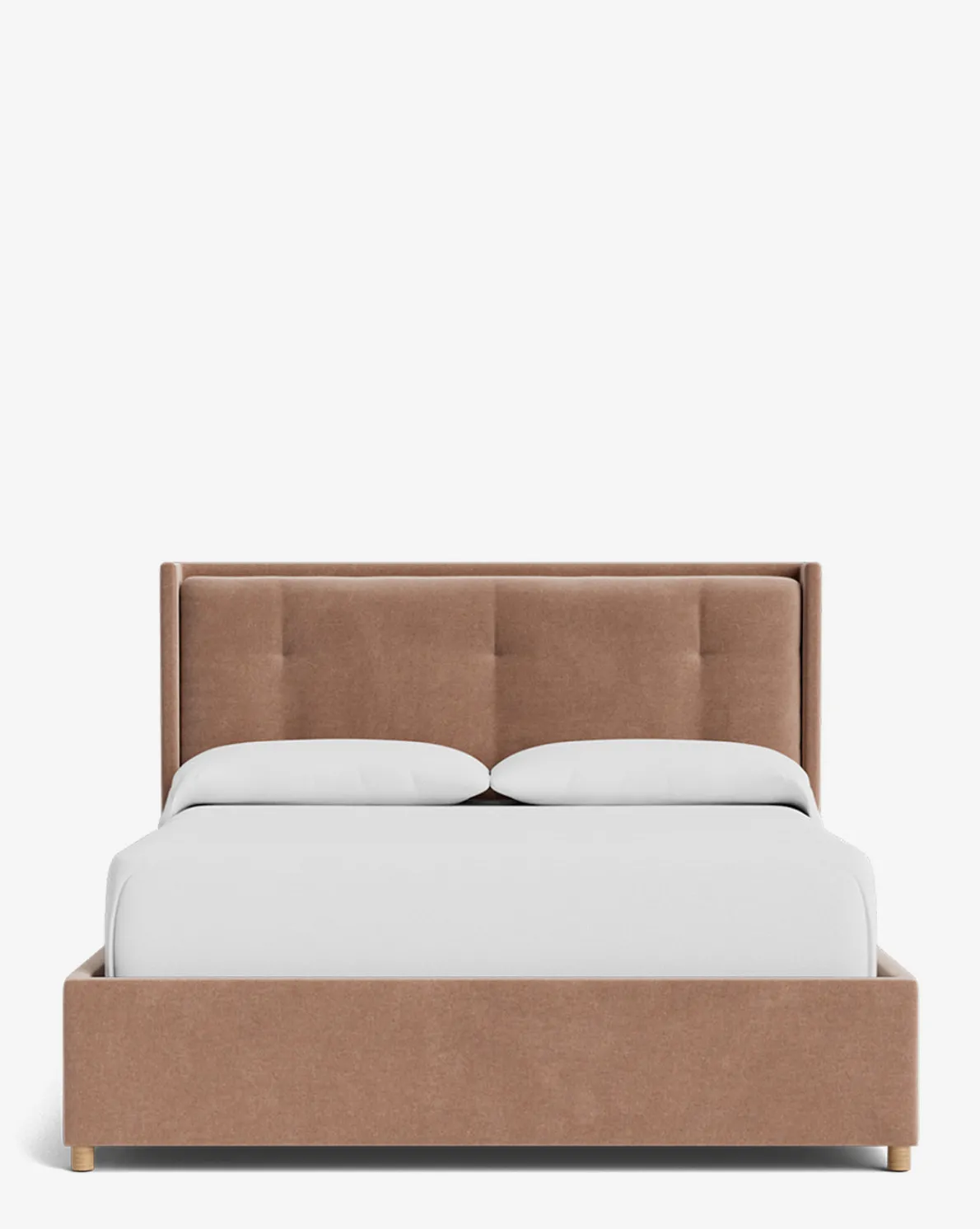 With a bench-made frame, the Ria Bed Low Headboard is customizable in a selection of our favorite high-quality fabrics. The tufted headboard brings both simplicity and elegance to bedroom designs in each of the colorways. With a low frame and subtle wood block feet, this upholstered bed elevates your bedroom style with its detail and refinement.