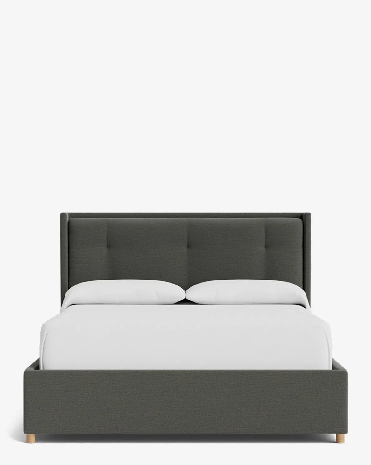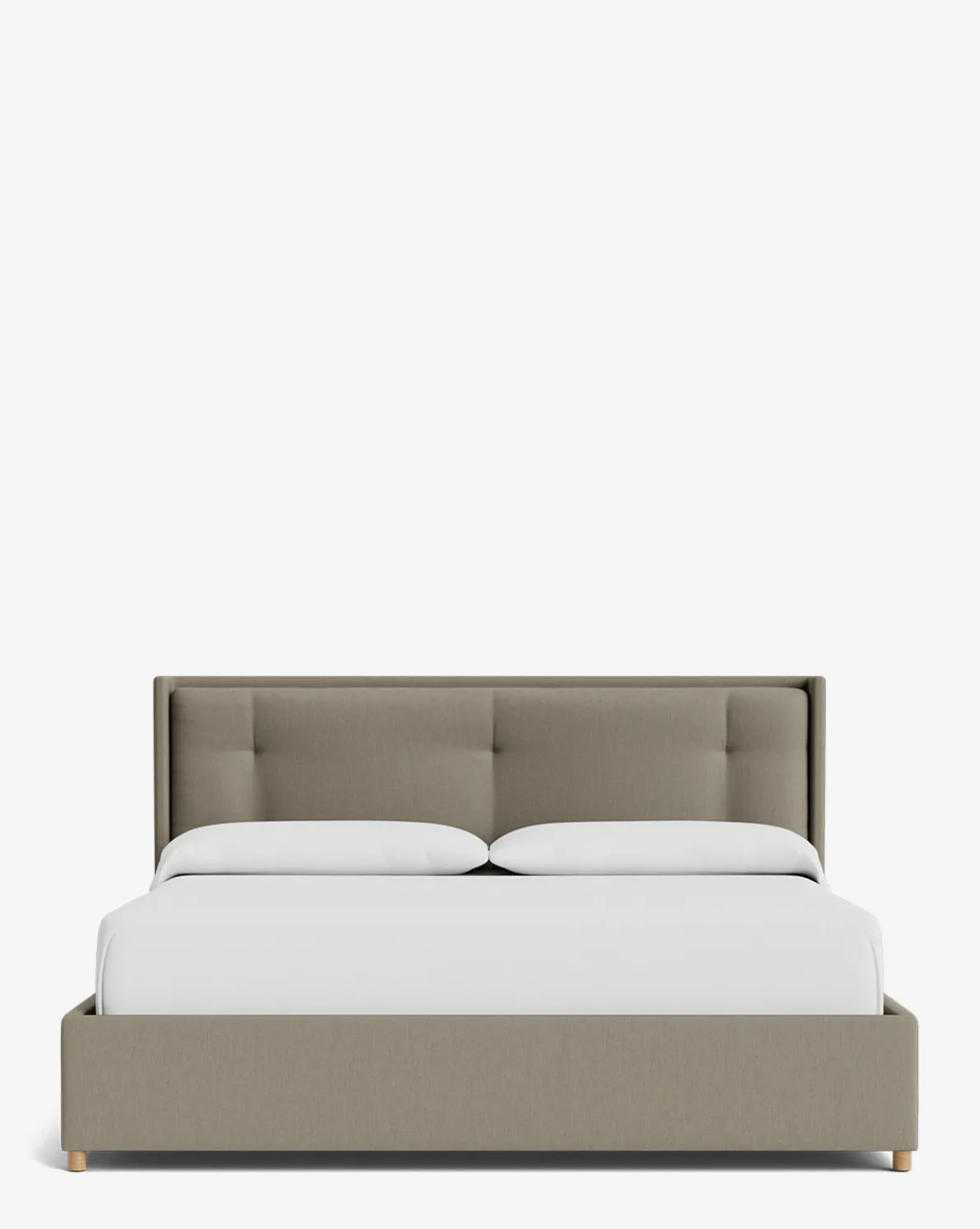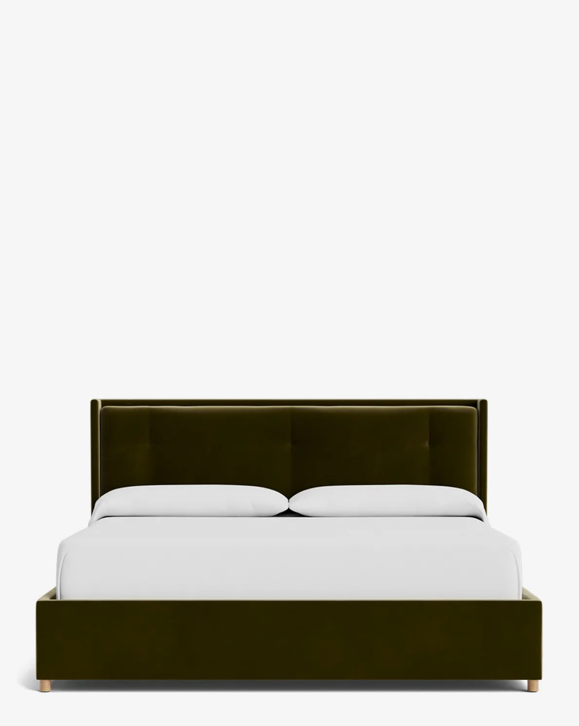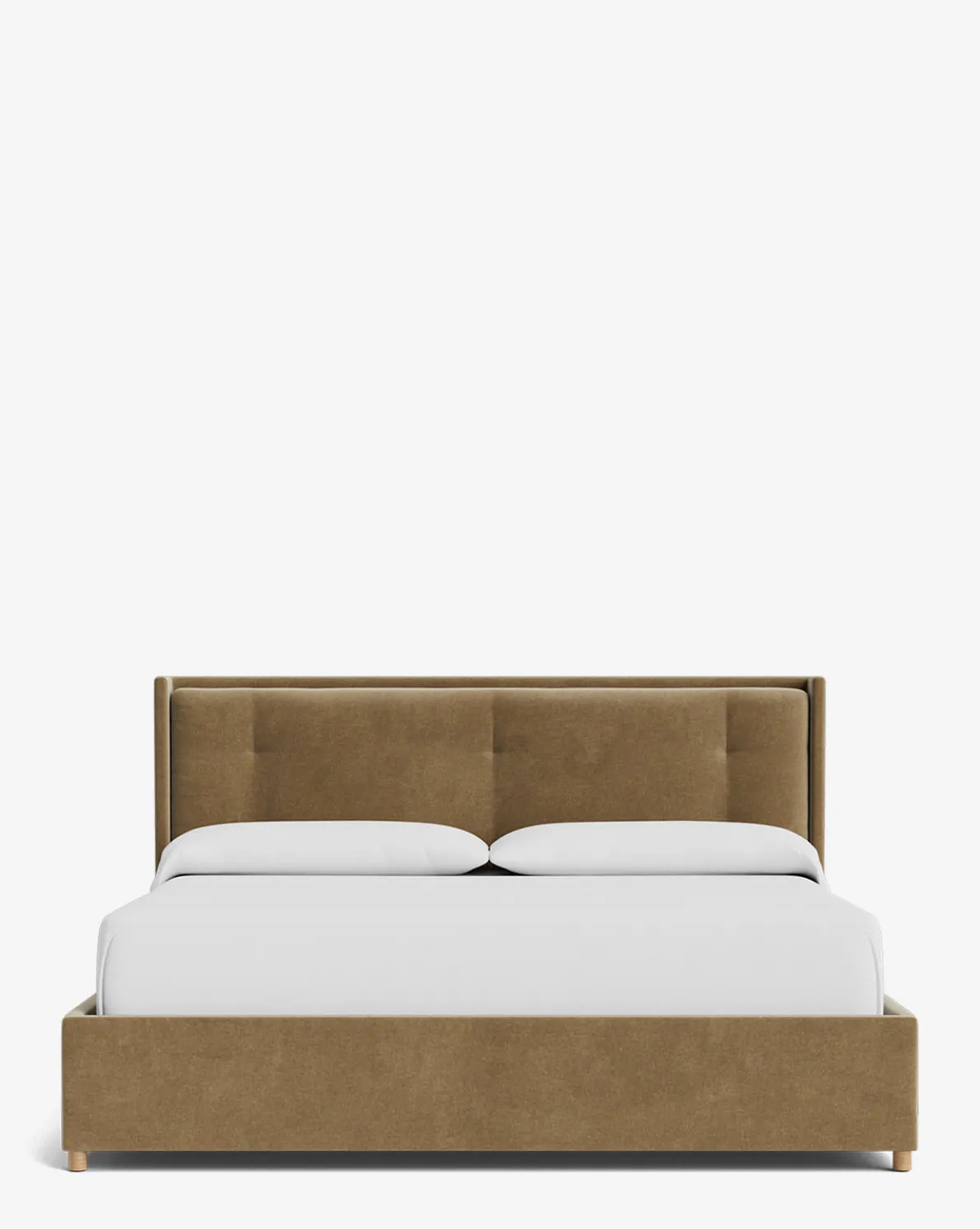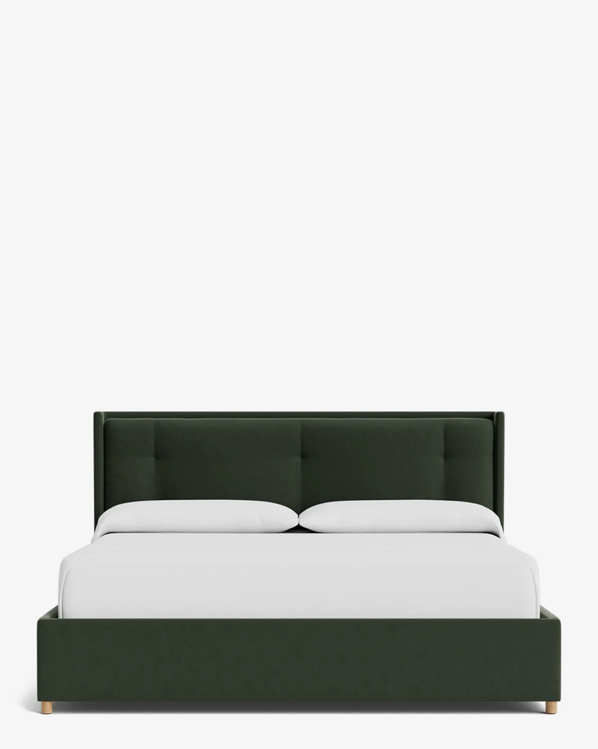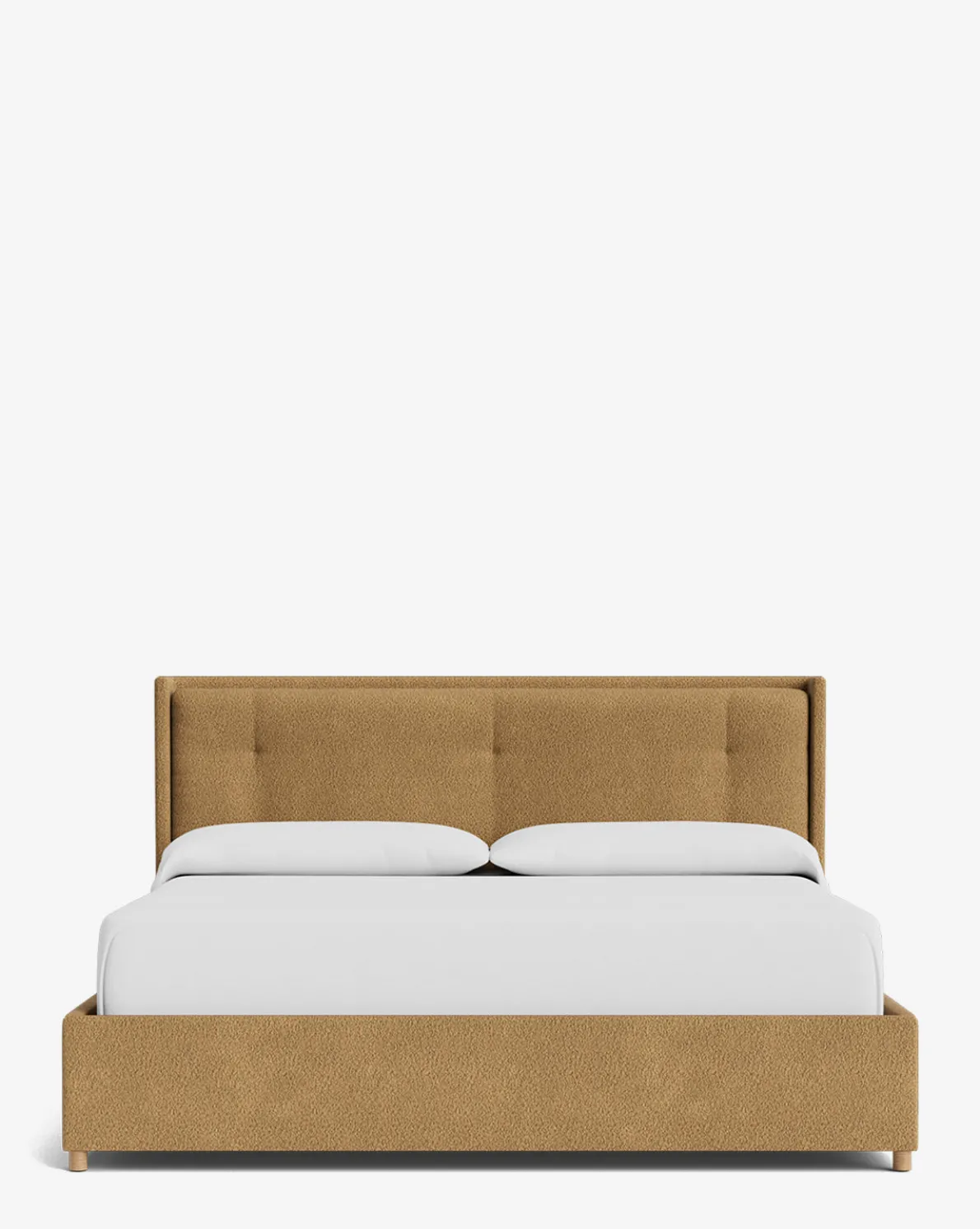 With a bench-made frame, the Ria Bed Low Headboard is customizable in a selection of our favorite high-quality fabrics. The tufted headboard brings both simplicity and elegance to bedroom designs in each of the colorways. With a low frame and subtle wood block feet, this upholstered bed elevates your bedroom style with its detail and refinement.