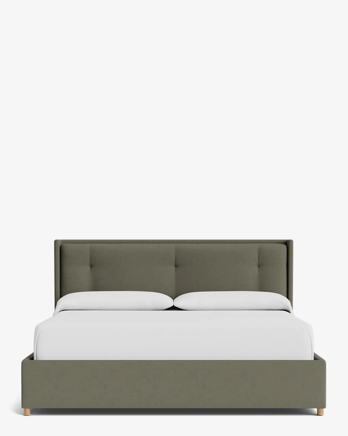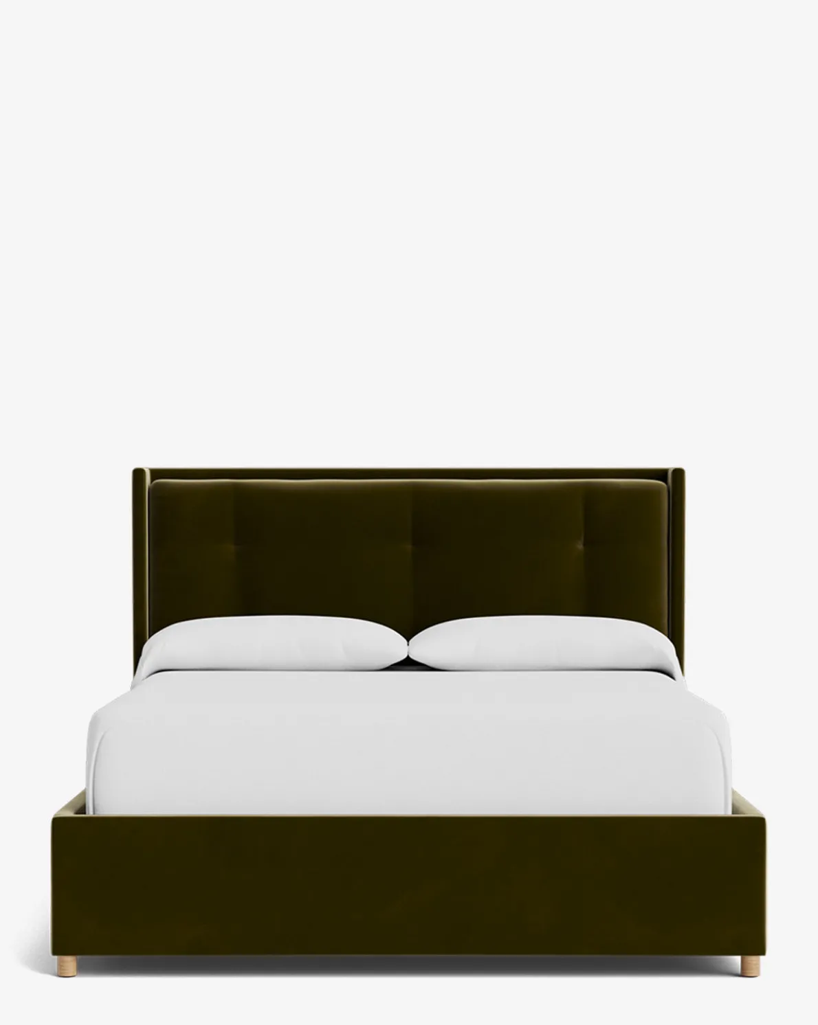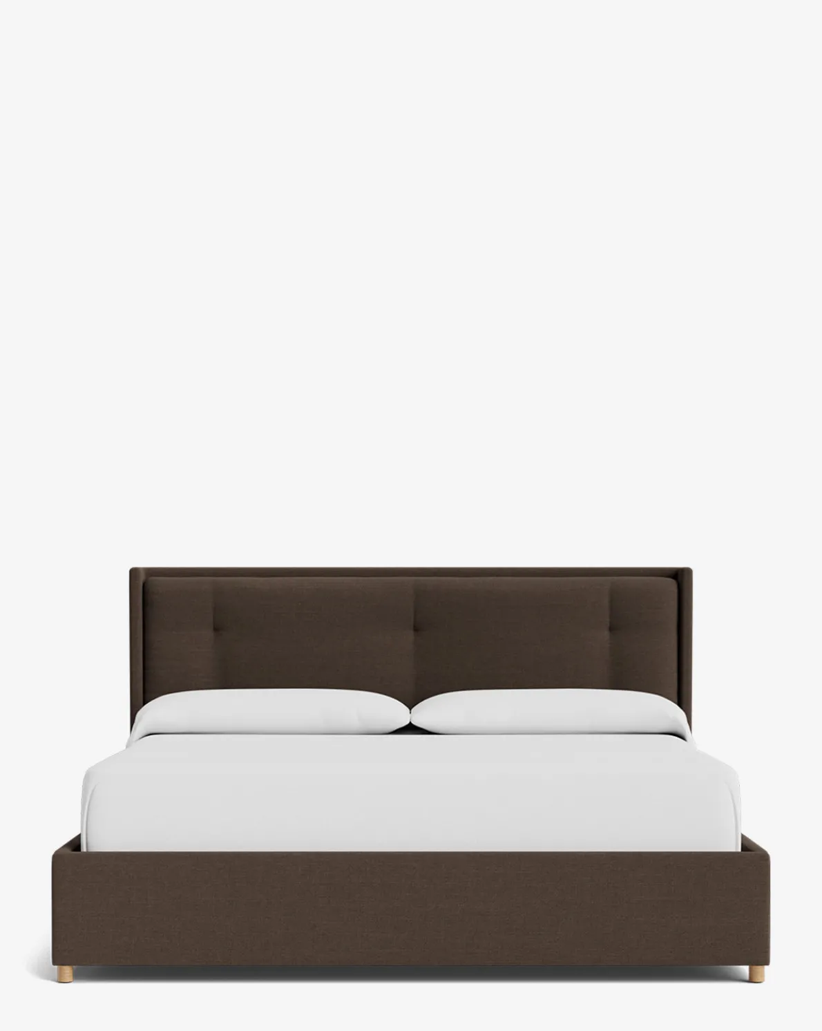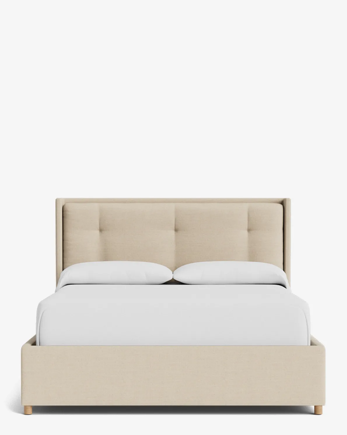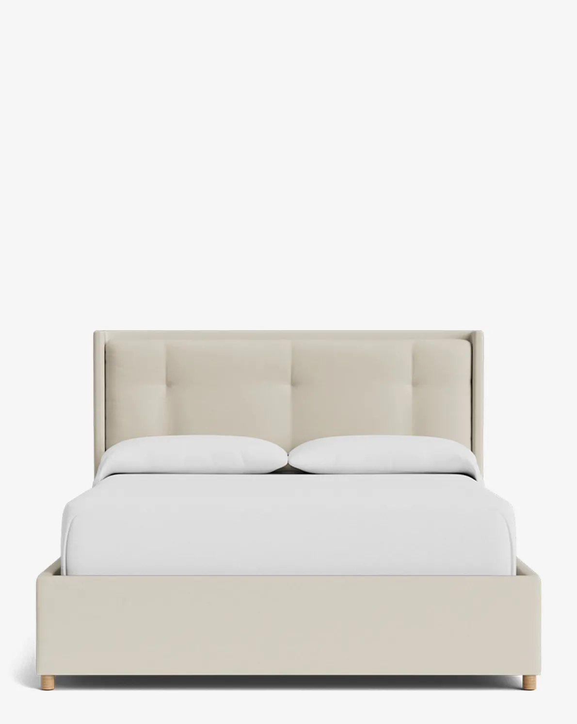 With a bench-made frame, the Ria Bed Low Headboard is customizable in a selection of our favorite high-quality fabrics. The tufted headboard brings both simplicity and elegance to bedroom designs in each of the colorways. With a low frame and subtle wood block feet, this upholstered bed elevates your bedroom style with its detail and refinement.
