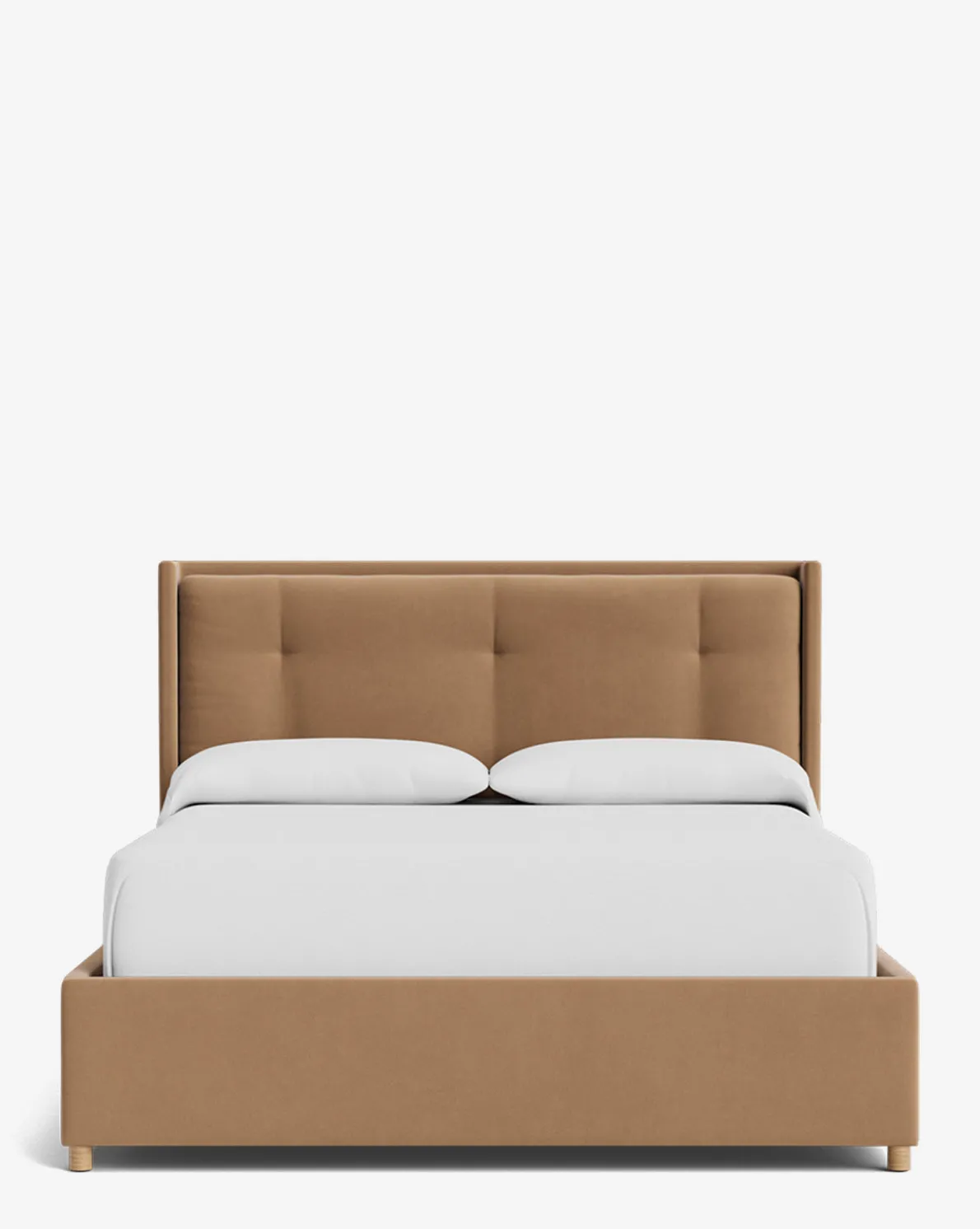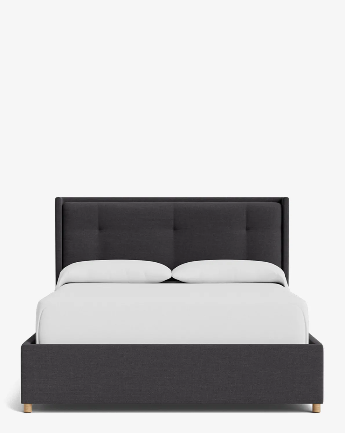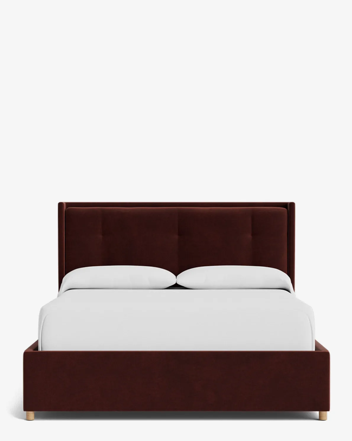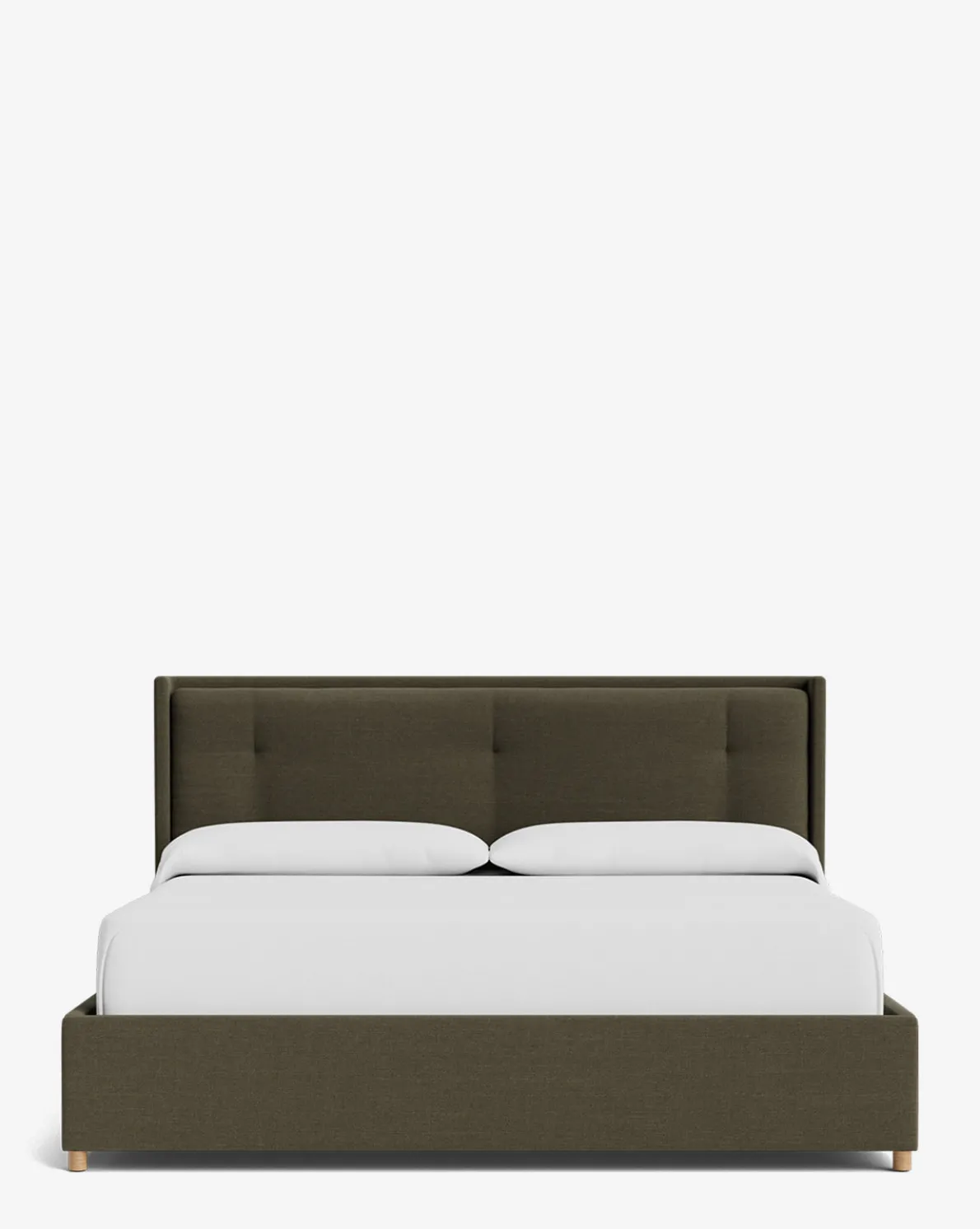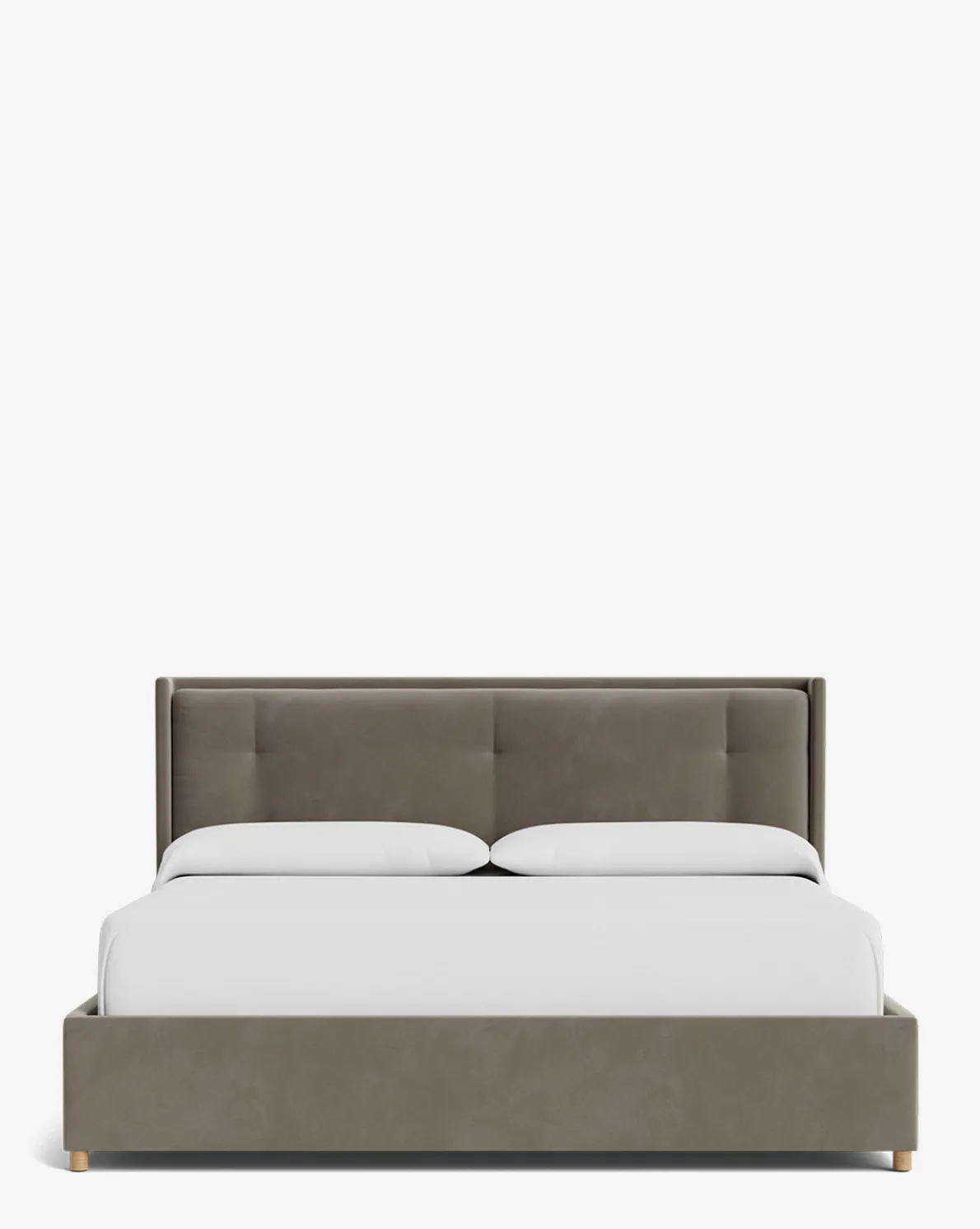 With a bench-made frame, the Ria Bed Low Headboard is customizable in a selection of our favorite high-quality fabrics. The tufted headboard brings both simplicity and elegance to bedroom designs in each of the colorways. With a low frame and subtle wood block feet, this upholstered bed elevates your bedroom style with its detail and refinement.