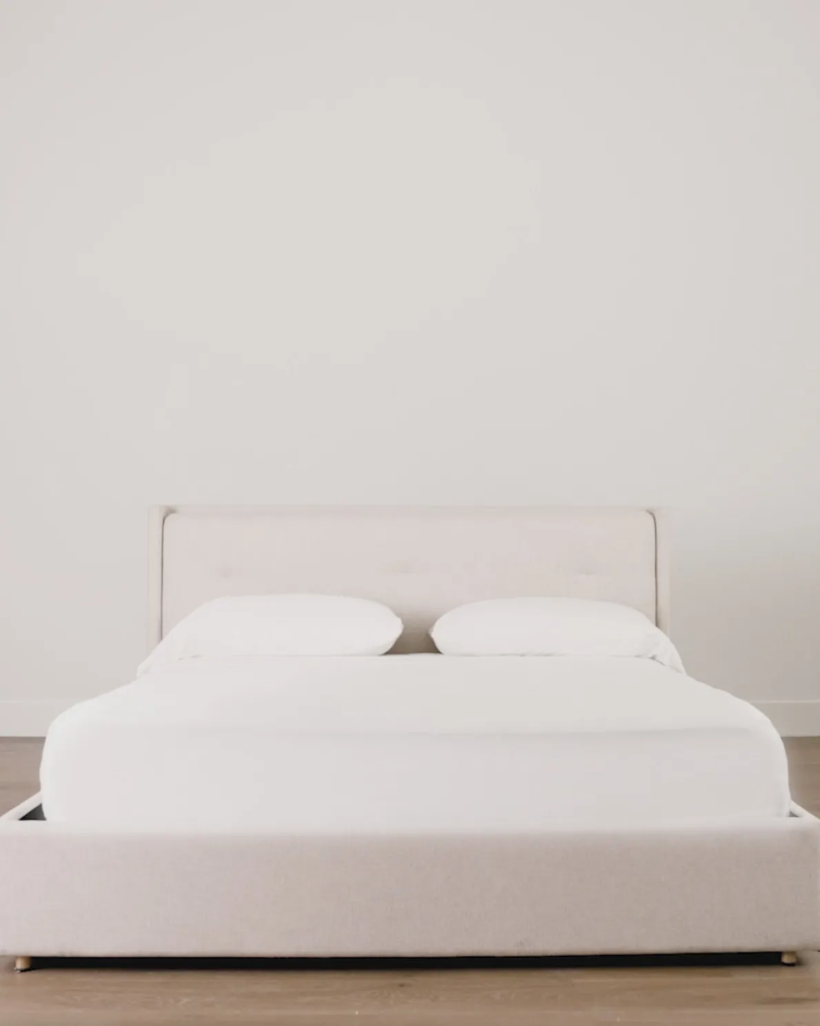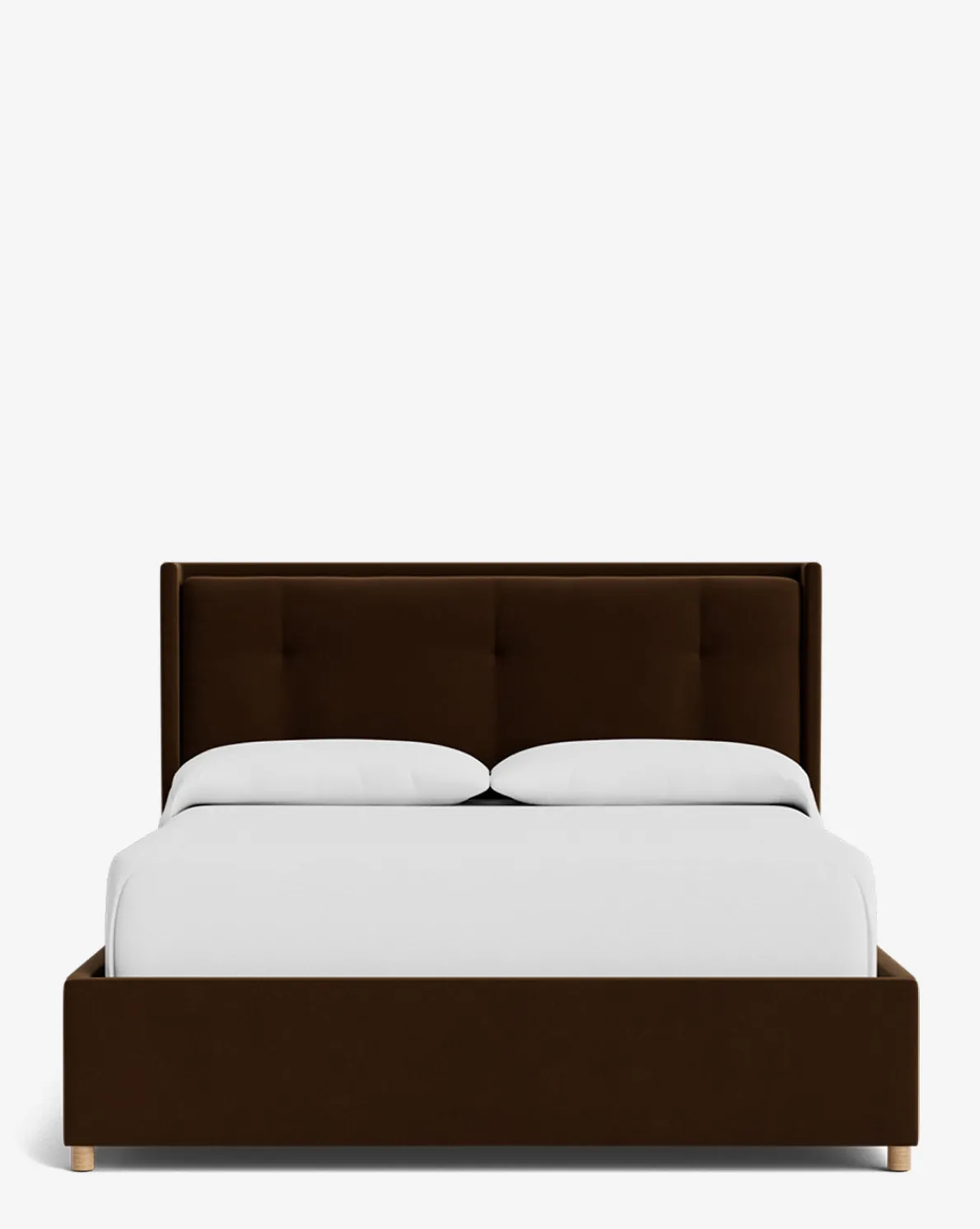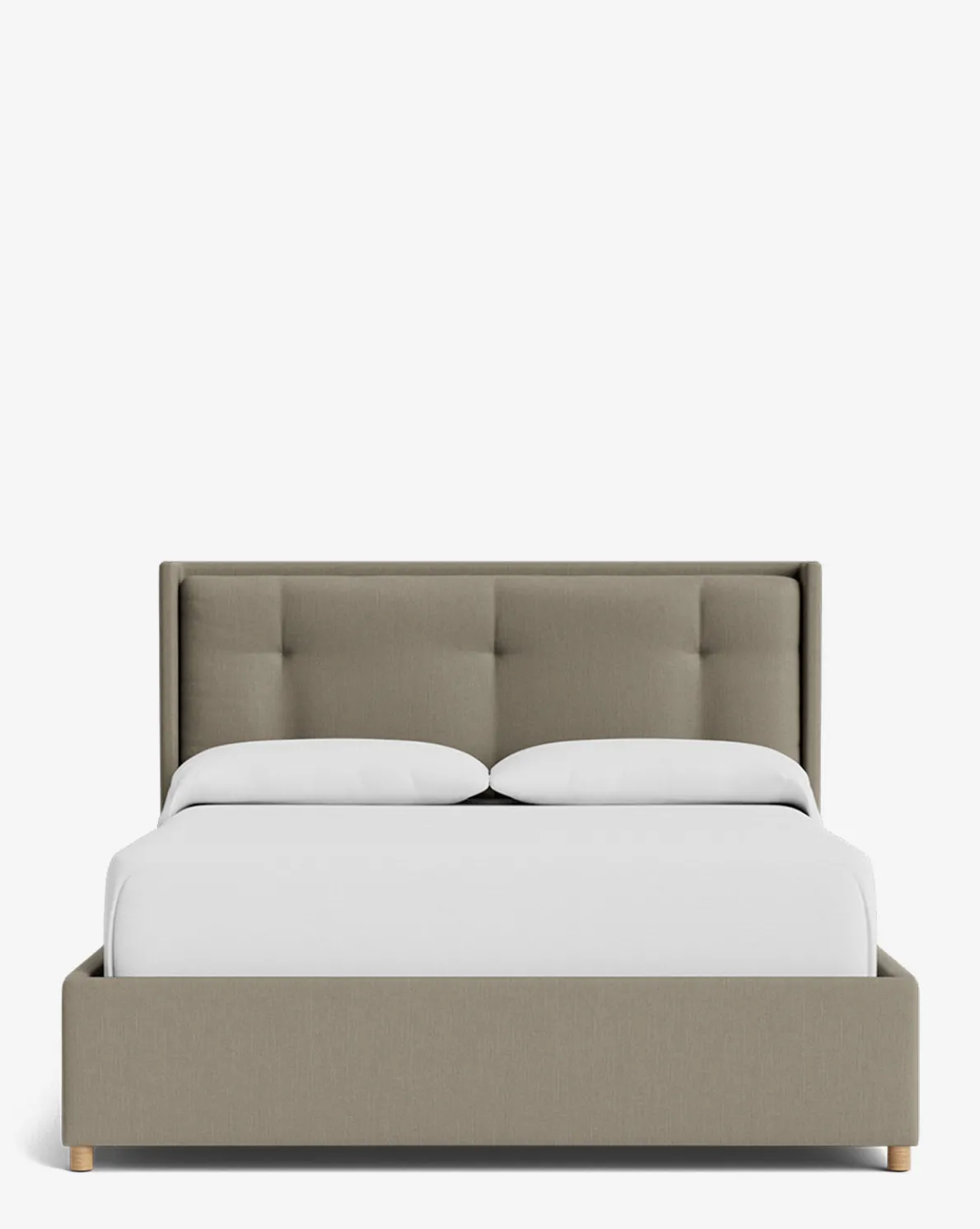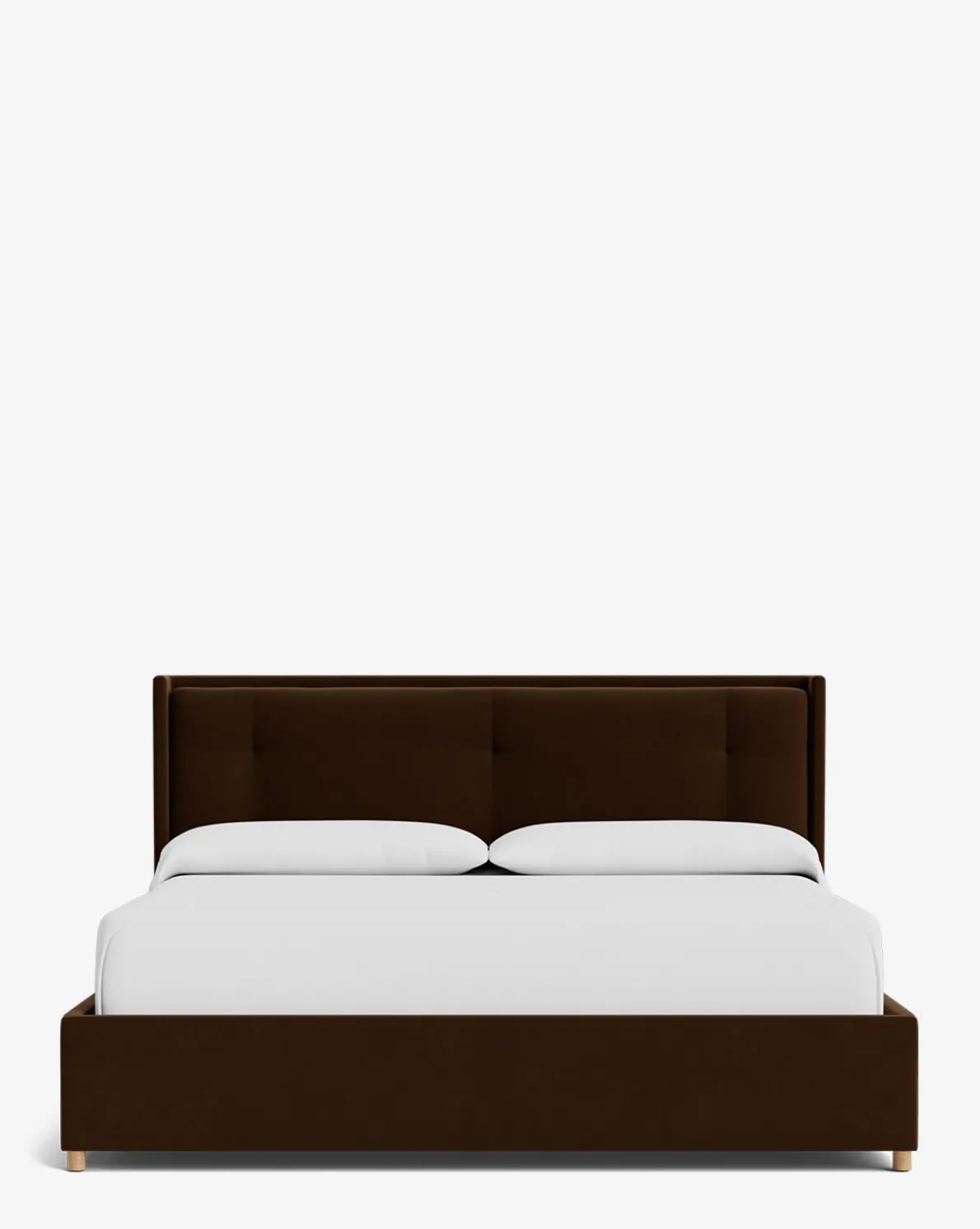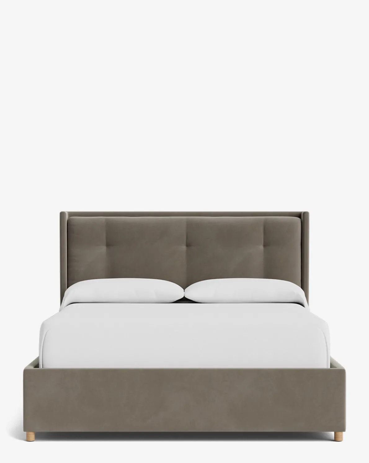 With a bench-made frame, the Ria Bed Low Headboard is customizable in a selection of our favorite high-quality fabrics. The tufted headboard brings both simplicity and elegance to bedroom designs in each of the colorways. With a low frame and subtle wood block feet, this upholstered bed elevates your bedroom style with its detail and refinement.