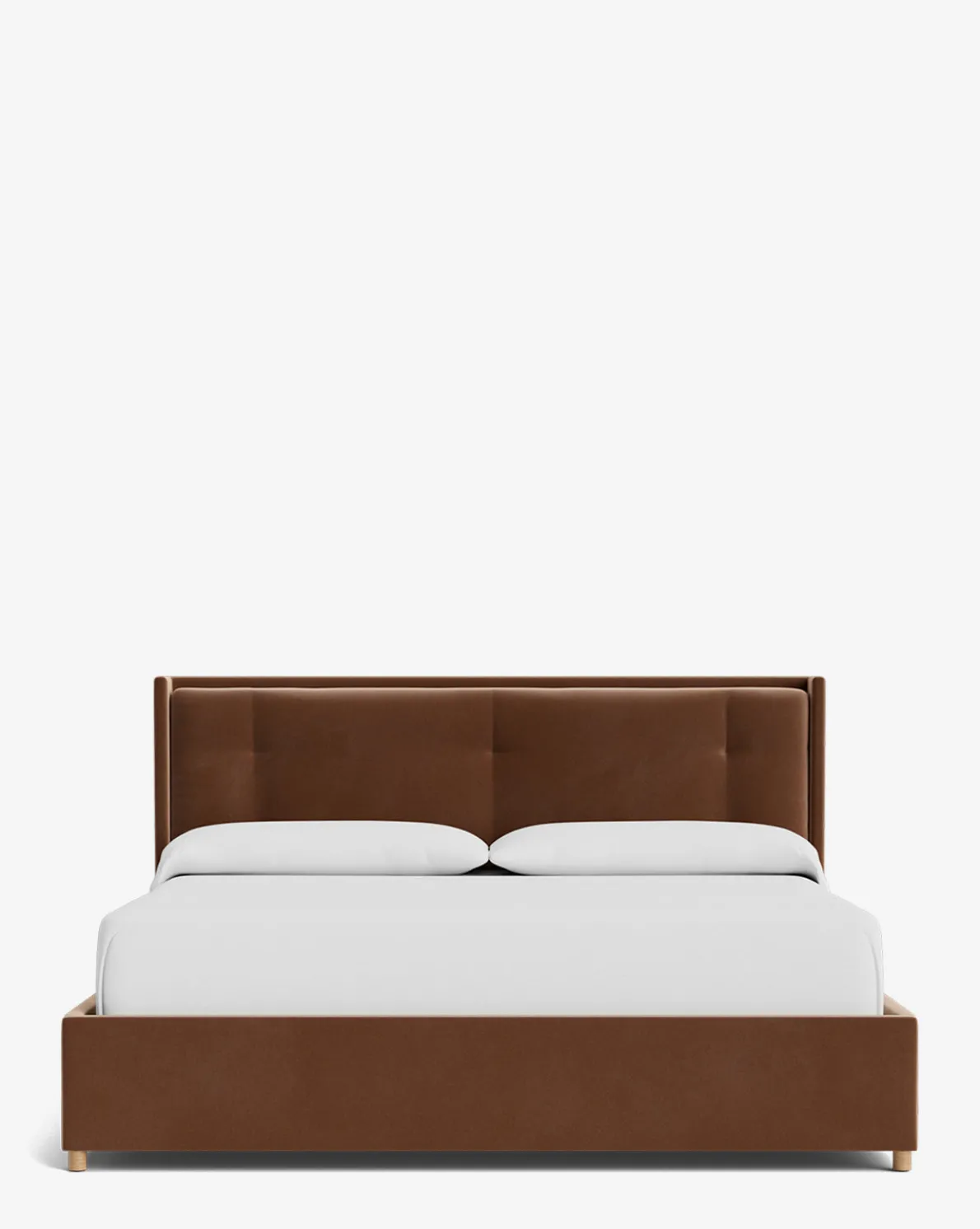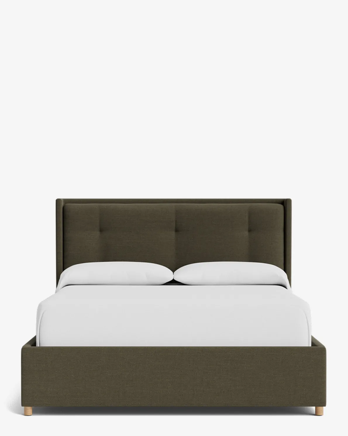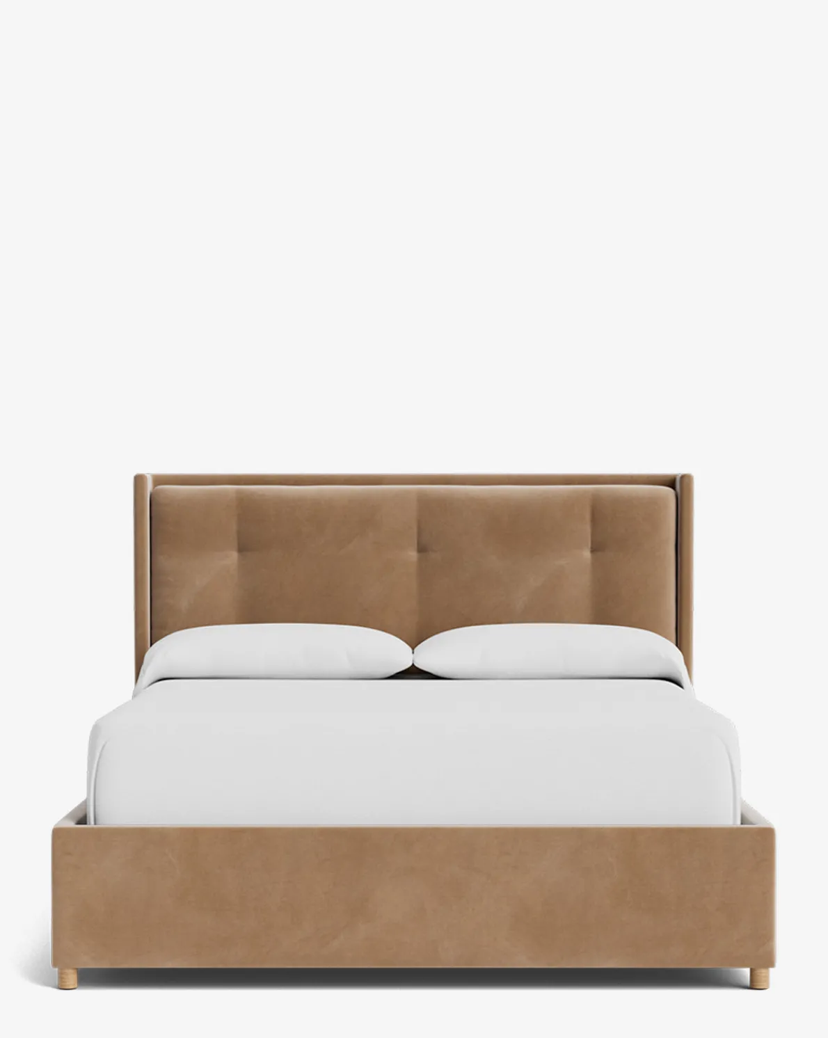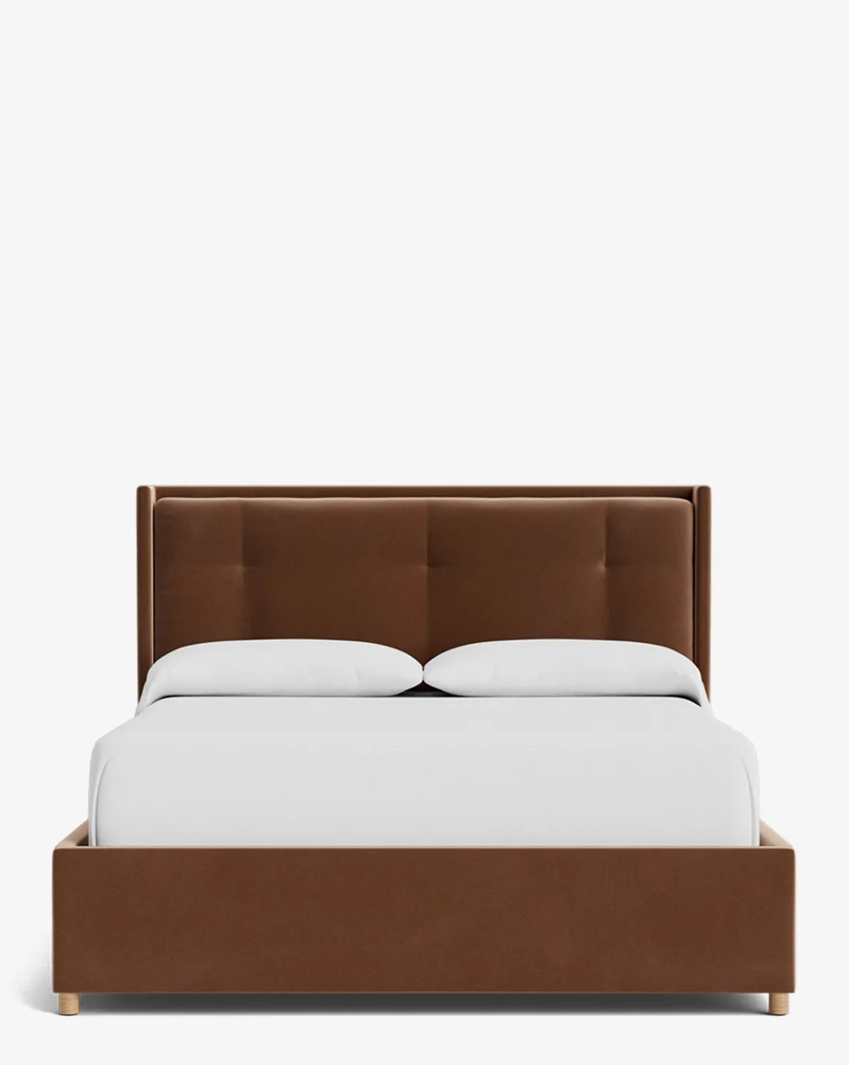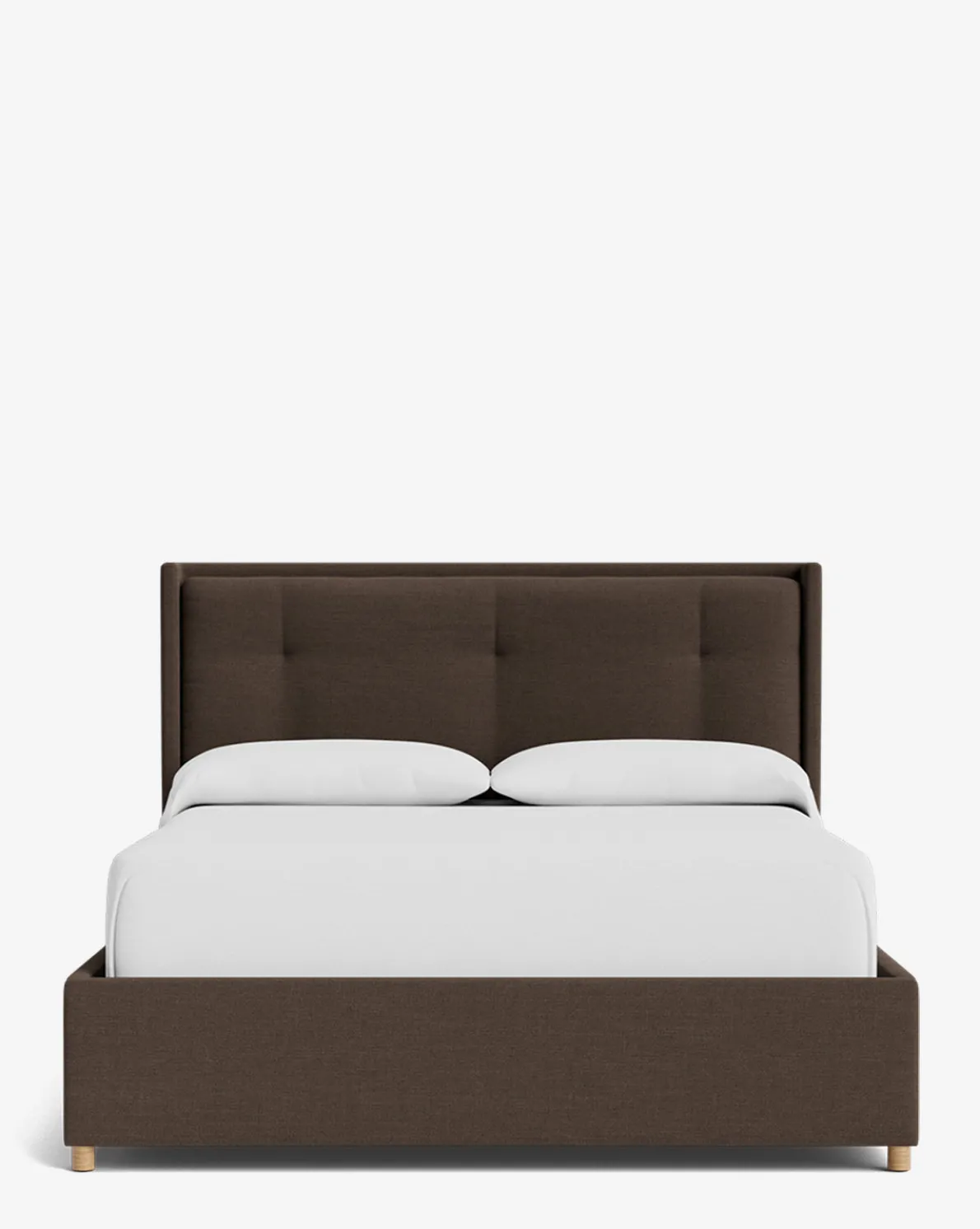 With a bench-made frame, the Ria Bed Low Headboard is customizable in a selection of our favorite high-quality fabrics. The tufted headboard brings both simplicity and elegance to bedroom designs in each of the colorways. With a low frame and subtle wood block feet, this upholstered bed elevates your bedroom style with its detail and refinement.