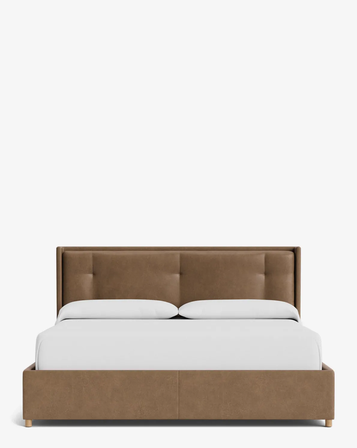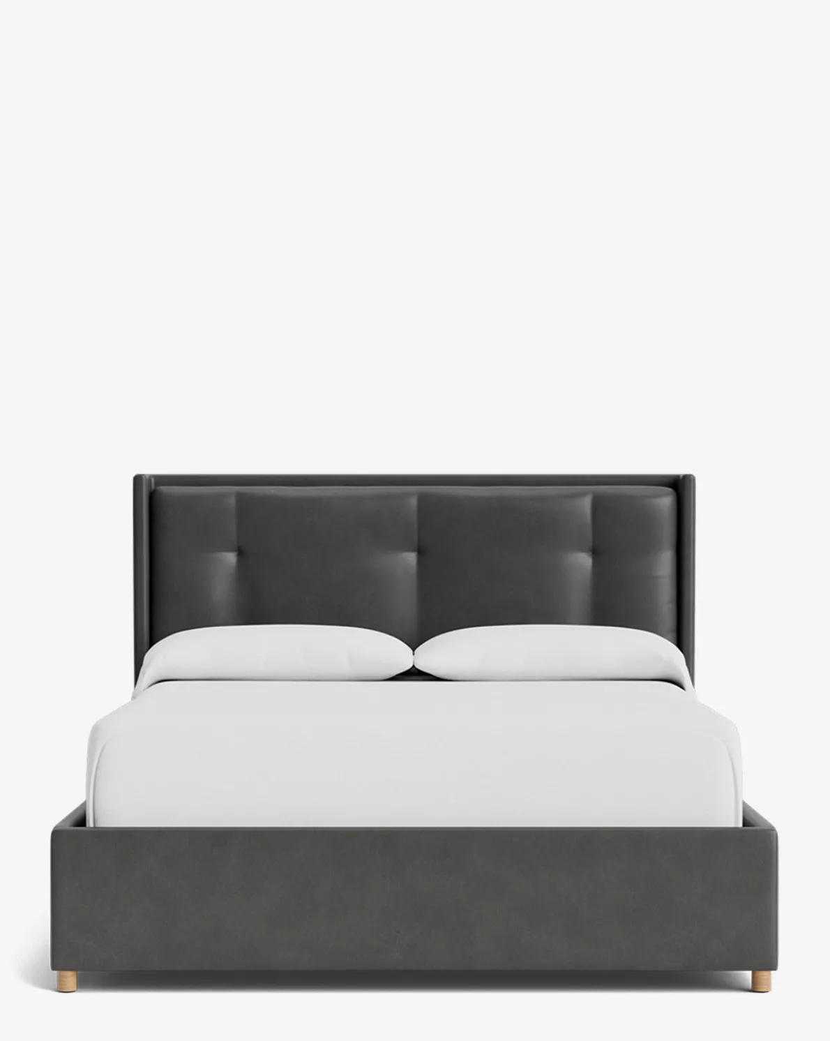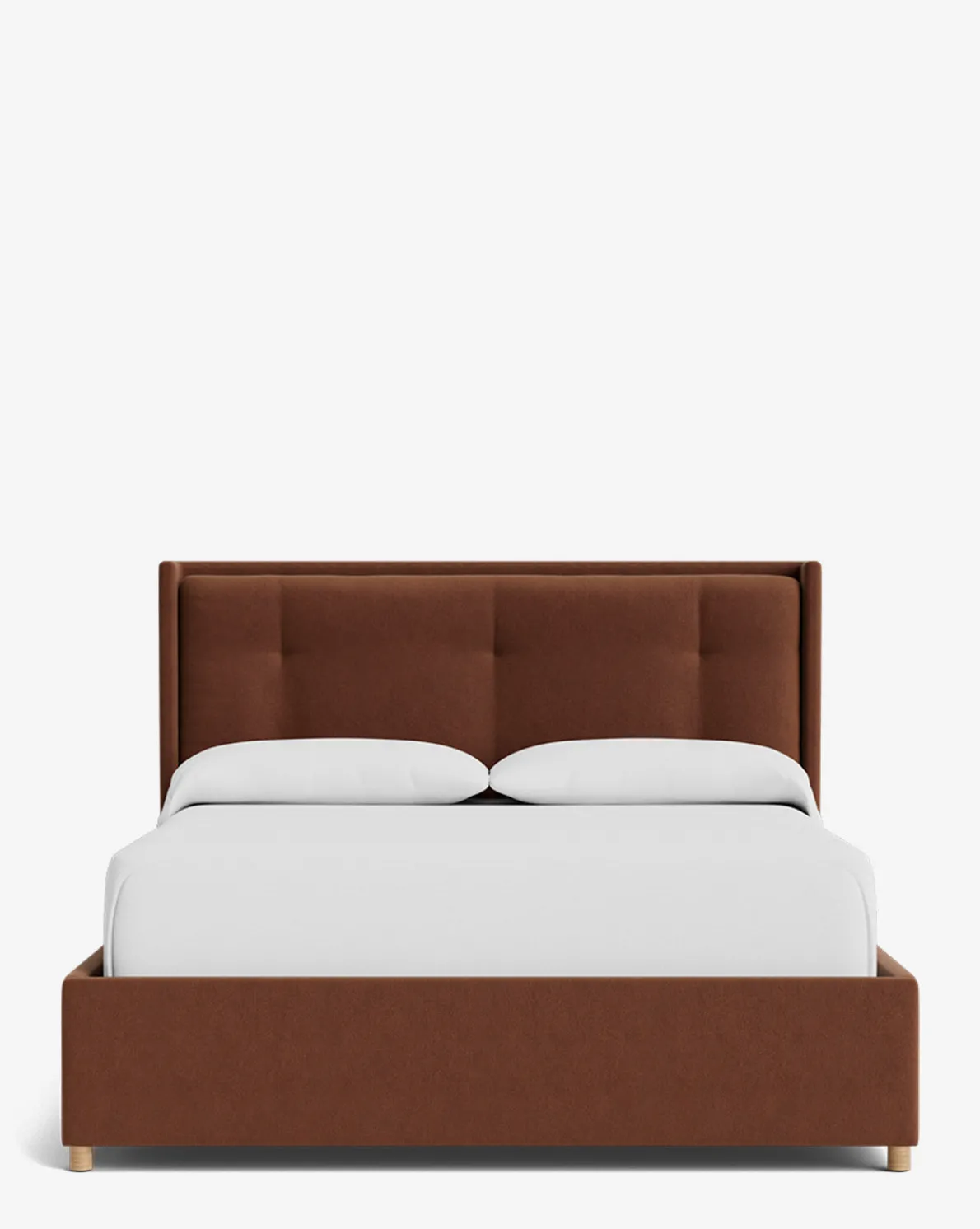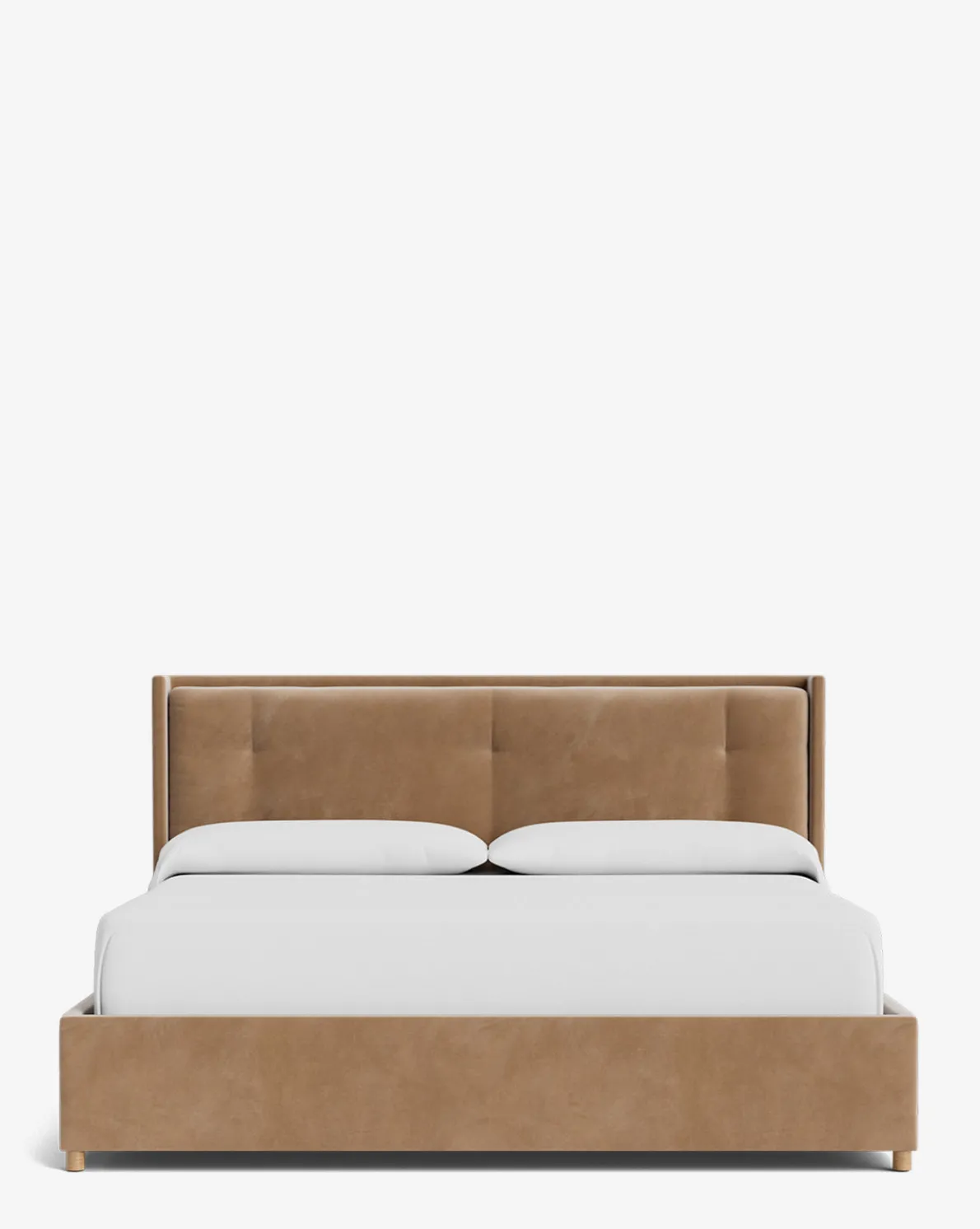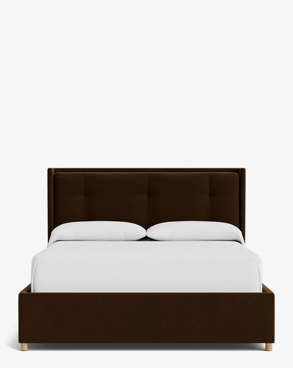 With a bench-made frame, the Ria Bed Low Headboard is customizable in a selection of our favorite high-quality fabrics. The tufted headboard brings both simplicity and elegance to bedroom designs in each of the colorways. With a low frame and subtle wood block feet, this upholstered bed elevates your bedroom style with its detail and refinement.