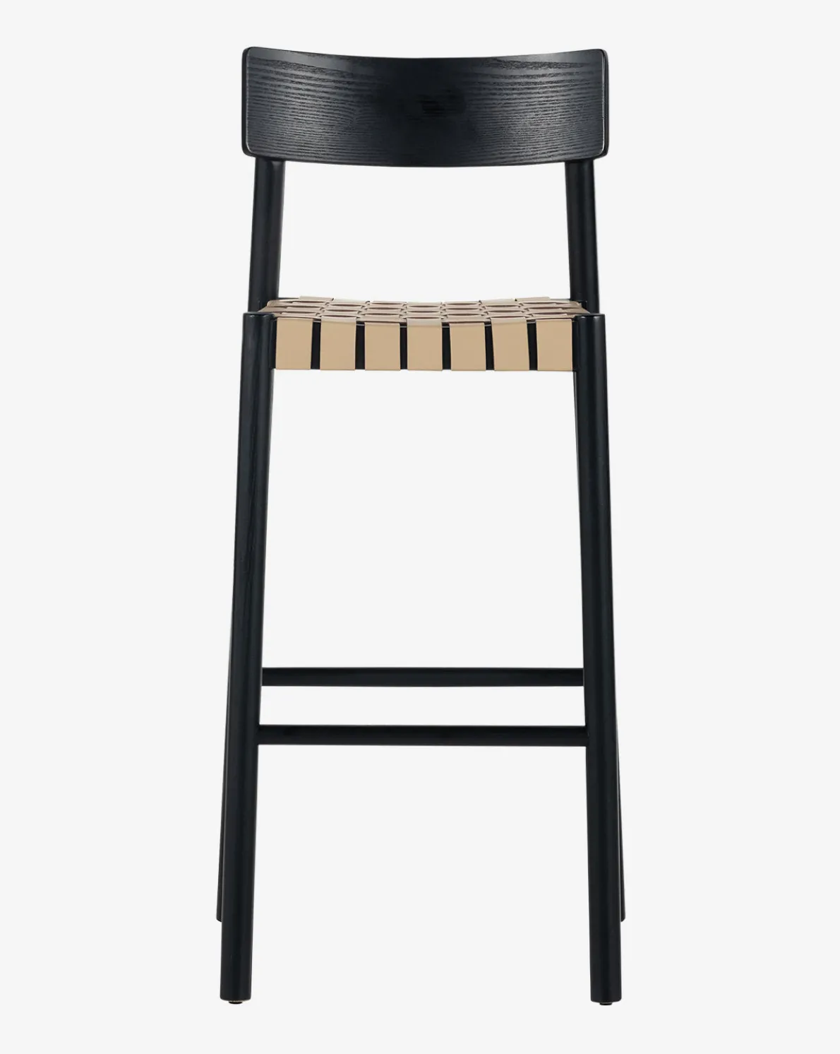 Characterized by its stunning woven leather seat, the Robson Stool has a slender form that complements its natural materials. Ina black finish, this elevated stool has a casual yet refined feel that blends effortlessly with kitchen designs.