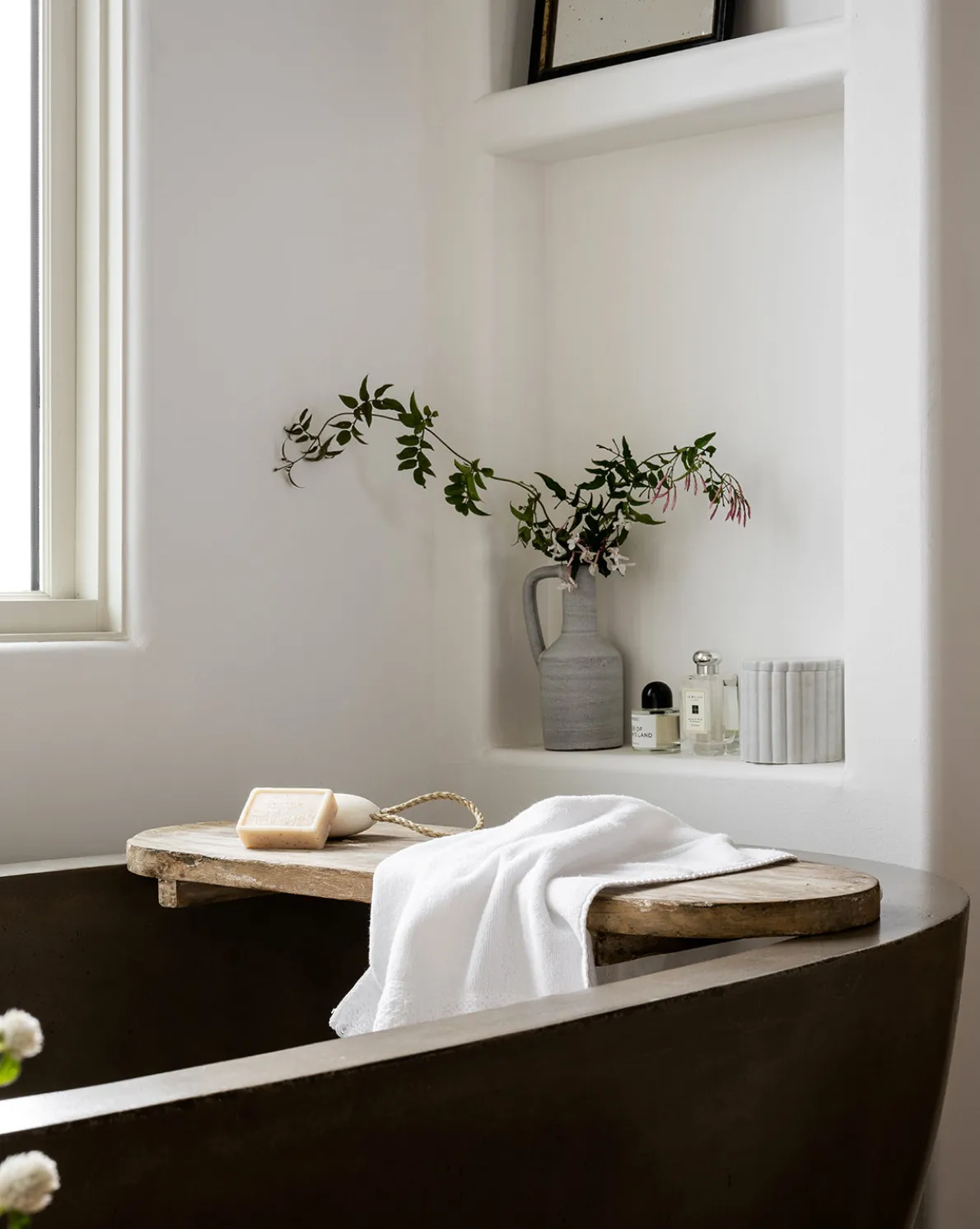 With a rustic feel, the Rounded Edge Bath Caddy lends an organic texture to bathtubs and bathrooms. Obvious wood grain and worn edges bring natural material to the space, and its elongated form give it practical use for elevating bath routines.