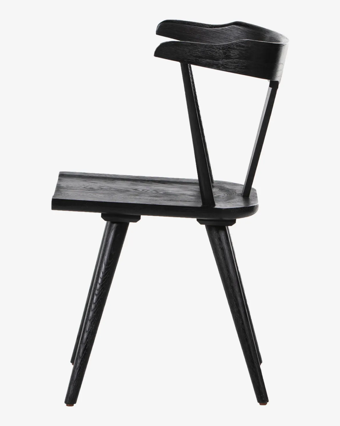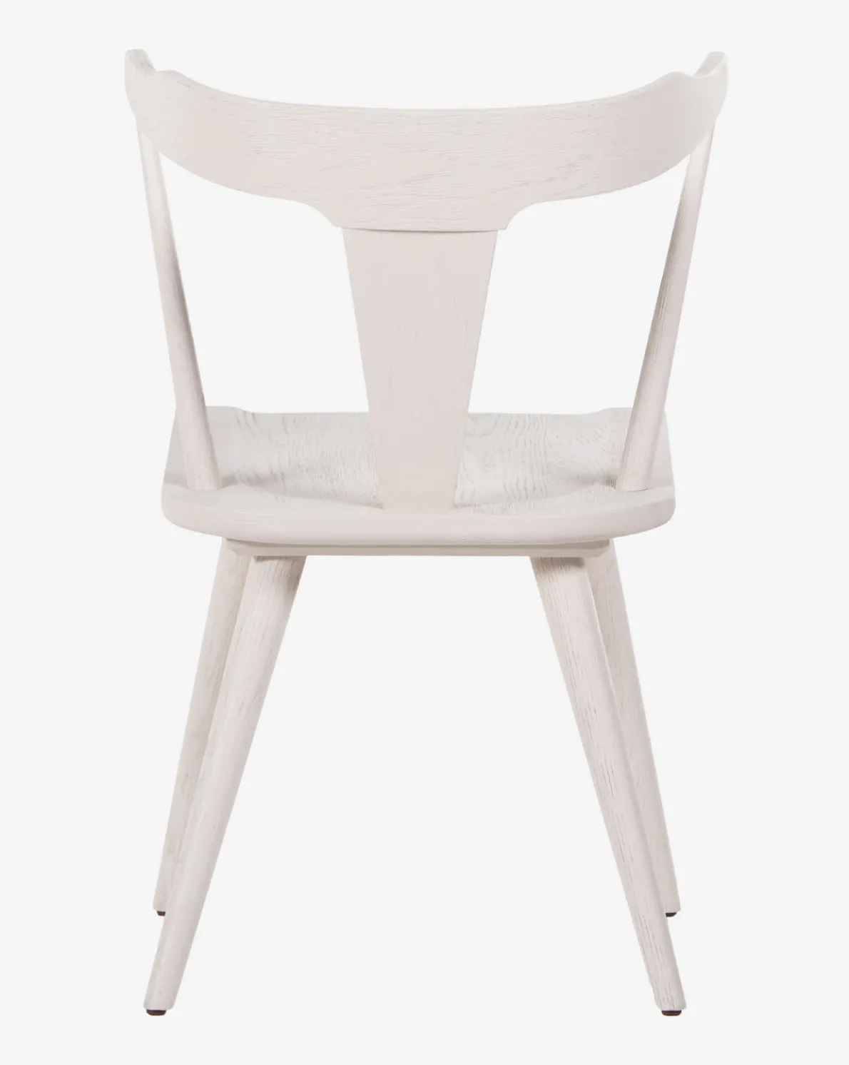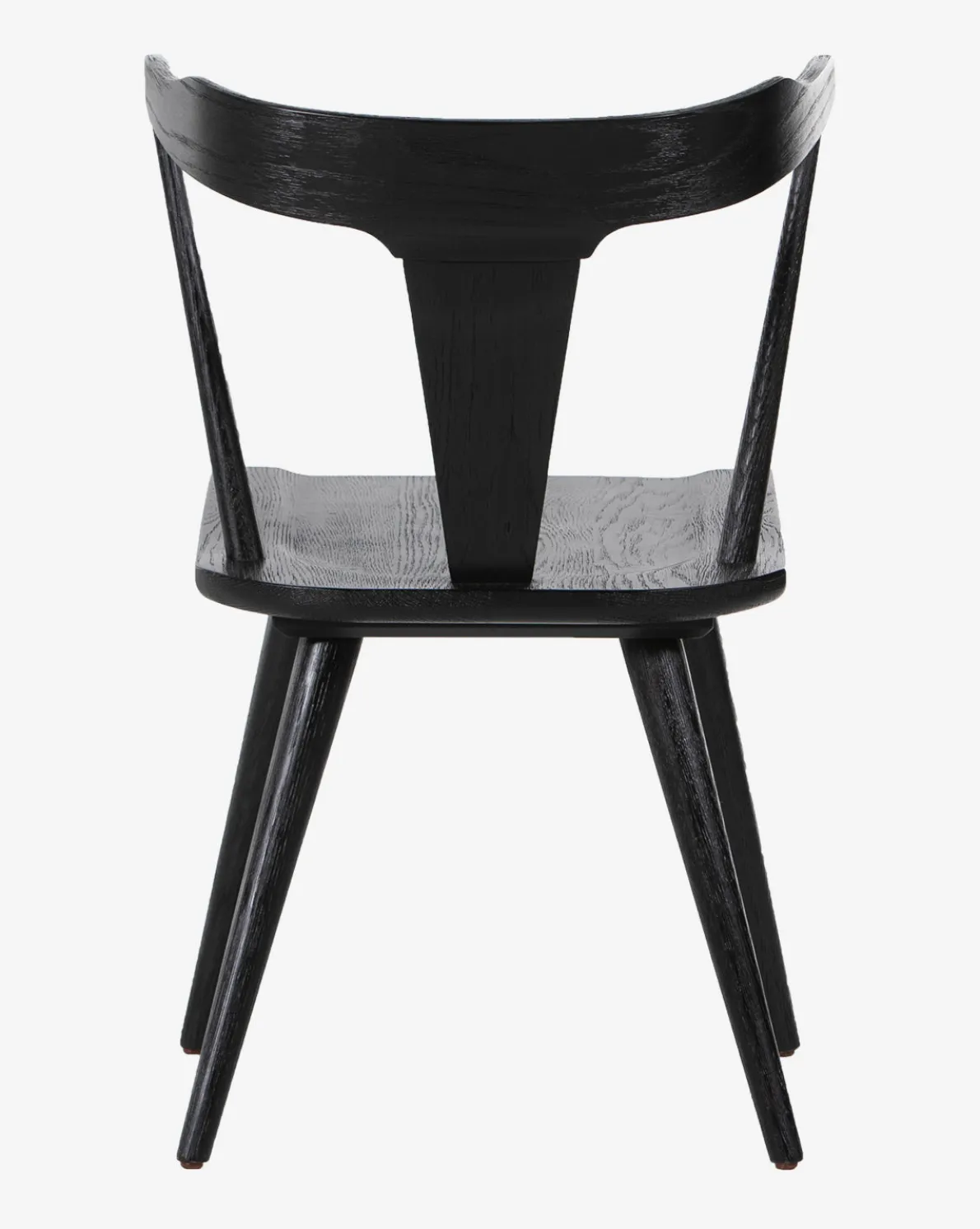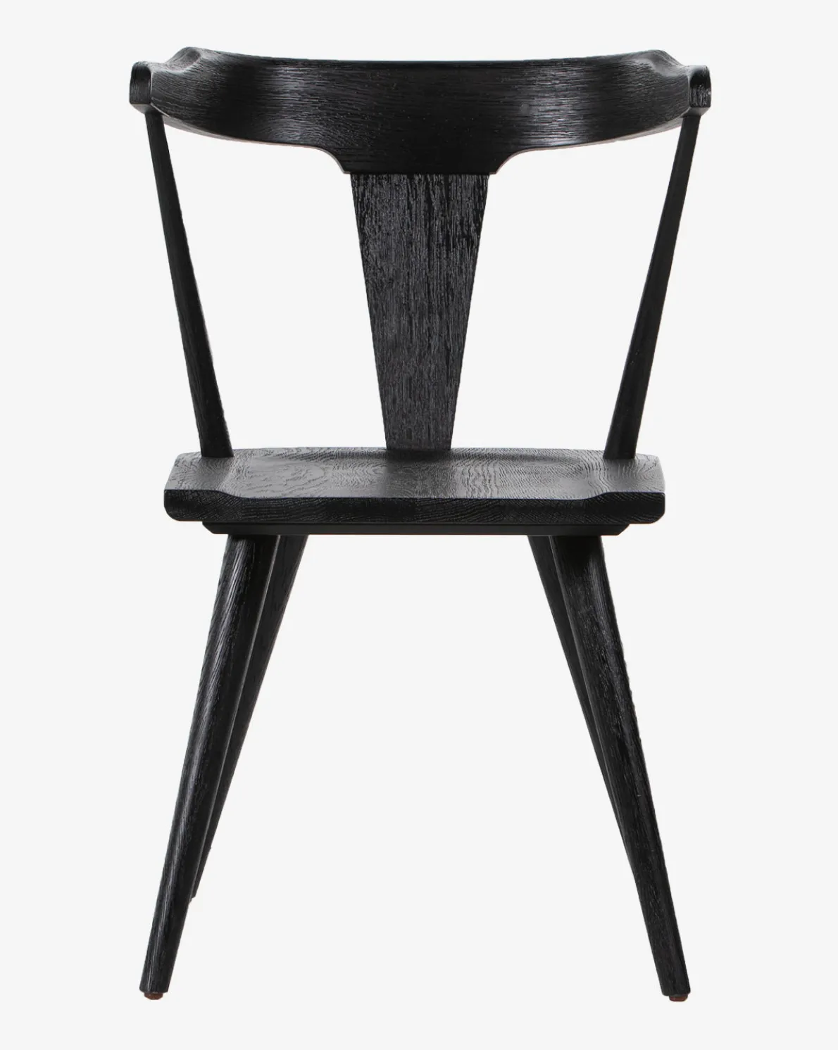 Redefining the classic mid-century Windsor vibe, our Ruthie Dining Chair features a yoked back and sculptural silhouette. With thoughtful attention to detail, its solid oak frame finished in a black or white hue highlights its natural knots and grains pulling movement through its structural form.