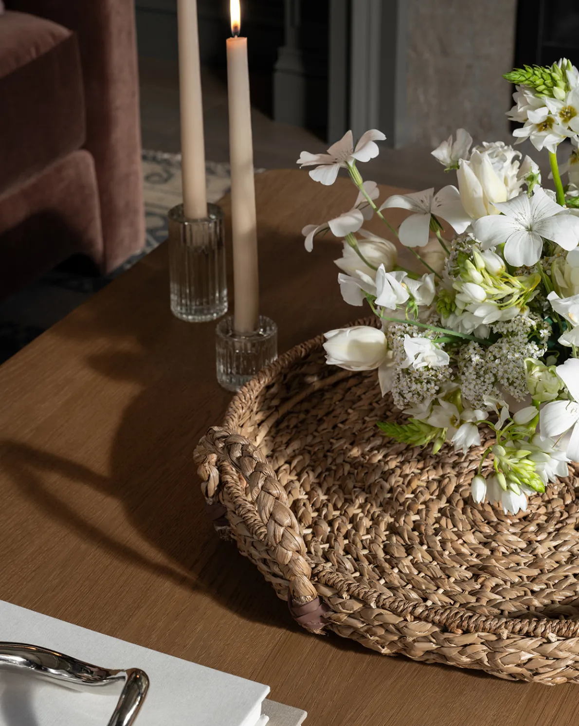 Made from braided seagrass and wicker, the Salter Woven Tray brings extra storage to your space with its handled, open form. Styled on a coffee table or console, this tray adds the perfect amount of texture to your home.