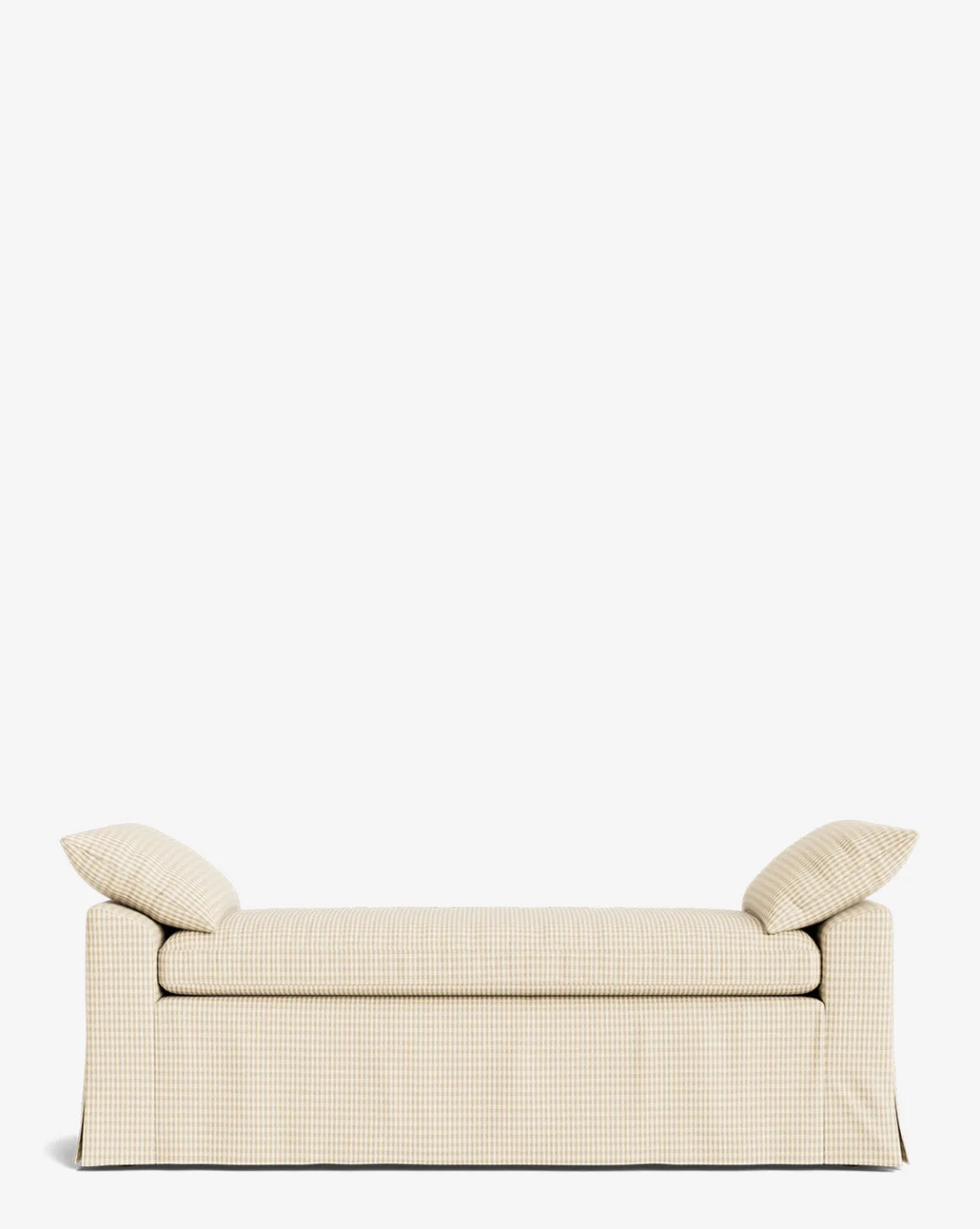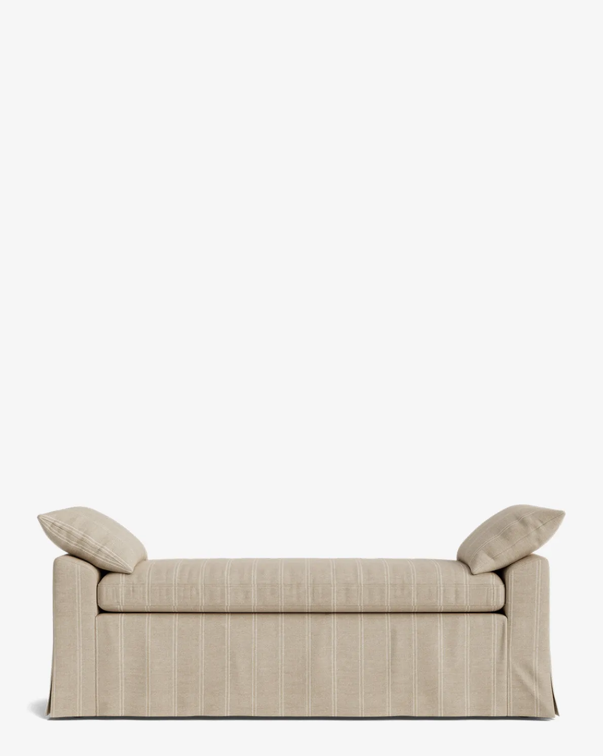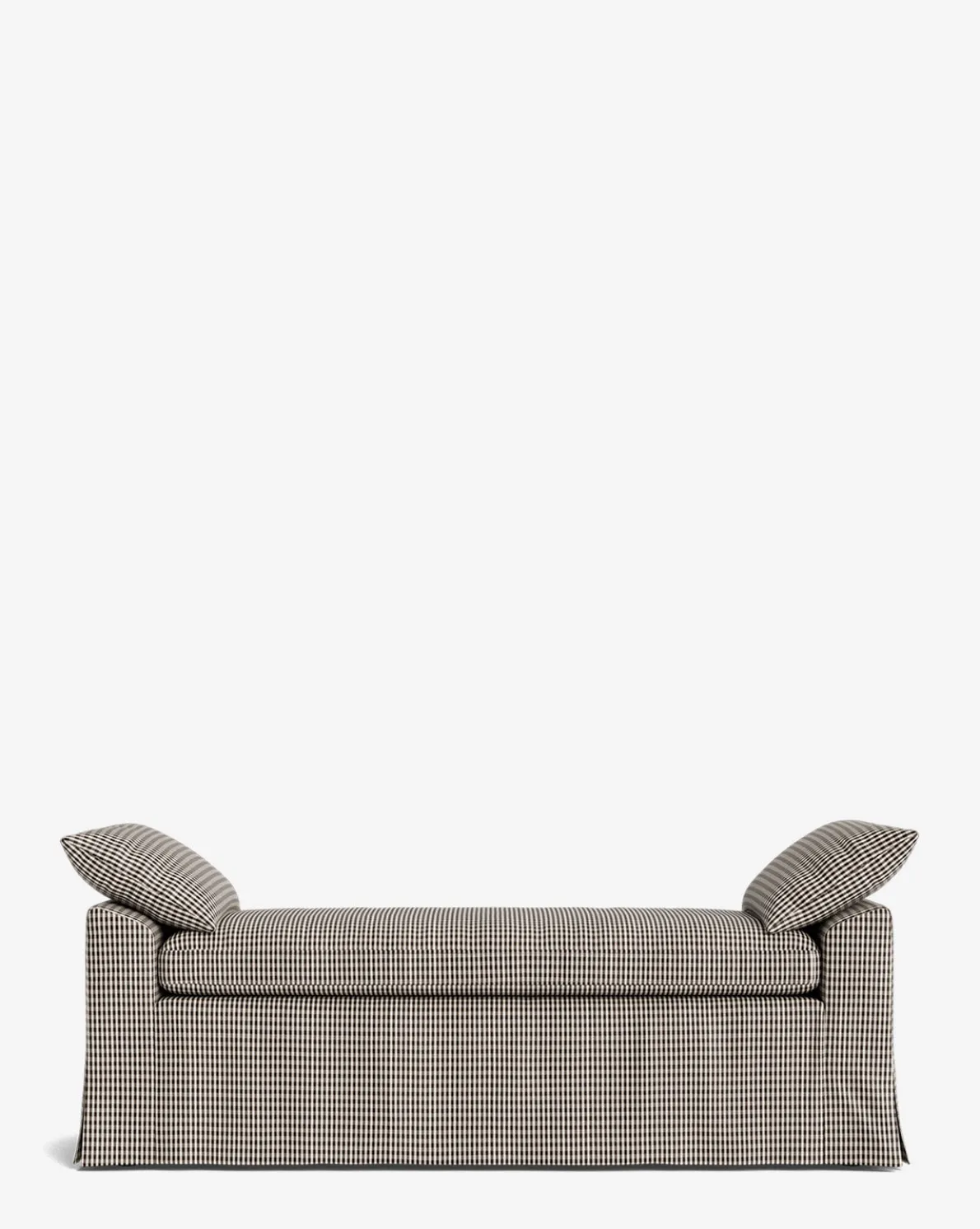 In an inviting symmetrical design, our Scaletta Bench is both casual and elevated. Upholstered in your choice of high-quality performance fabrics, it lends comfort and dimension to your styling.