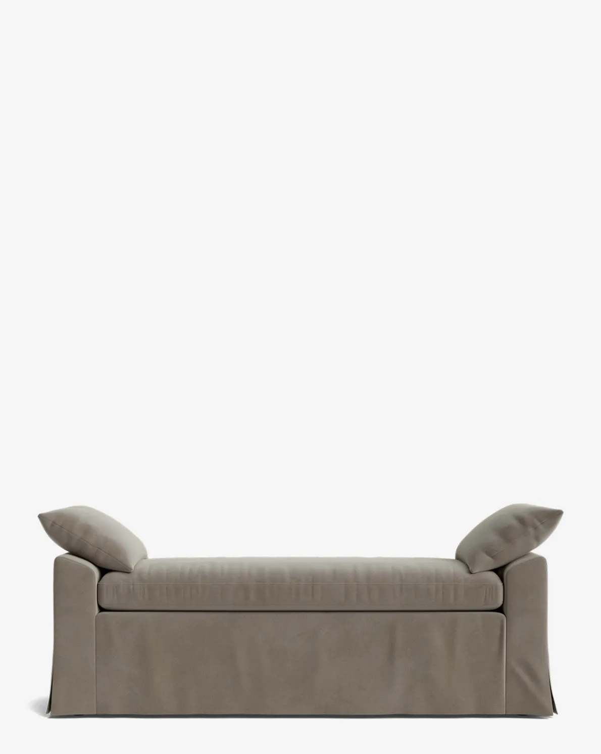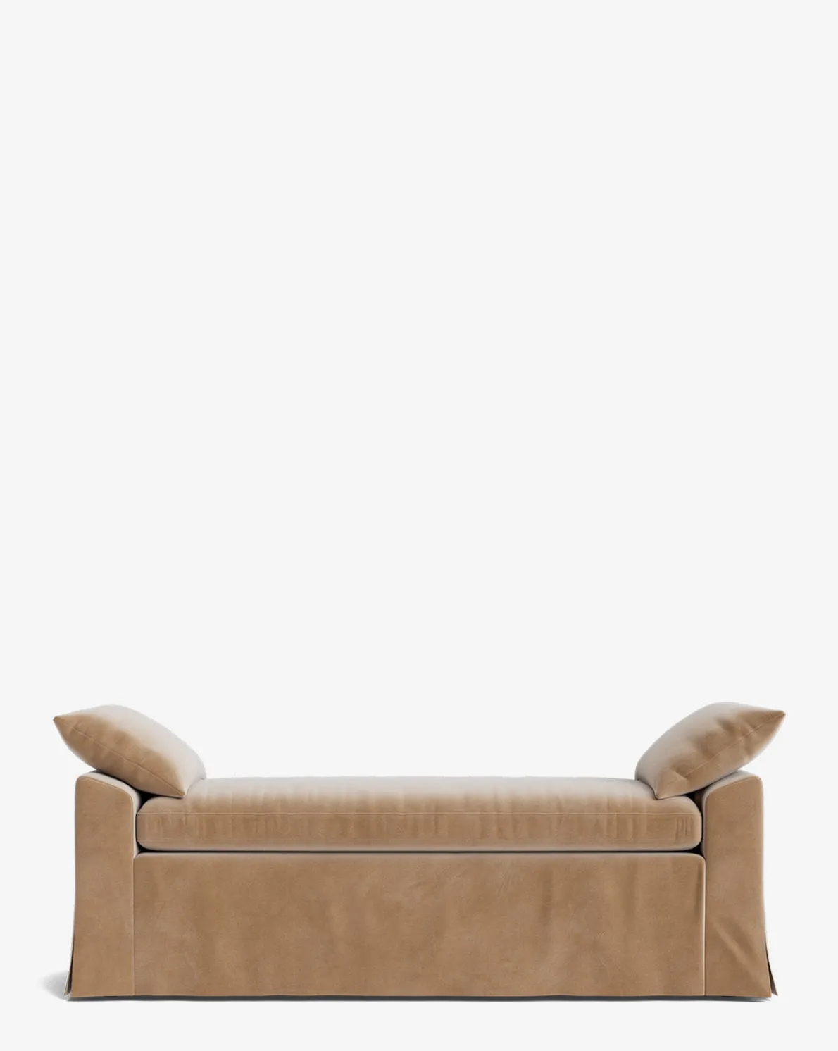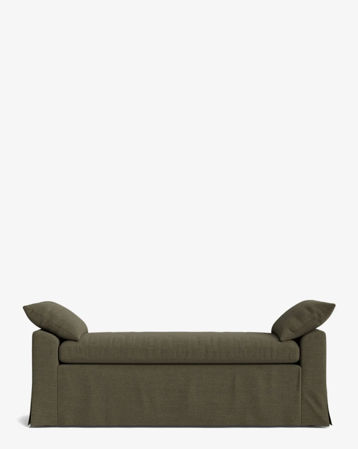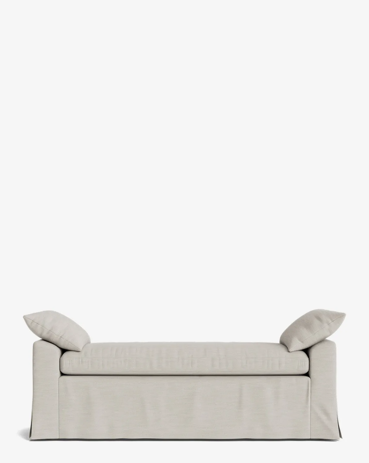 In an inviting symmetrical design, our Scaletta Bench is both casual and elevated. Upholstered in your choice of high-quality performance fabrics, it lends comfort and dimension to your styling.