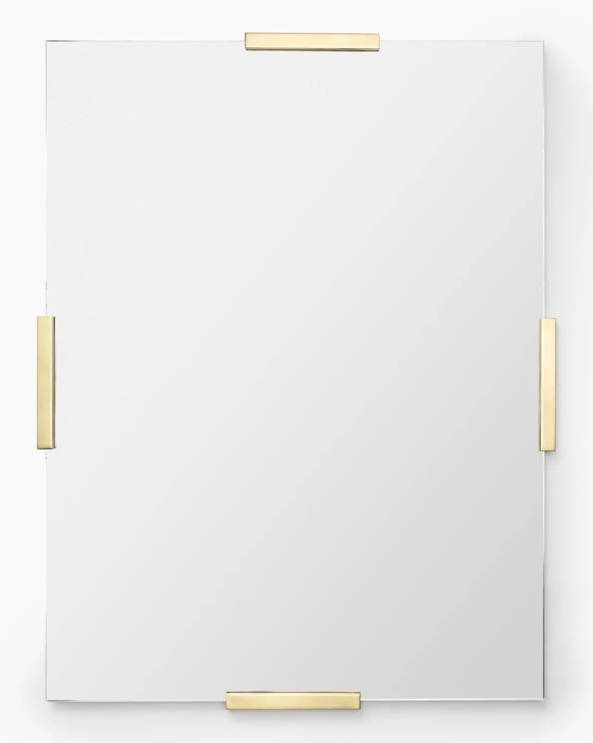 In a clean, frameless design, the Slade Mirror brings approachability to modern sensibilities. In three finishes, its accent pieces give structure to its shape and a touch of metallic material to the room.