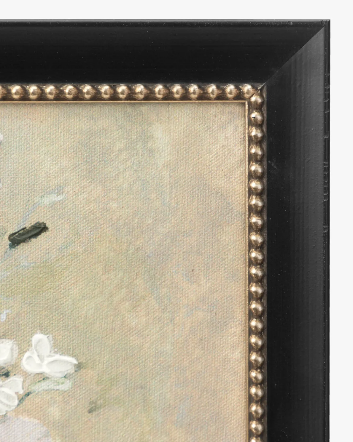 Expressive and inviting, Spring Fresh Cuts uses detailed brush strokes and a simple composition to bring an elegant presence to your styling. Presented as a giclee print on gallery-wrapped canvas within a black and gold wood frame, the work has a gallery feel.